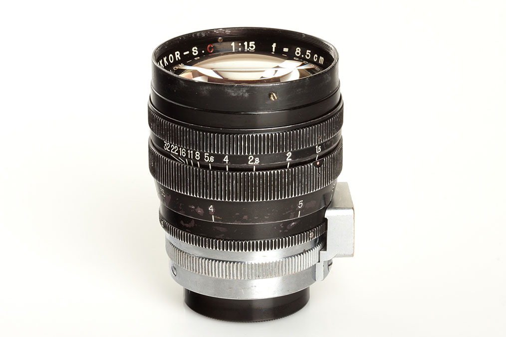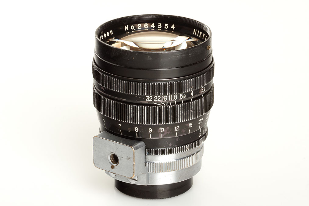 fast Nikkor for M39, scratches on front lens element, caps, hood (not original)