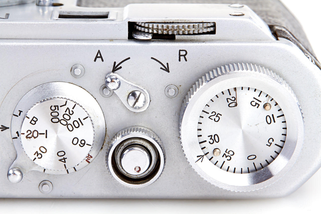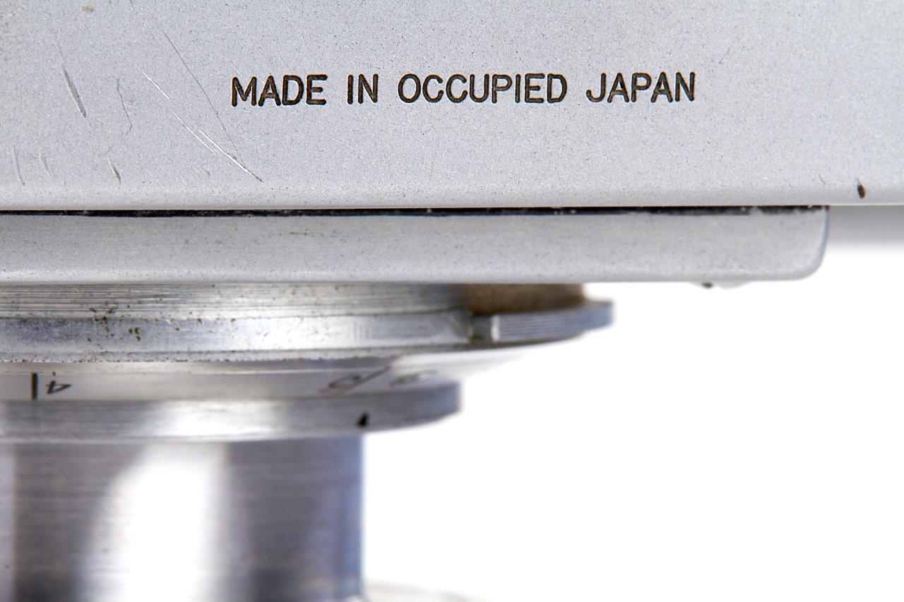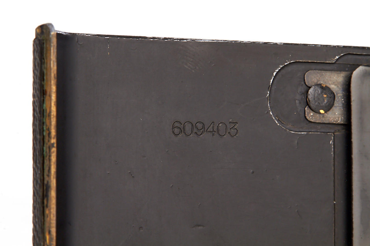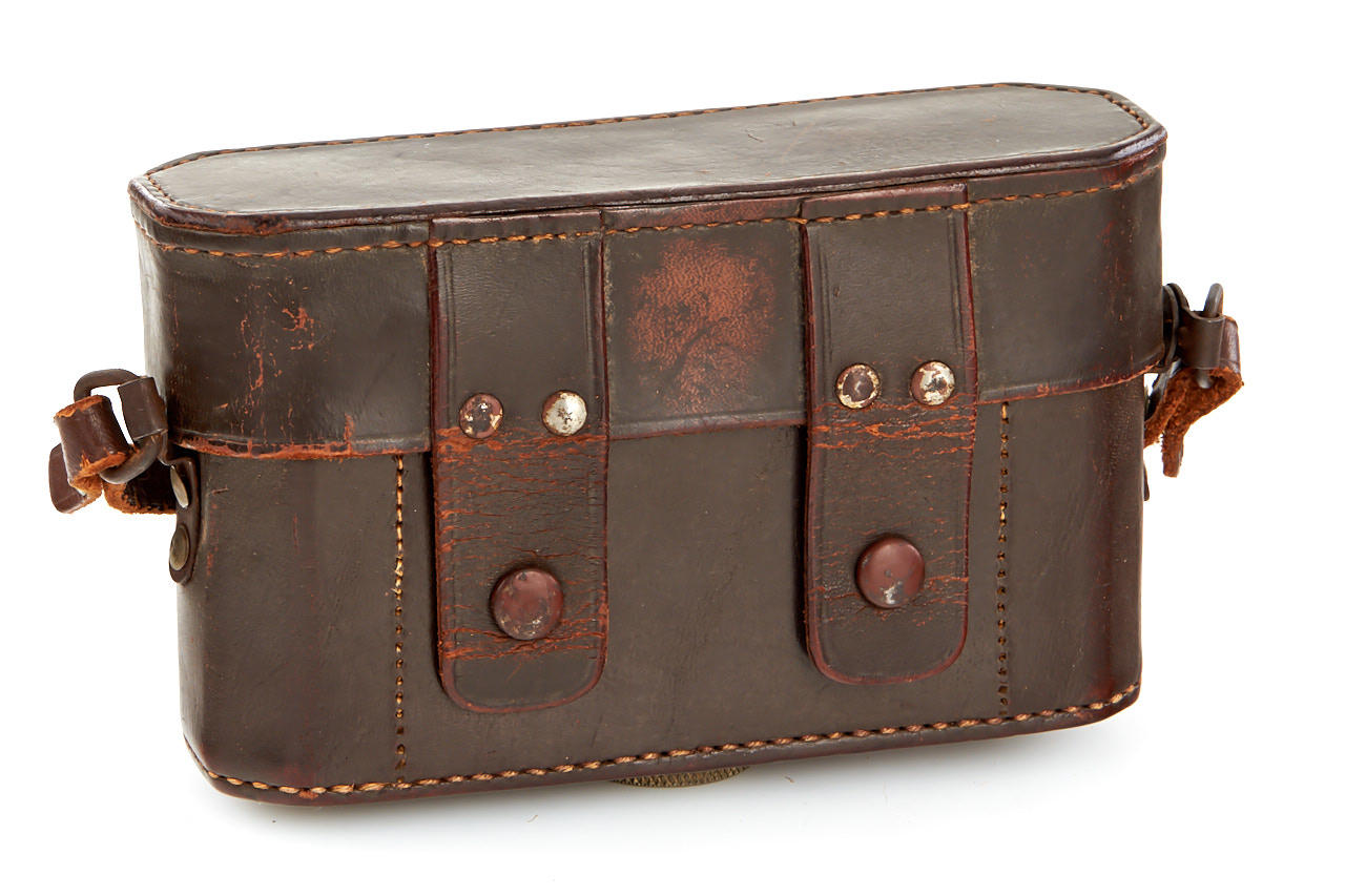 wonderful example of the first Nikon model in 100% original condition, version with 4 film guide rails, fixed spool, original shutter blinds, matching back door engraved '609403' + 'MADE IN OCCUPIED JAPAN', Nikkor-H.C. 2/5cm no.811236 with Nikon cap, UV filter, with early brown everready case