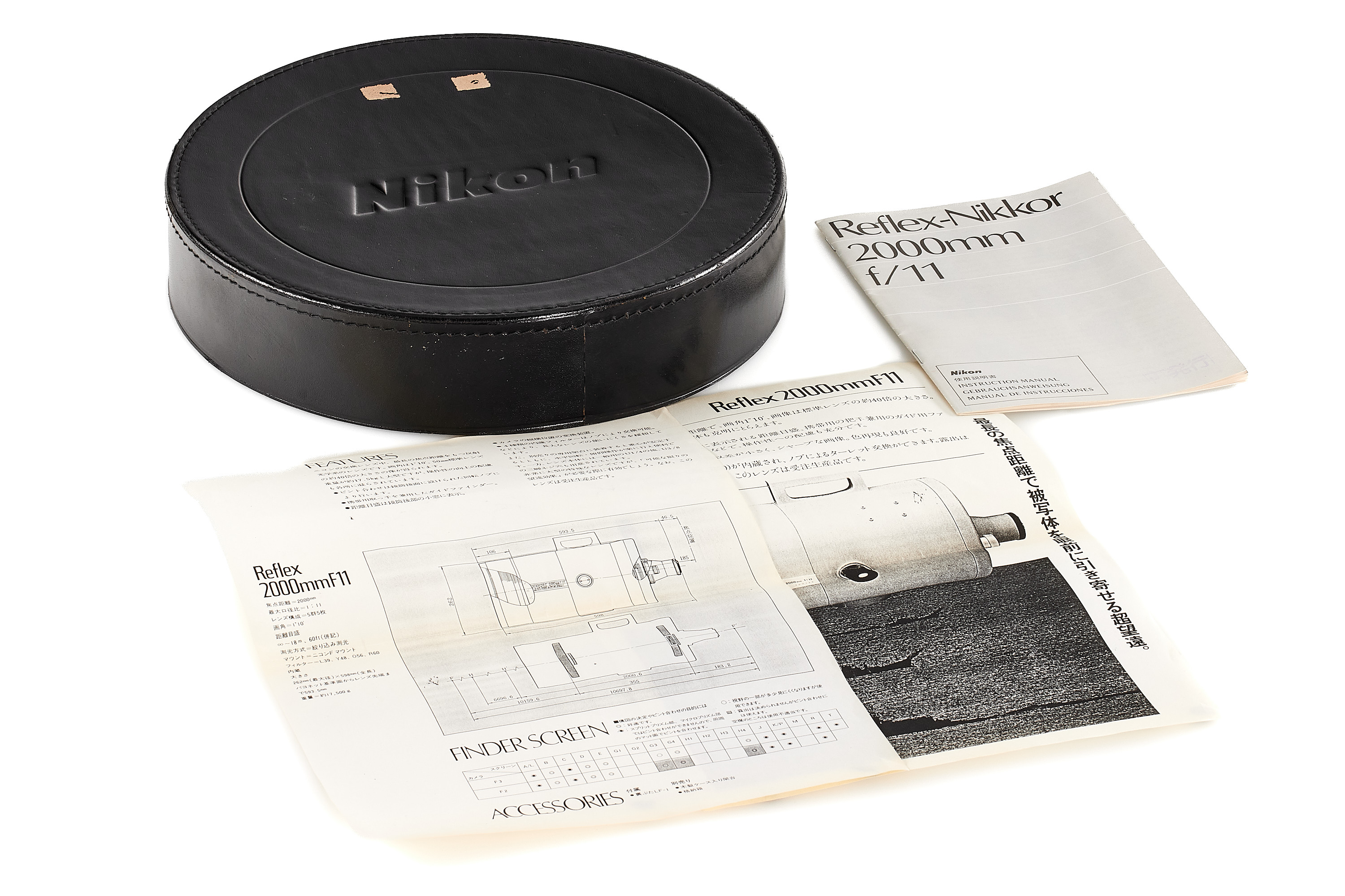 The last version of this very rare 2000mm Nikkor lens, the largest ever built Nikkor for 35mm, built-in L37c filters, in near mint condition with both original caps and AY-1 tripod mounting unit, the lens (total weight 25kg) was shown at Photokina 1970 for the first time, the second version with improved coating came in 1975 on the market - only very few of these lenses were made by special order only.