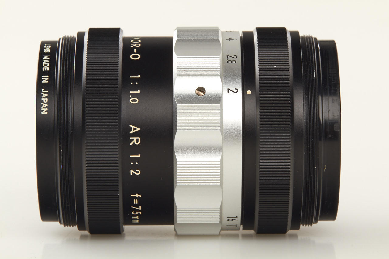 one of the rarest Nikkor lenses ever produced, this Repro-Nikkor has never been officially presented by Nikon, designed for aberration-free picture at 1:1 magnification in the 35mm film format, usable on modern cameras as a high quality close-up lens, front and rear element diameter 43mm, total height 80mm, built-in iris diaphragm