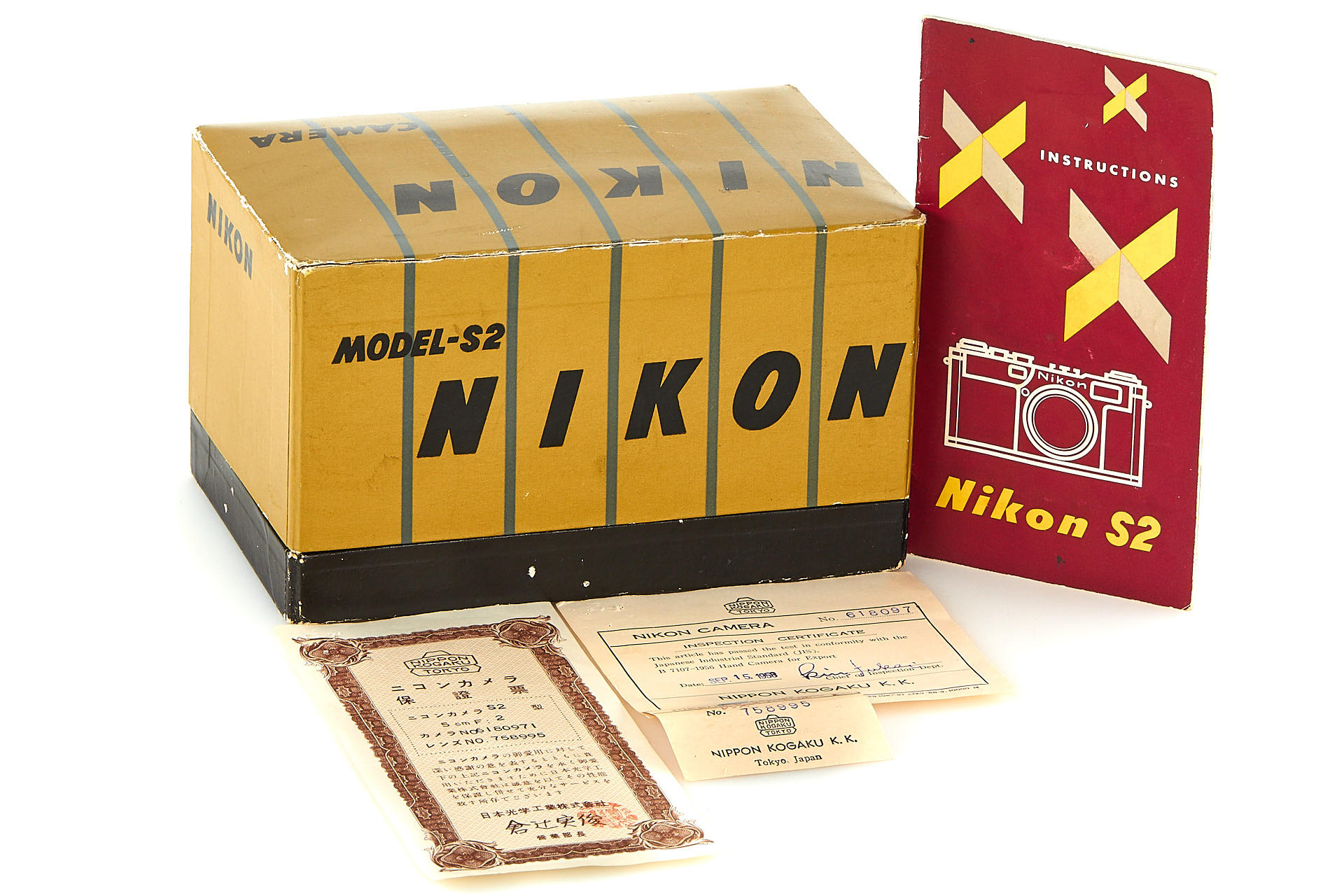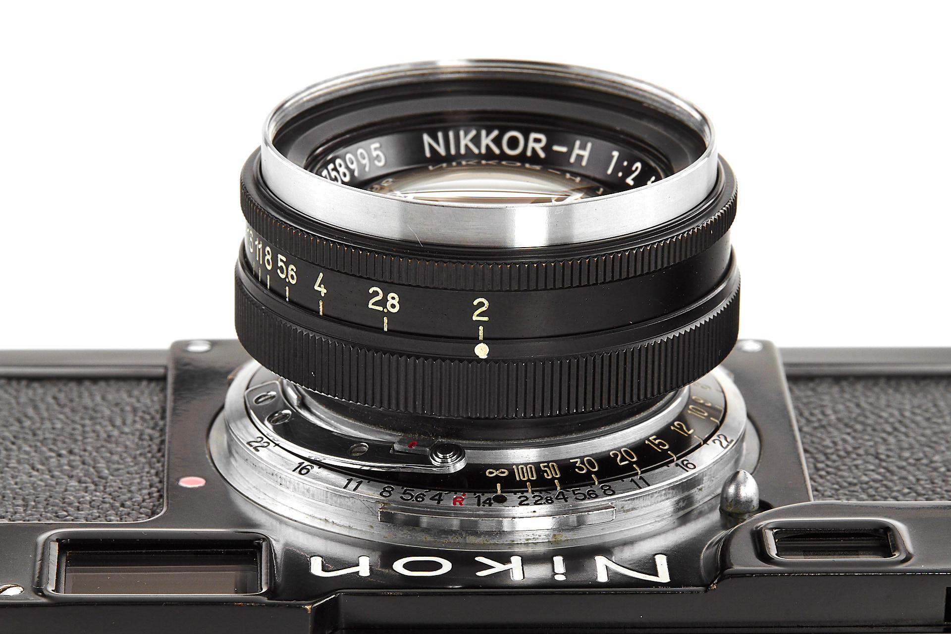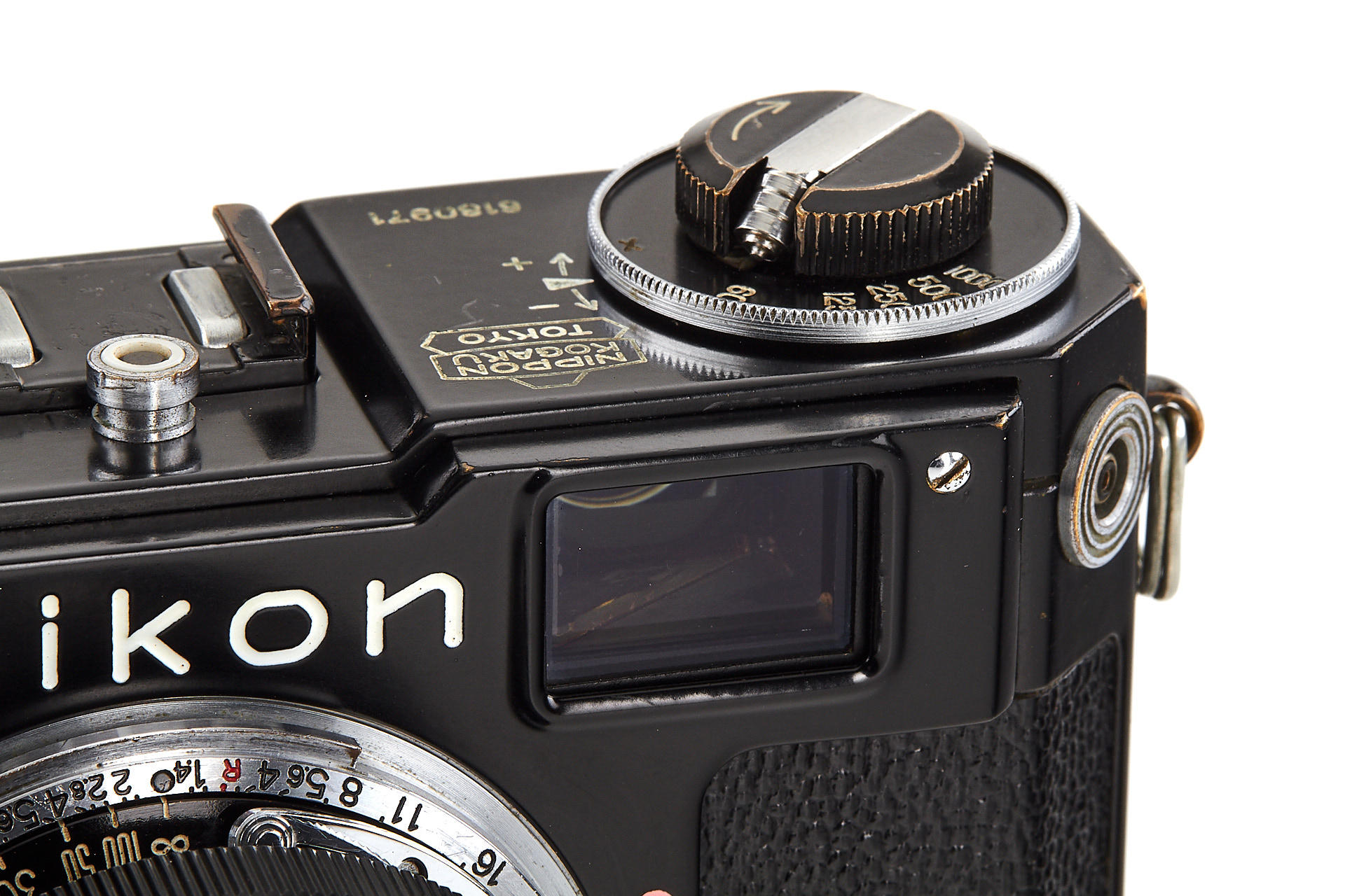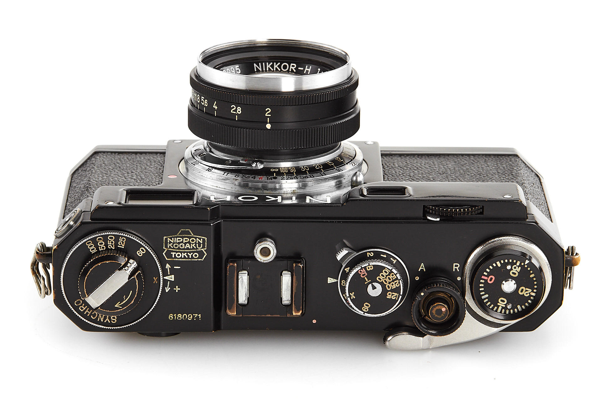 rare S2 black paint camera, second 'black dial' version, one of the last from the second last batch of black paint camera´s (6180604-6180987), in excellent condition, with only slight patina on the edges, incl. black Nikkor-H 2/5cm no.758995, with leather case, maker's box (unnumbered), inspection certificates for camera and lens with matching (!) serial numbers