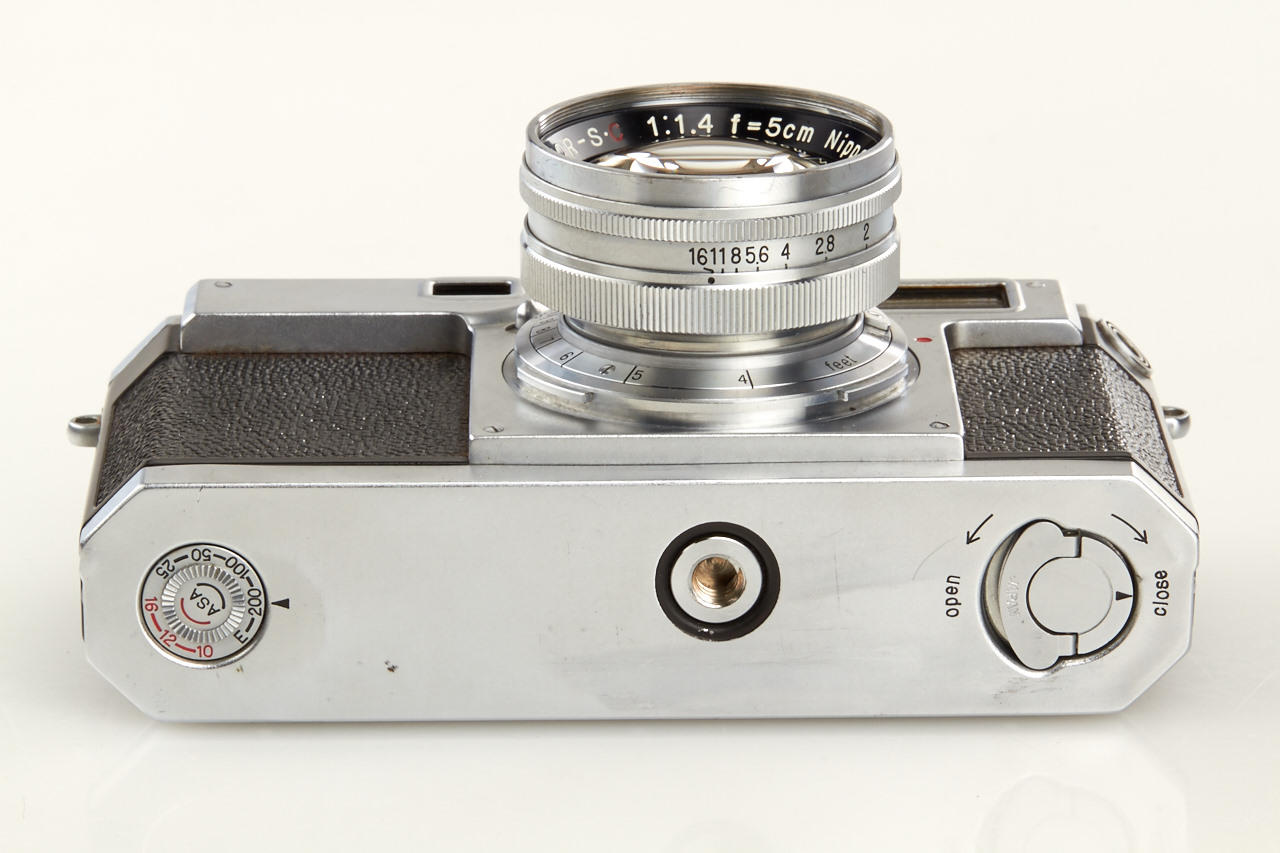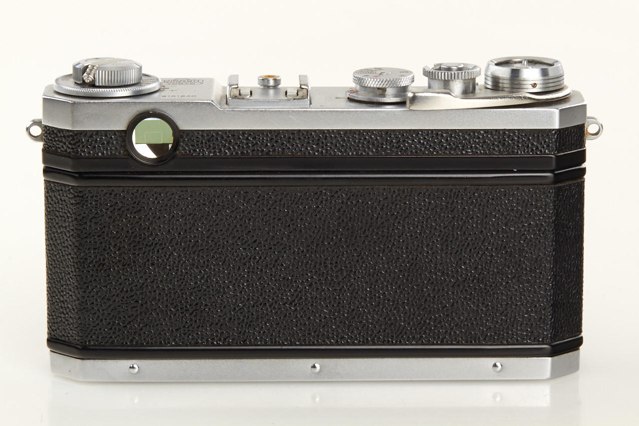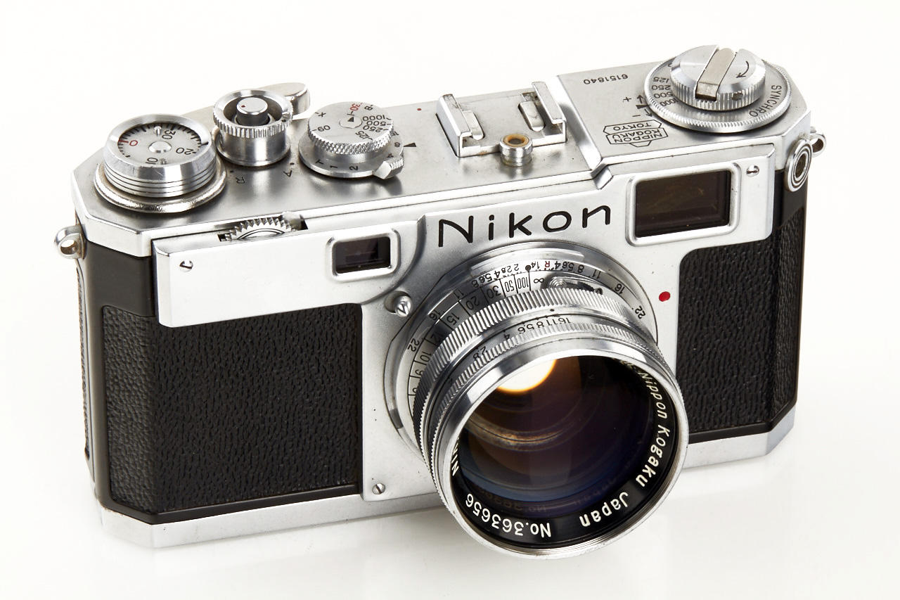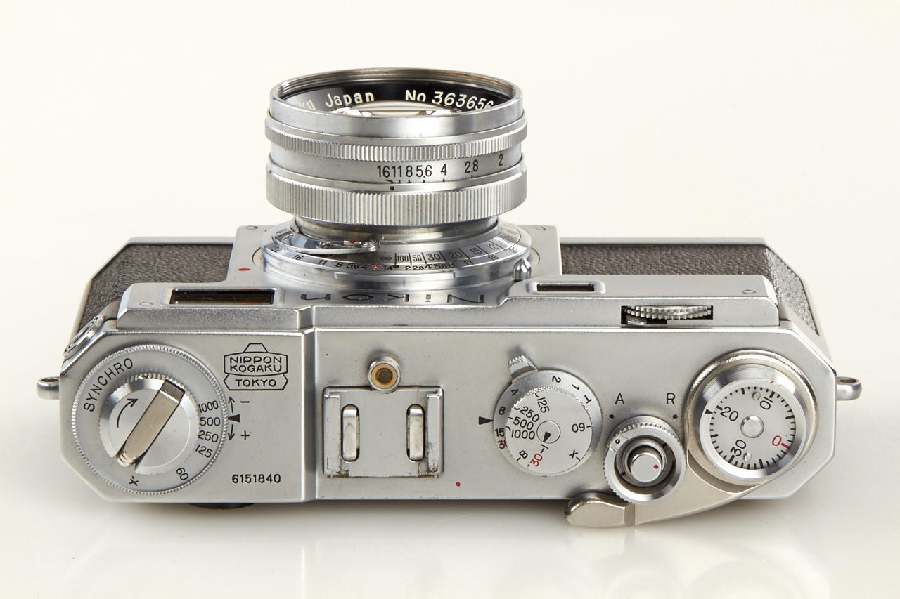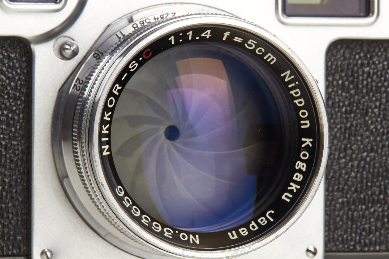 all-chrome body in fine condition and good working order with chrome Nikkor-S.C 1.4/5cm no.363656 with matching hood, cap, everready case, Nikon grey flashgun 1. version with leather case