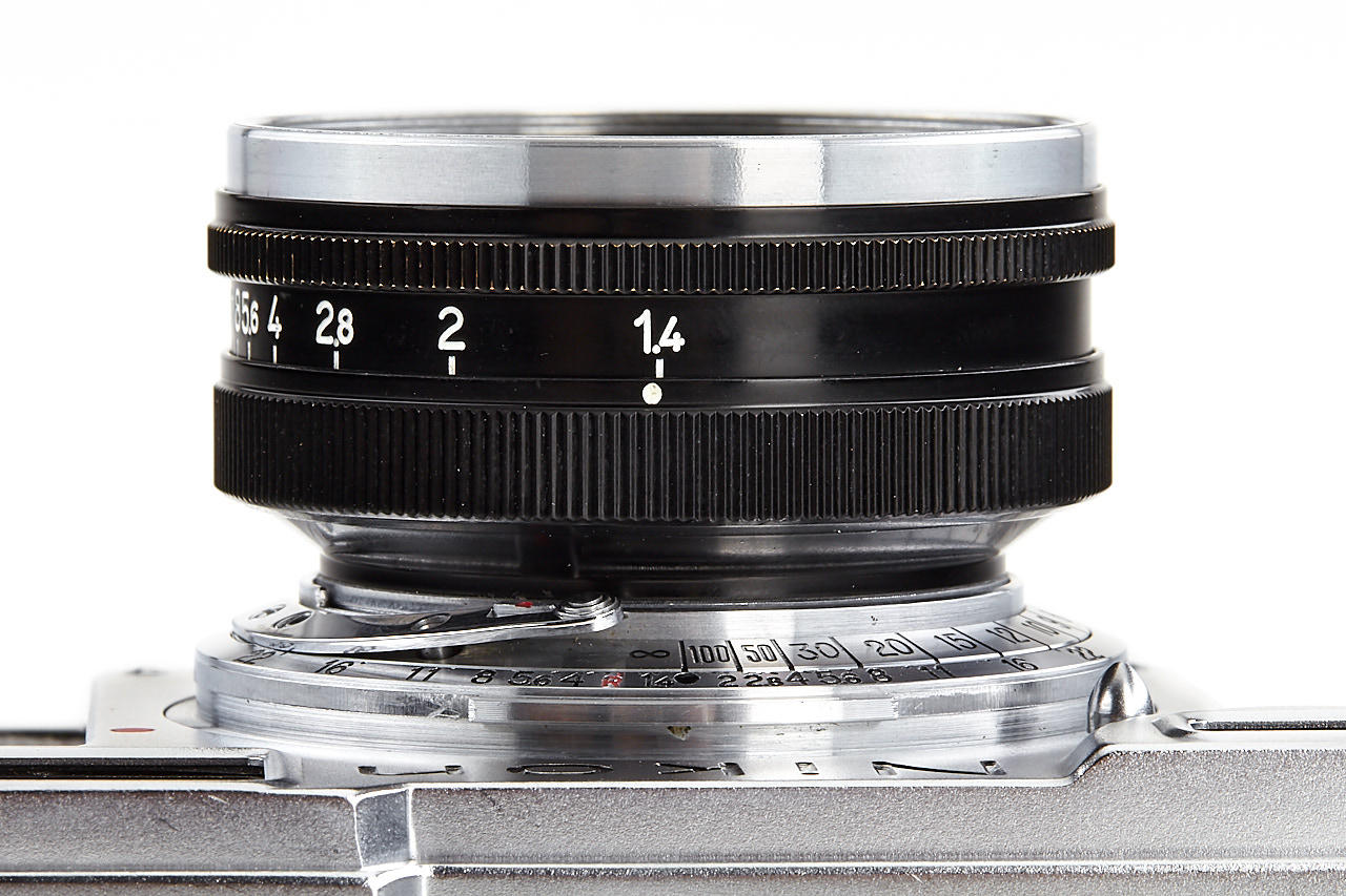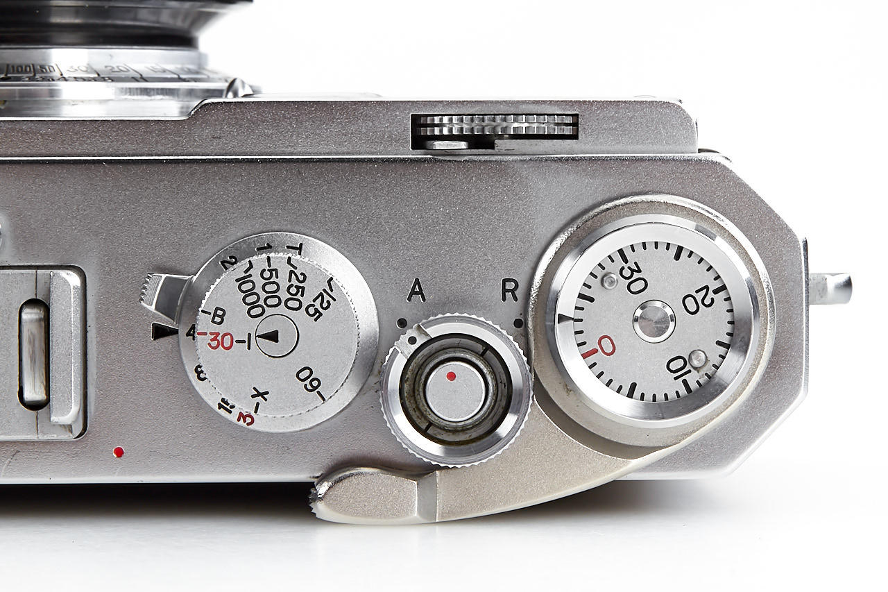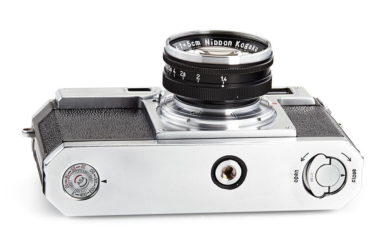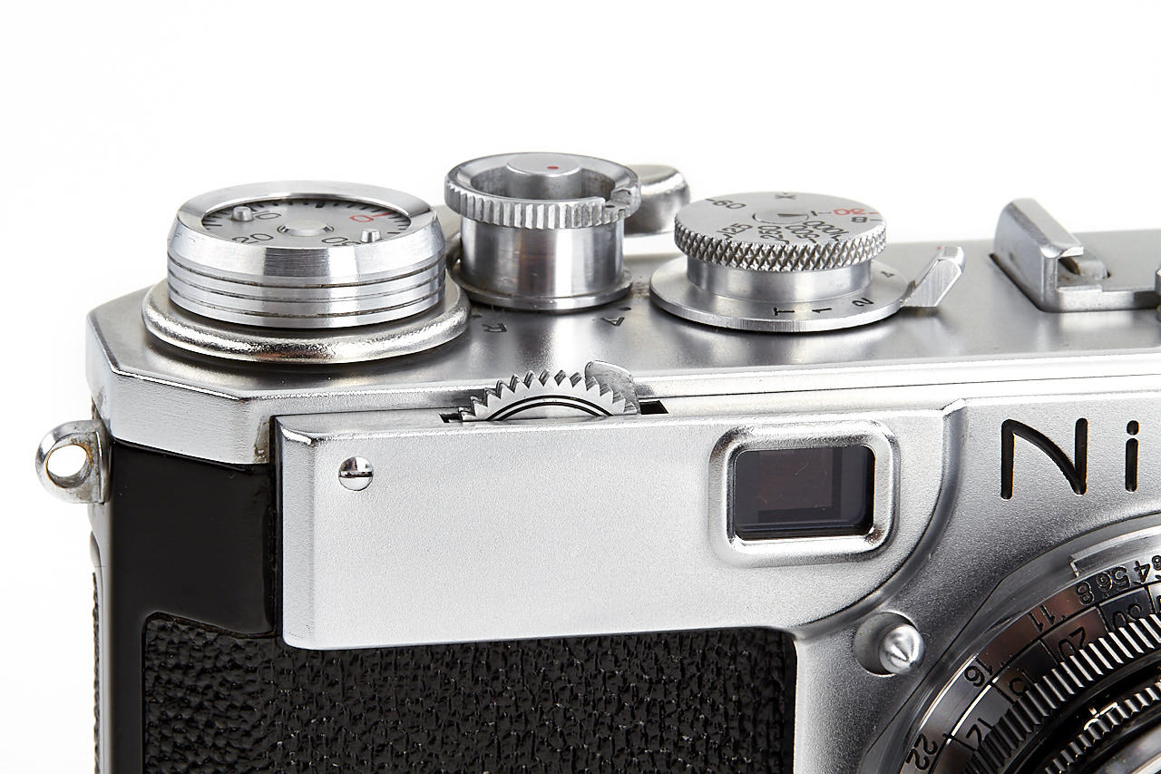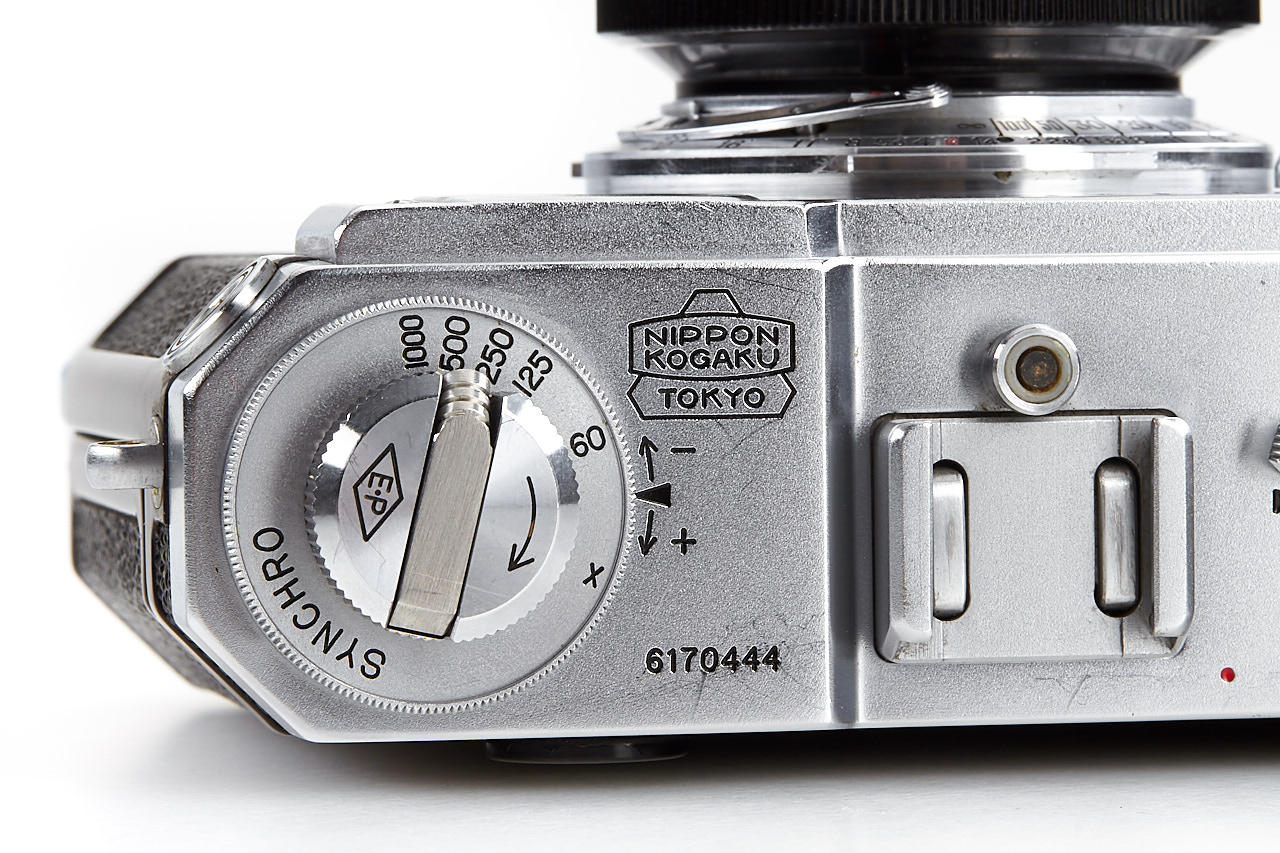 body in excellent cosmetic condition, with black Nikkor-S.C 1.4/5cm no.375862 (very good optics with only a few hairline marks), original warranty card from 1956, instructions and maker's box