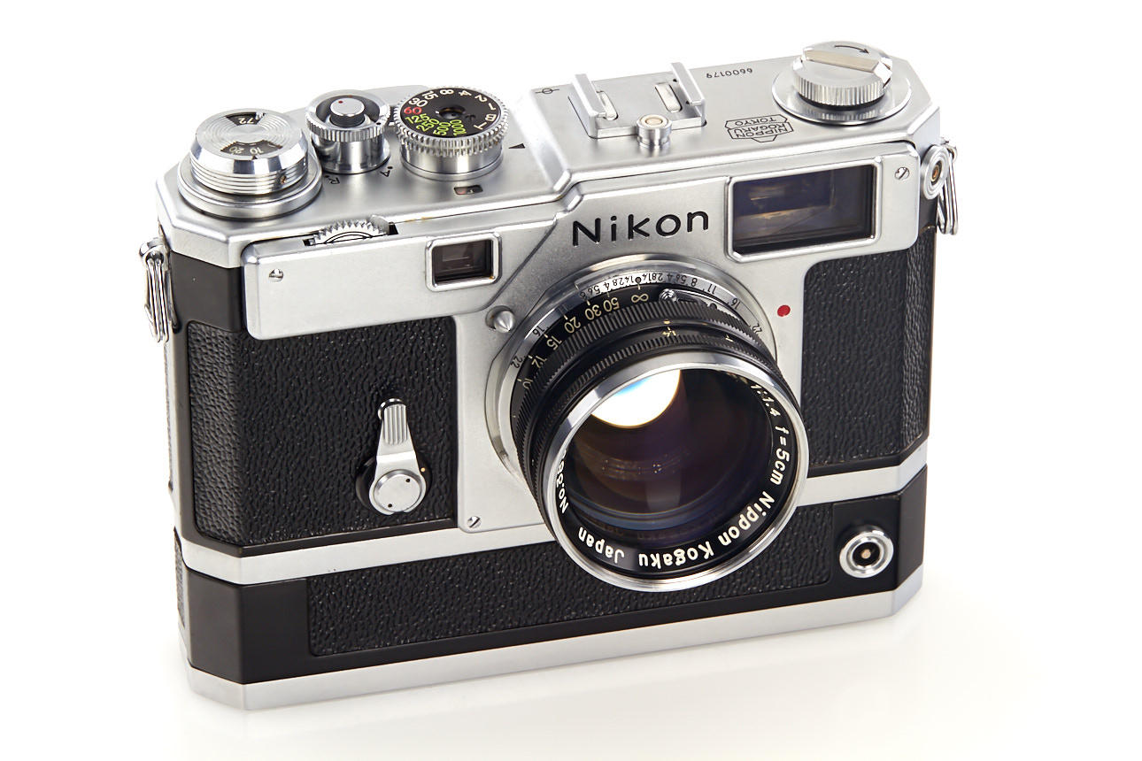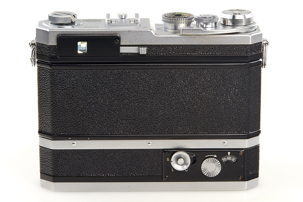 18x24mm, for 72 exposures, the most rare of all Nikon rangefinder cameras in fully original, perfect working and near mint condition, motor-coupled base plate, with S-72 motor drive no.95128 (counter to 72 exposures) and matching small brown battery pack, Nikkor-S.C 1.4/5cm no.389940, NKJ Voltmeter - in total only approx. 50 cameras were manufactured in chrome finish, Rotoloni has only 27 cameras in his database - very few exist with the matching motor drive