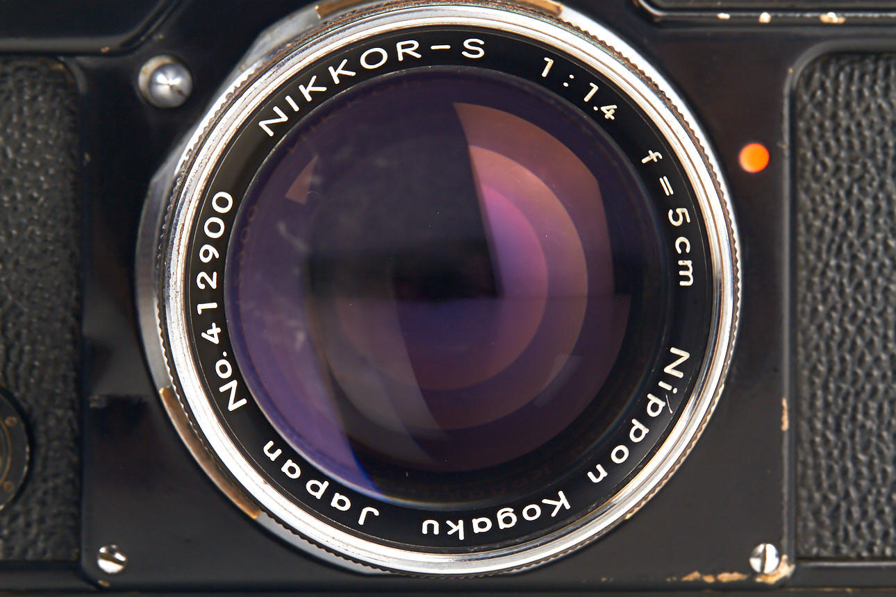 very rare early S3 black paint with all original features like the early levers, cloth shutter curtains, with black Nikkor-S 1.4/5cm no.412900, in fine condition and in good working order - only around 250 of these cameras has been made in two batches (serial numbers from 6307453-6307508 and 6312108-6312278), which makes it one of the most rare Nikon rangefinder cameras