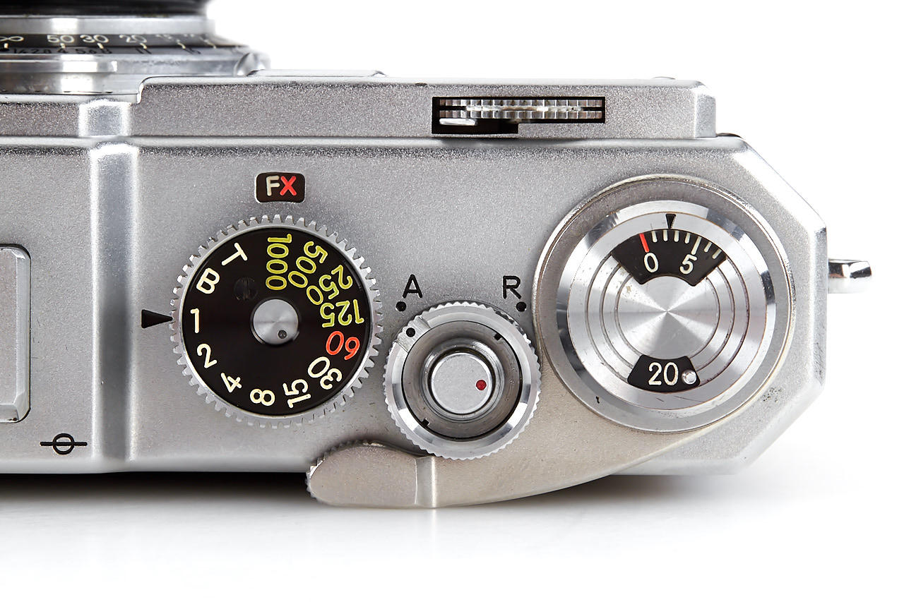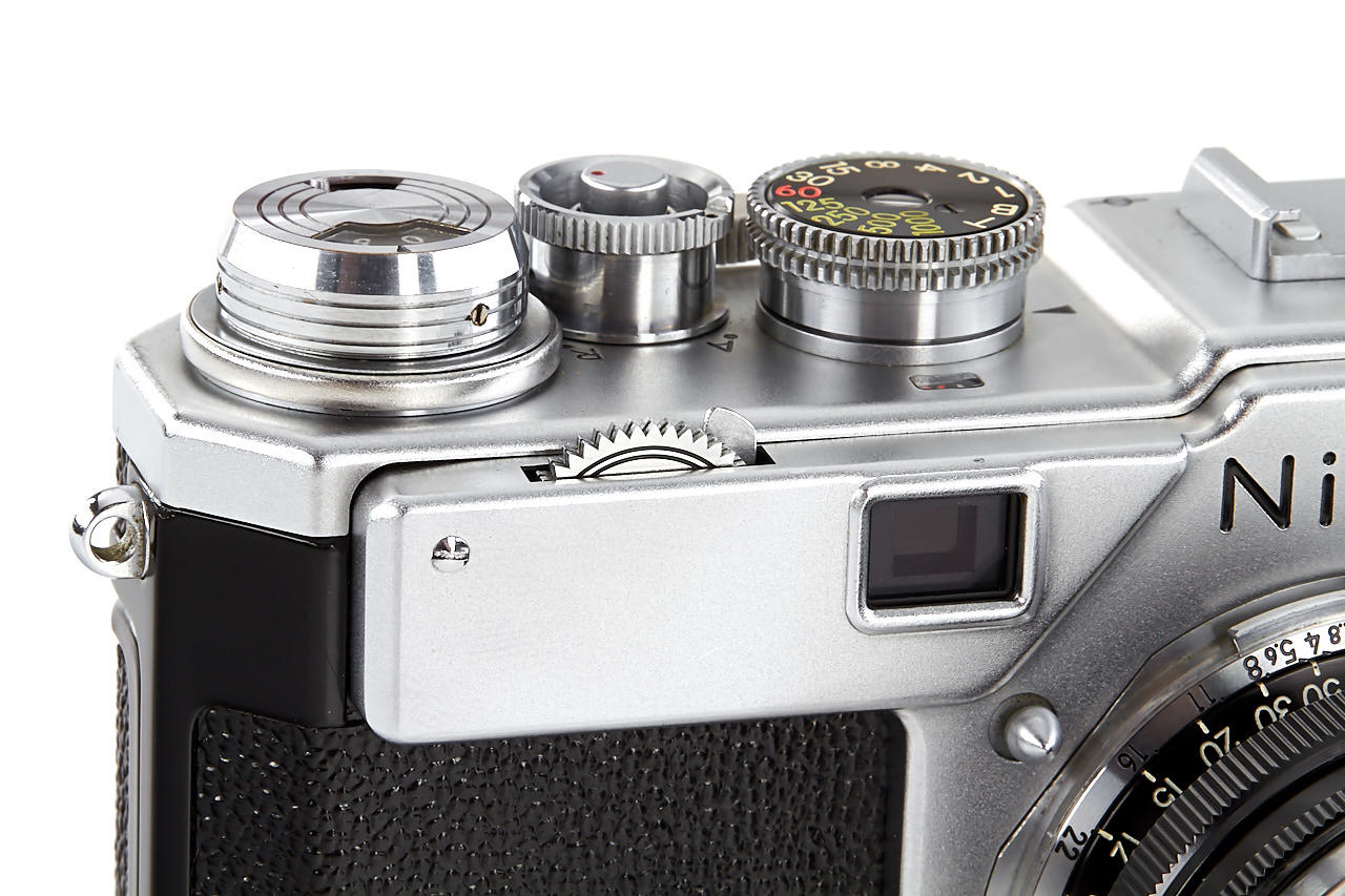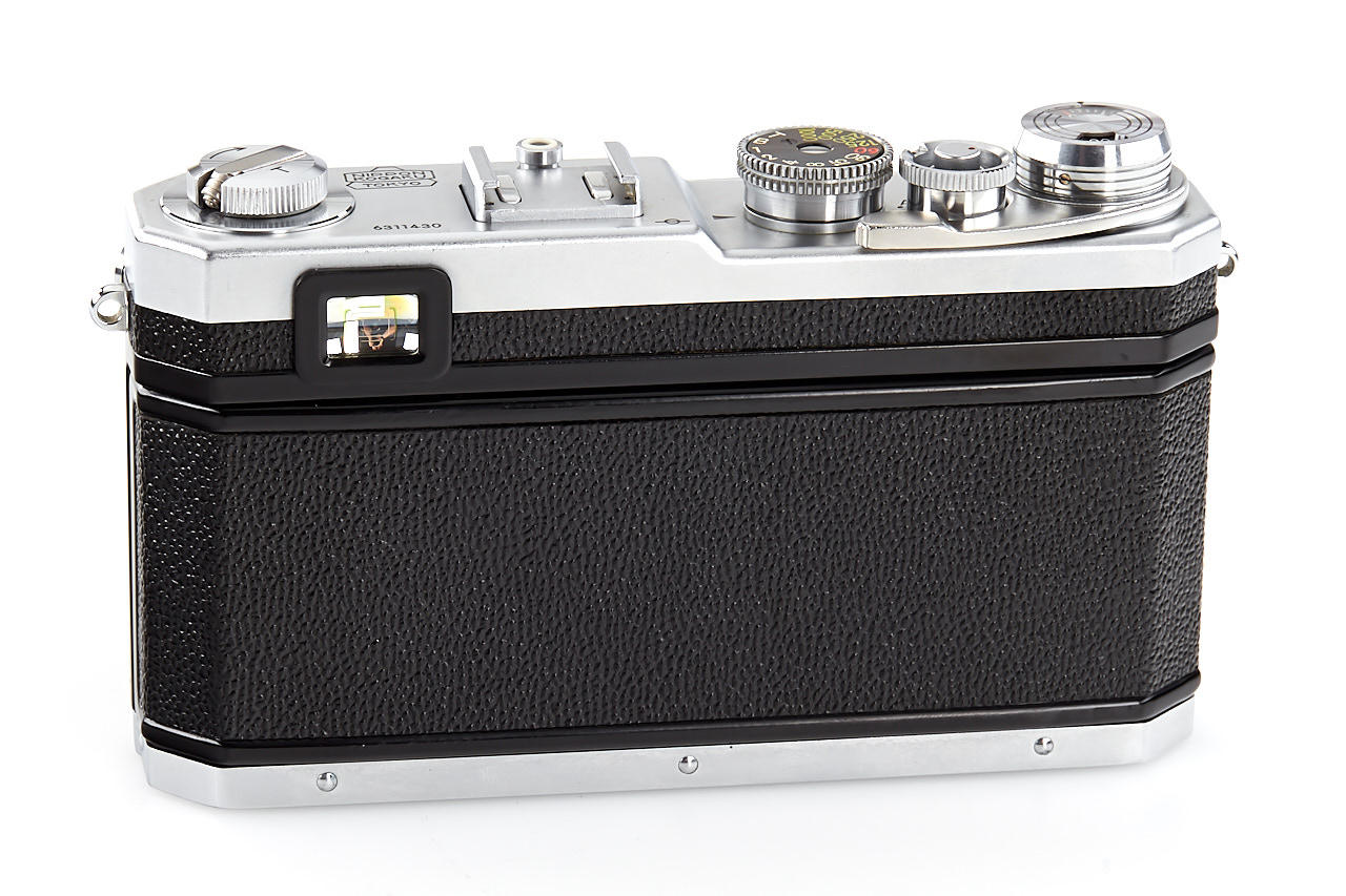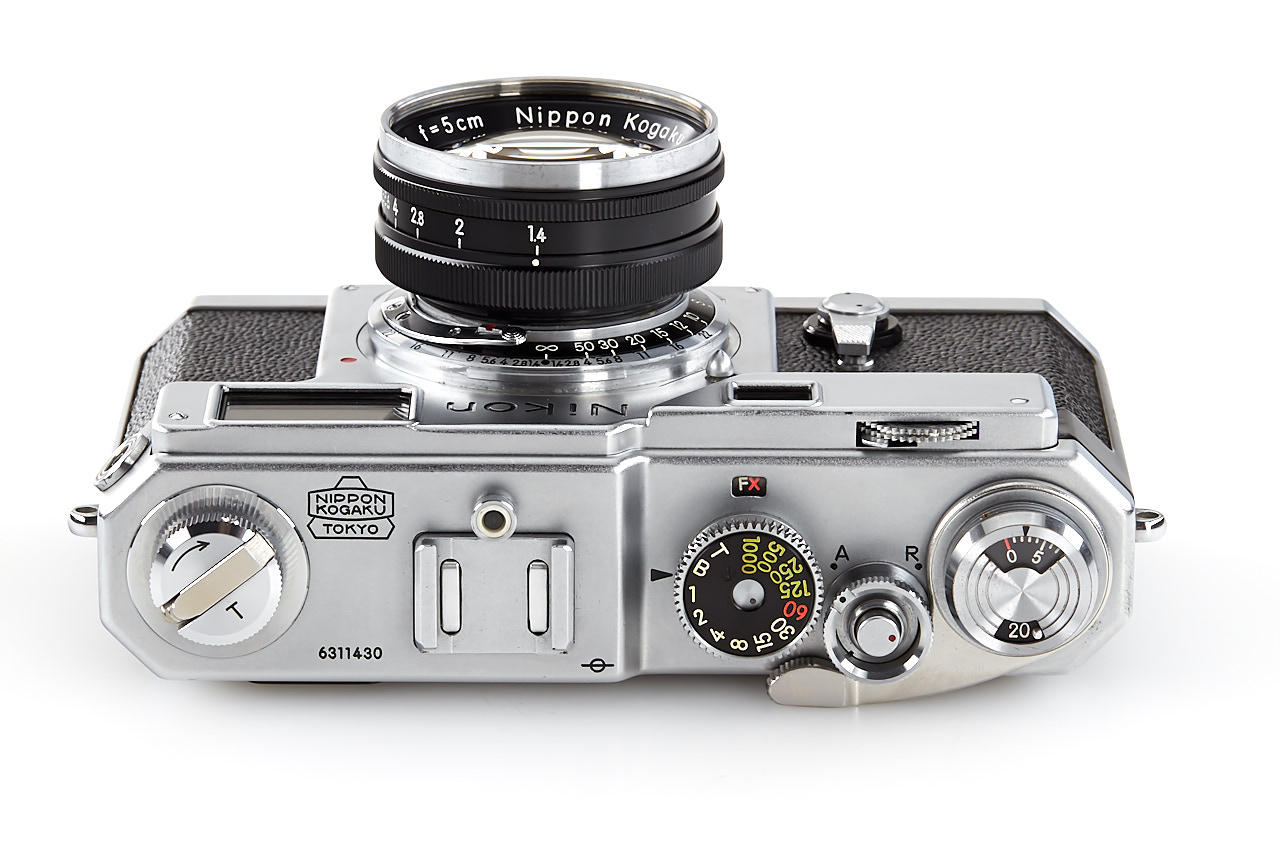 body in beautiful, near mint condition and in good working order, with Nikkor-S 1.4/5cm no.404557 (UV filter, cap), leather case, original strap, matching warranty card, English instructions and maker's box
