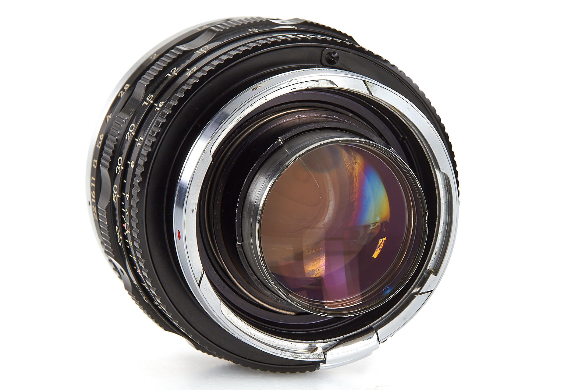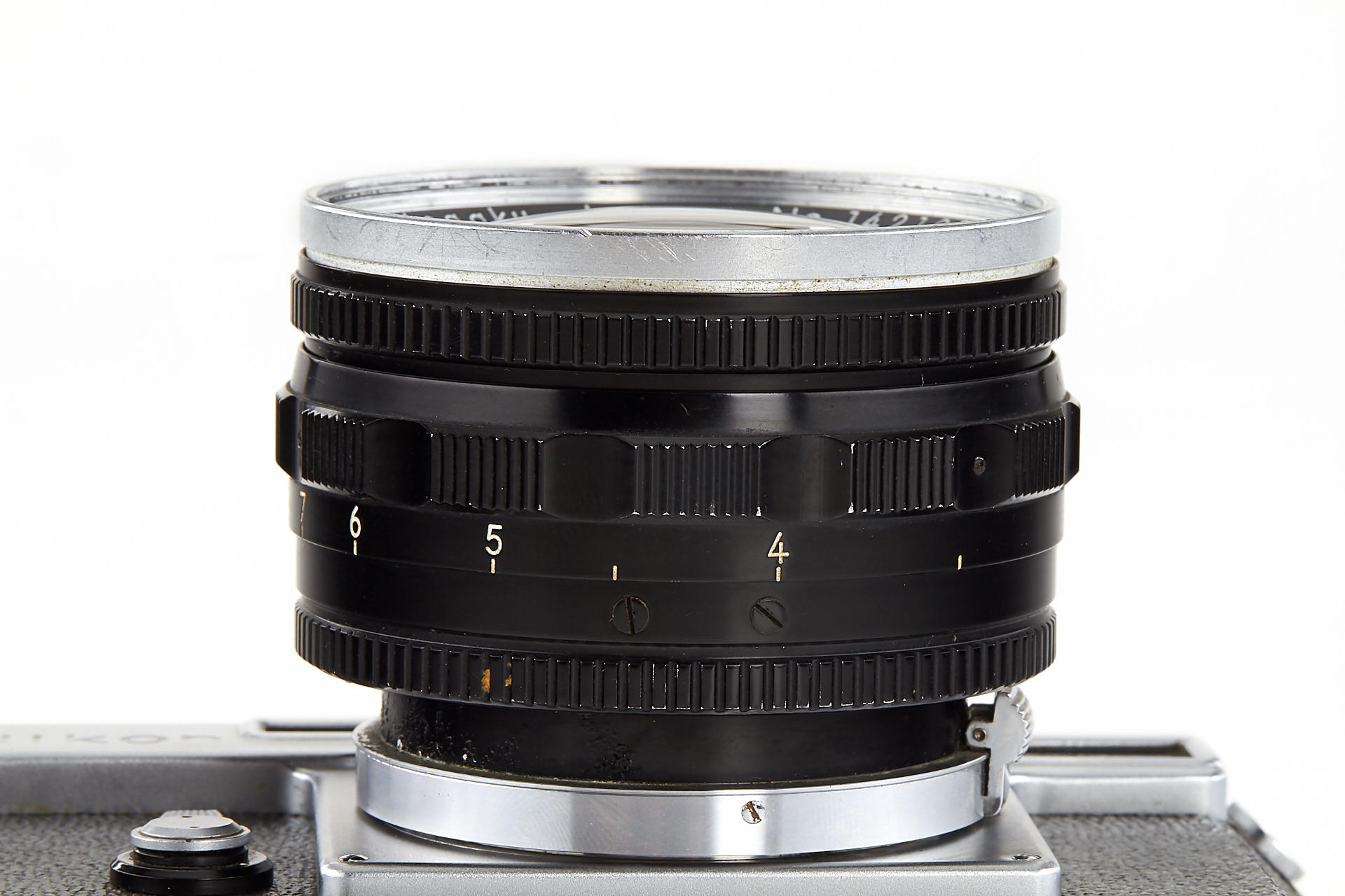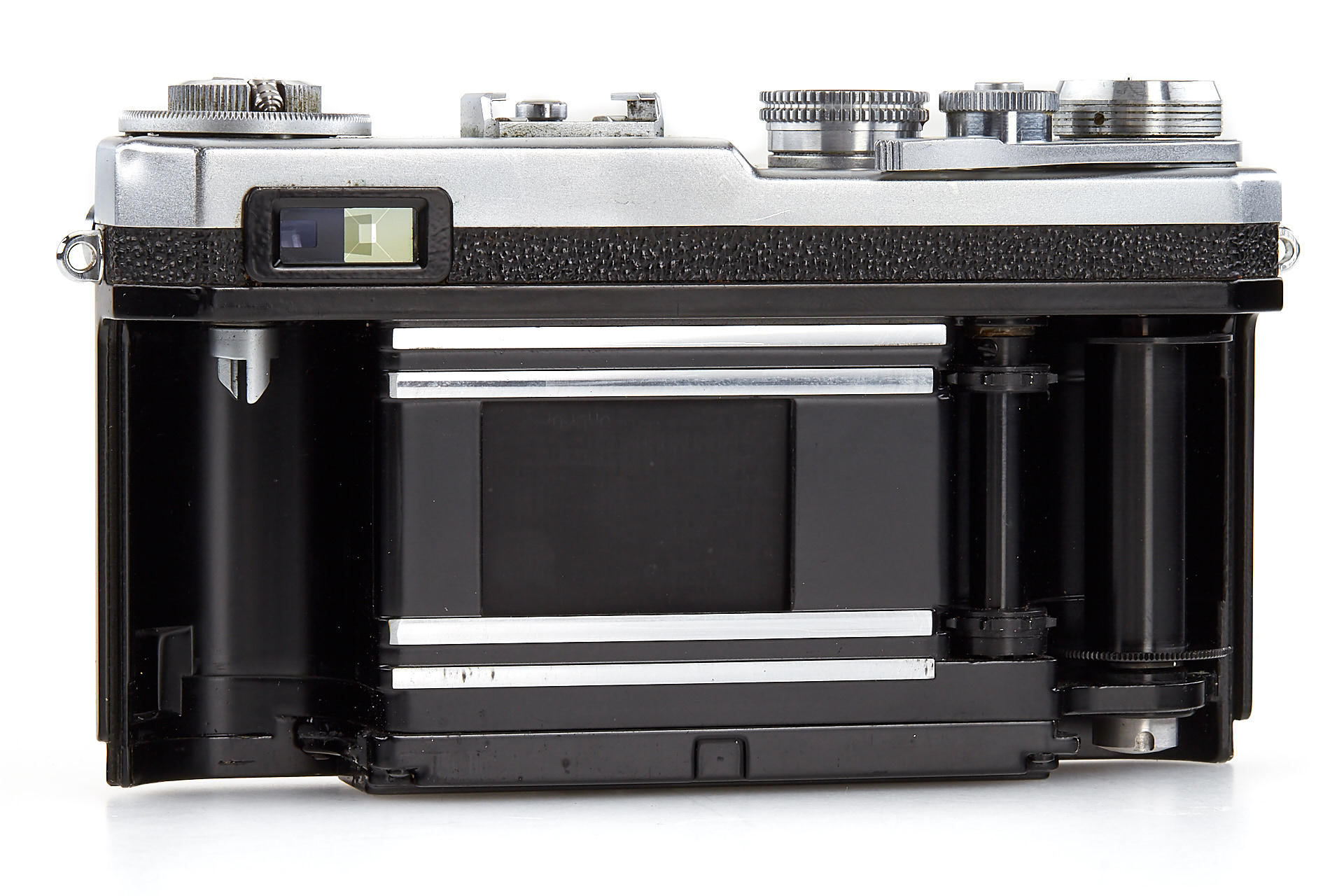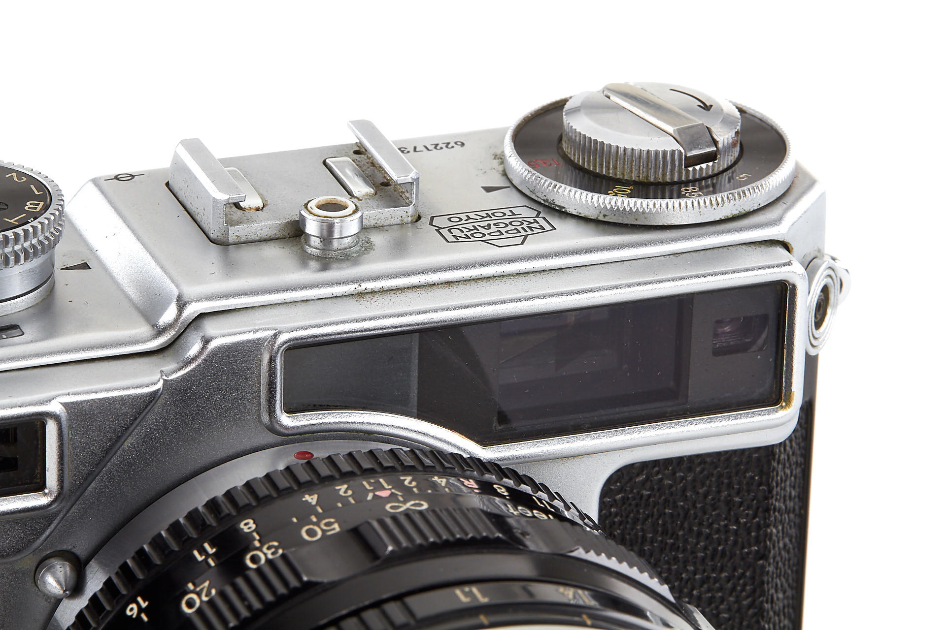Titanium shutter, in good working order, clear finder, with very rare Nikkor-N 1.1/5cm no.142108, in external bayonet mount, from this version only about 300 were made (rear element shows some separation)