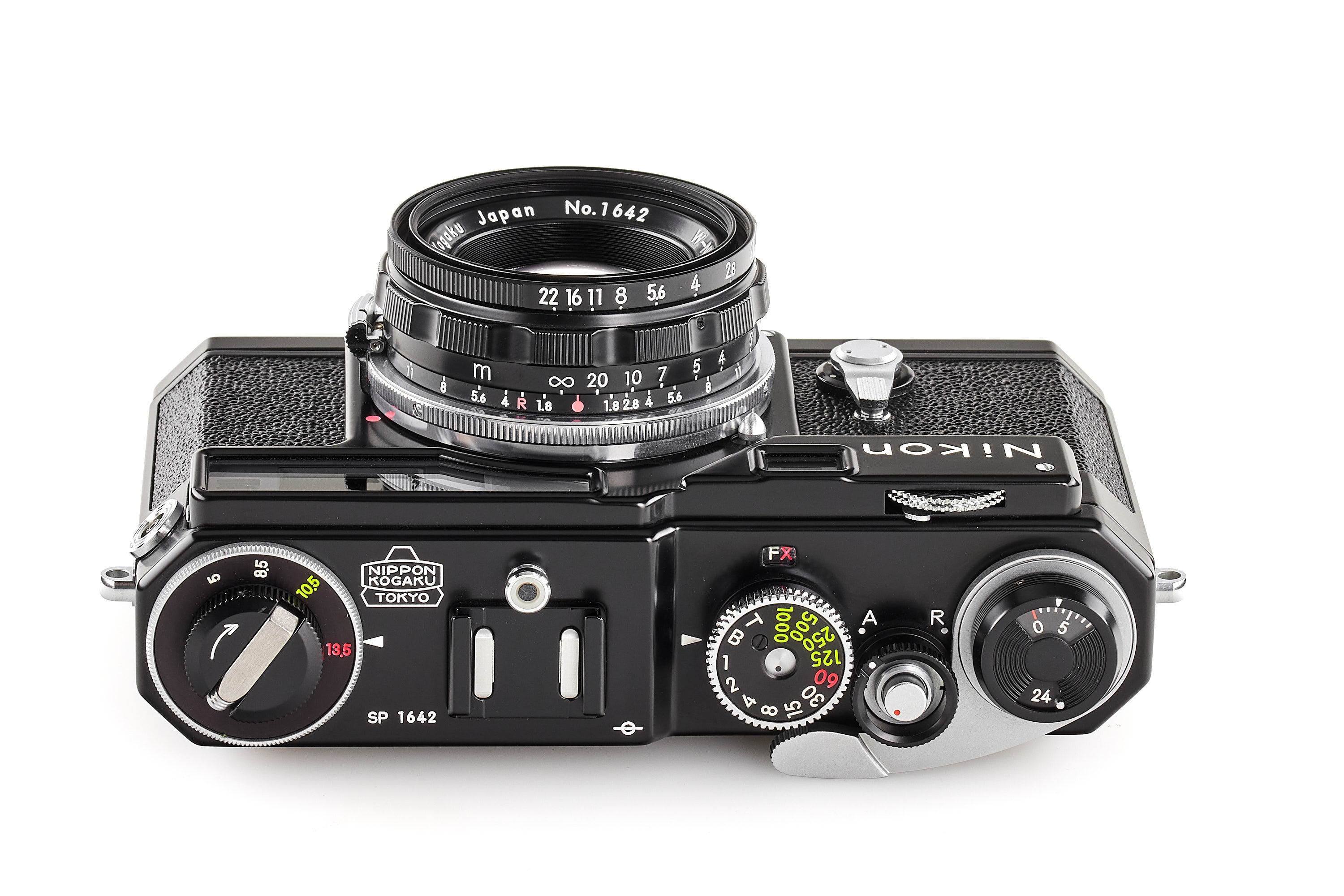 A rare, limited edition black paint Nikon SP, from a small edition of 2500 cameras only, issued in 2005. In beautiful, mint condition, with the matching W-Nikkor C. 1.8/3.5cm no.1642, lens cap and maker's box.