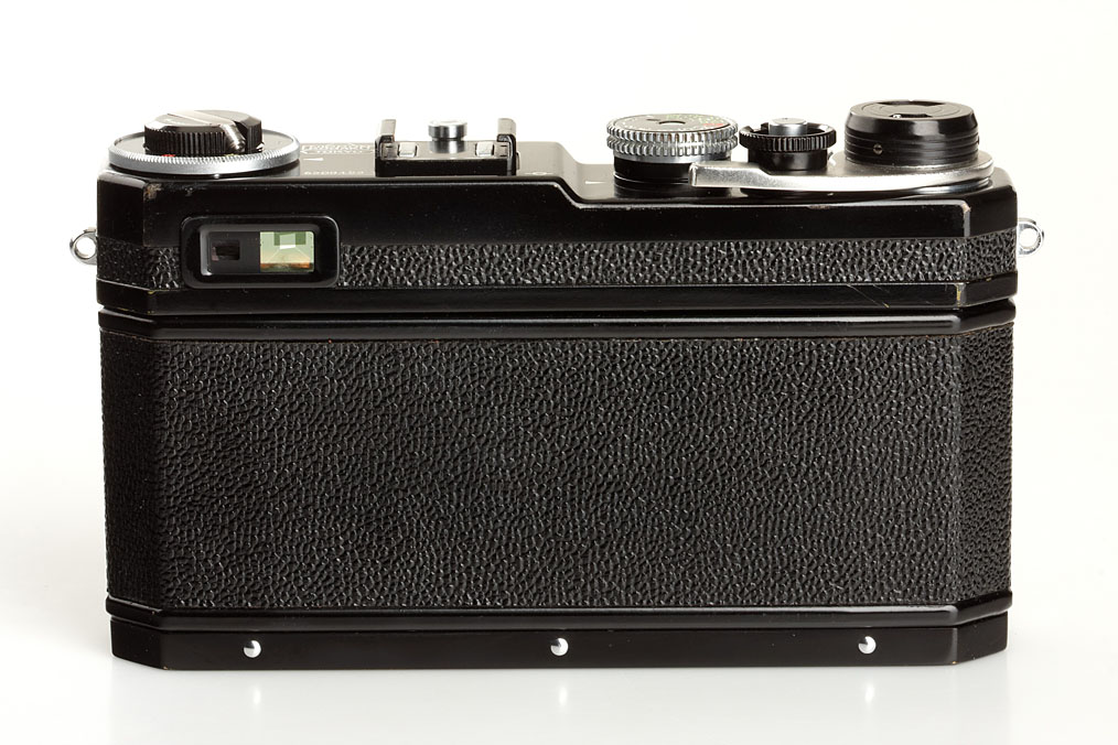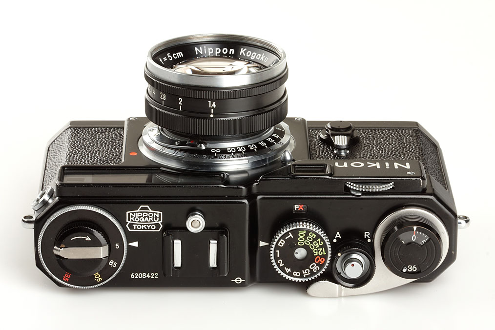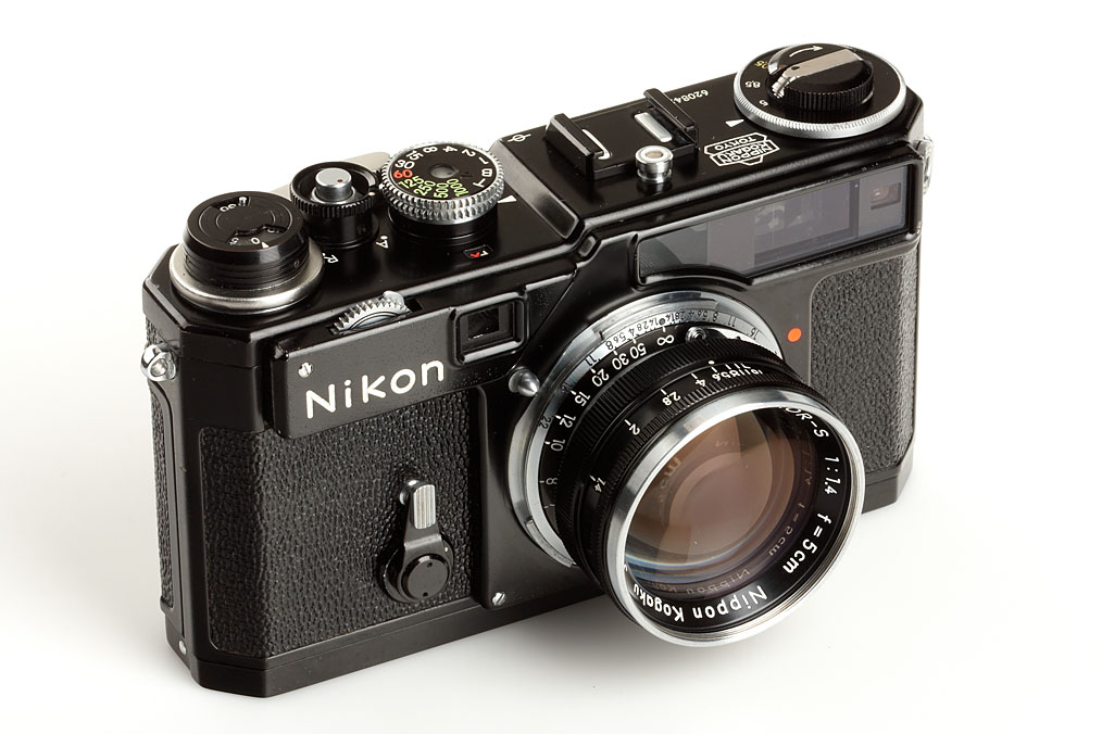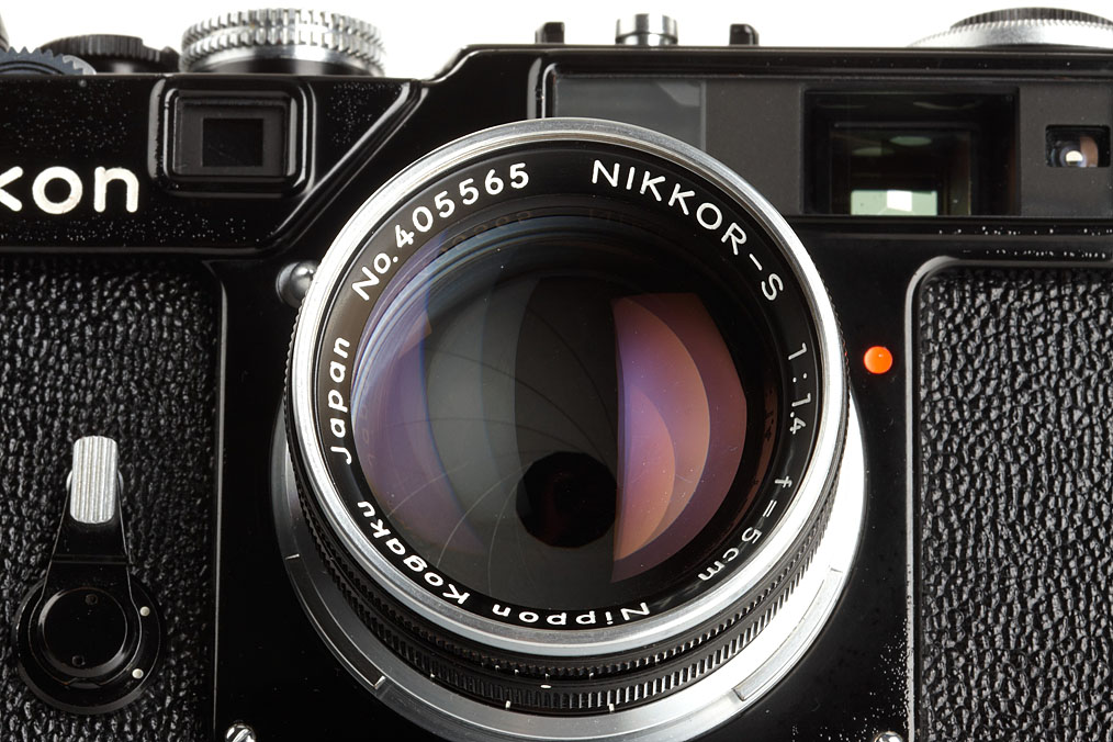 rare black Nikon in very fine condition with cloth shutter (in perfect working order), with motor drive coupling lug, with black/chrome Nikkor-S 1.4/5cm no.405565, black painted hood, cap, plastic bag, original silica gel bag, instruction book and maker's box