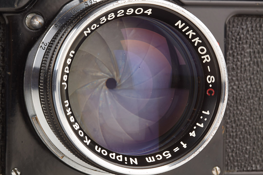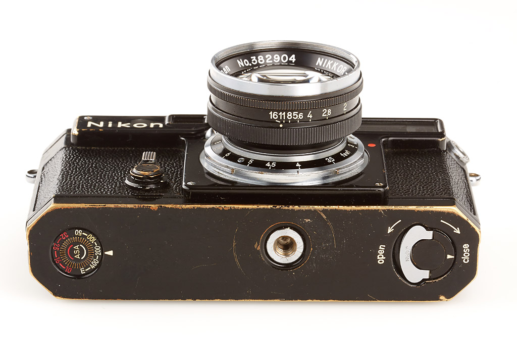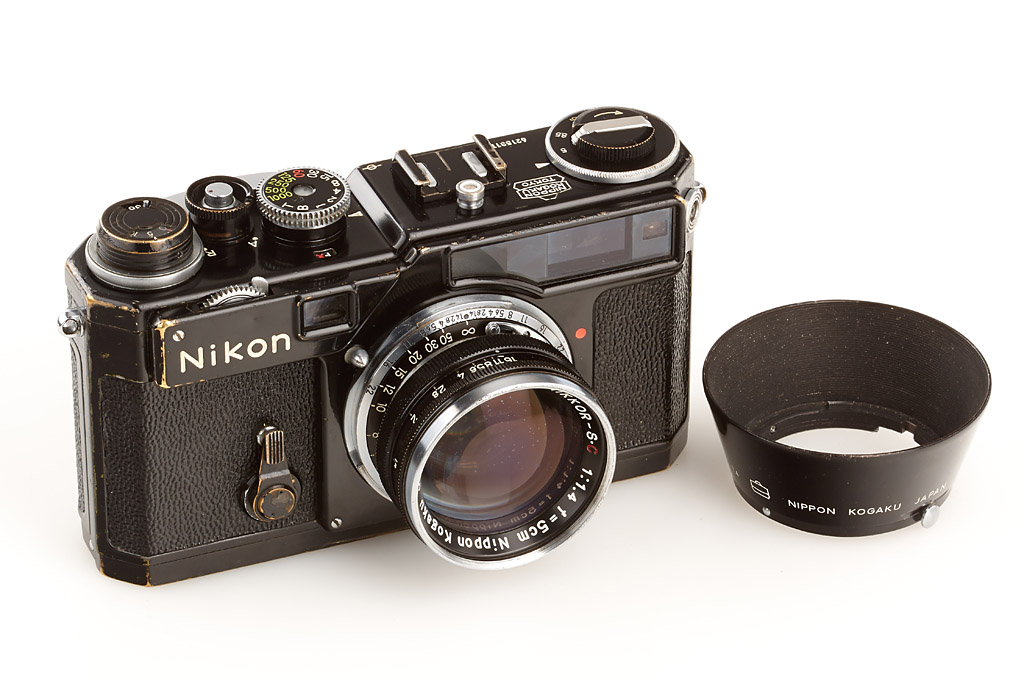 fully original black painted SP with titanium shutter, rare motor coupled base plate, Nikkor-S.C 1.4/5cm no.382904 (hood)