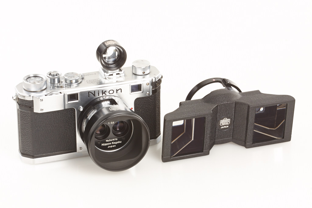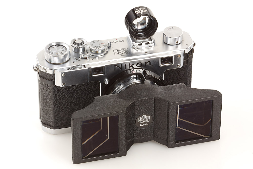 extremely rare outfit in near mint condition with Stereo-Nikkor 3.5/3.5cm no.241973, prism no.679135, hood, Nikon stereo finder, with chrome Nikon S body no.6122869 (cond. B) - a highlight of every Nikon collection !