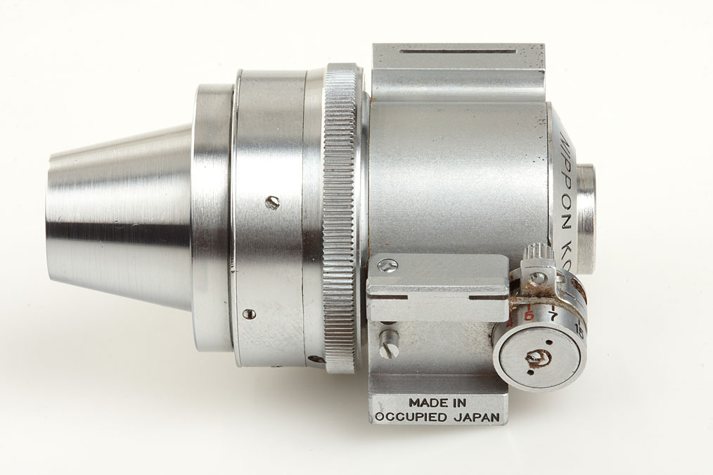 very rare finder for Nikon M in original condition (eyepiece and chain missing), engraved on base of mounting shoe: MADE IN OCCUPIED JAPAN