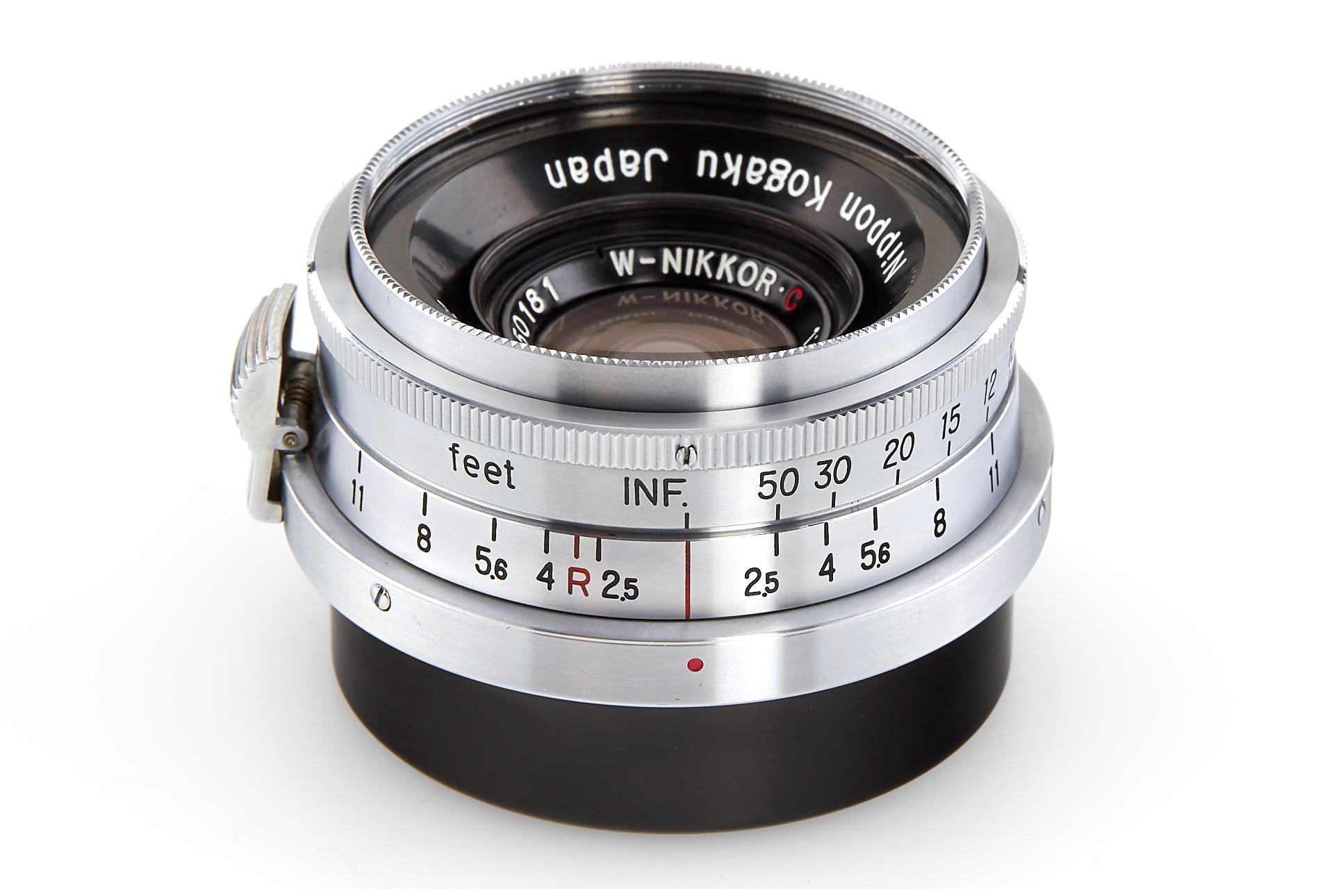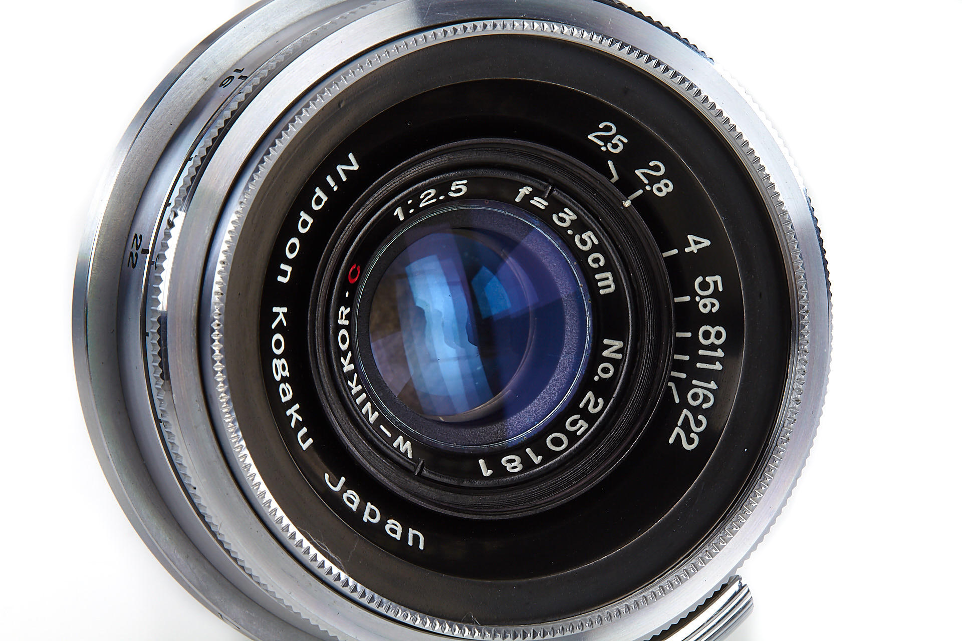 wide-angle Nikkor for Nikon S cameras, in beautiful, near-mint condition, very good optics (only a few hairline marks), with both original caps