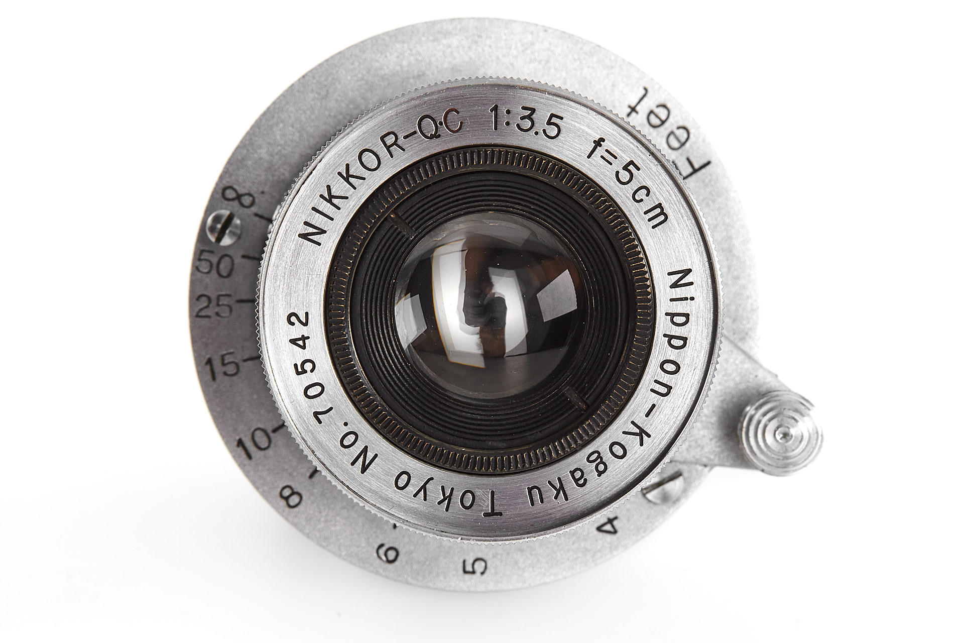 extremely rare, early uncoated Nikkor in original, rangefinder-coupled M39 mount, from the sixth and last batch, 13 numbers earlier than recorded by Rotoloni (70555-7052770), in very good condition, good optics, both caps