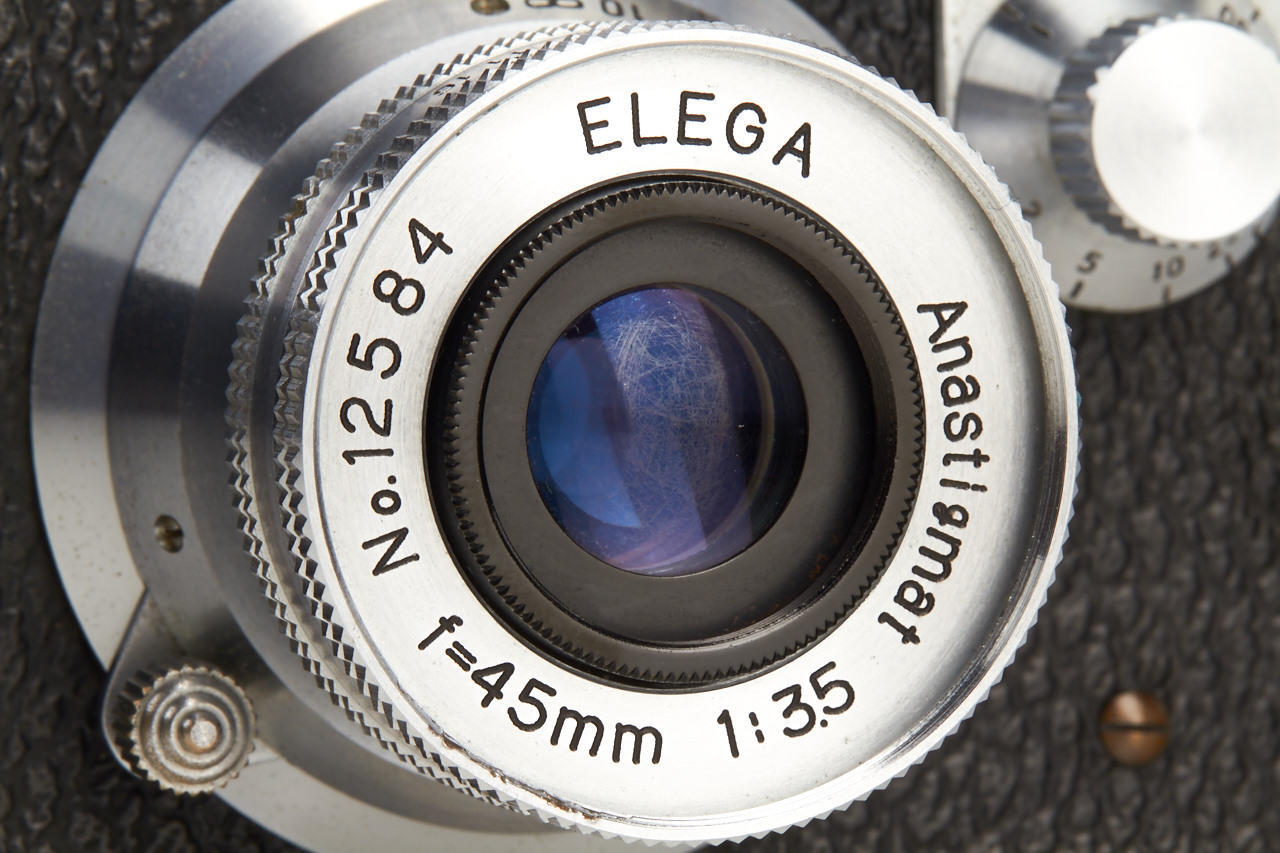 very rare Japanese Leica-styled 35mm viewfinder camera with Elega Anastigmat 3.5/45mm no.12584, in near mint condition