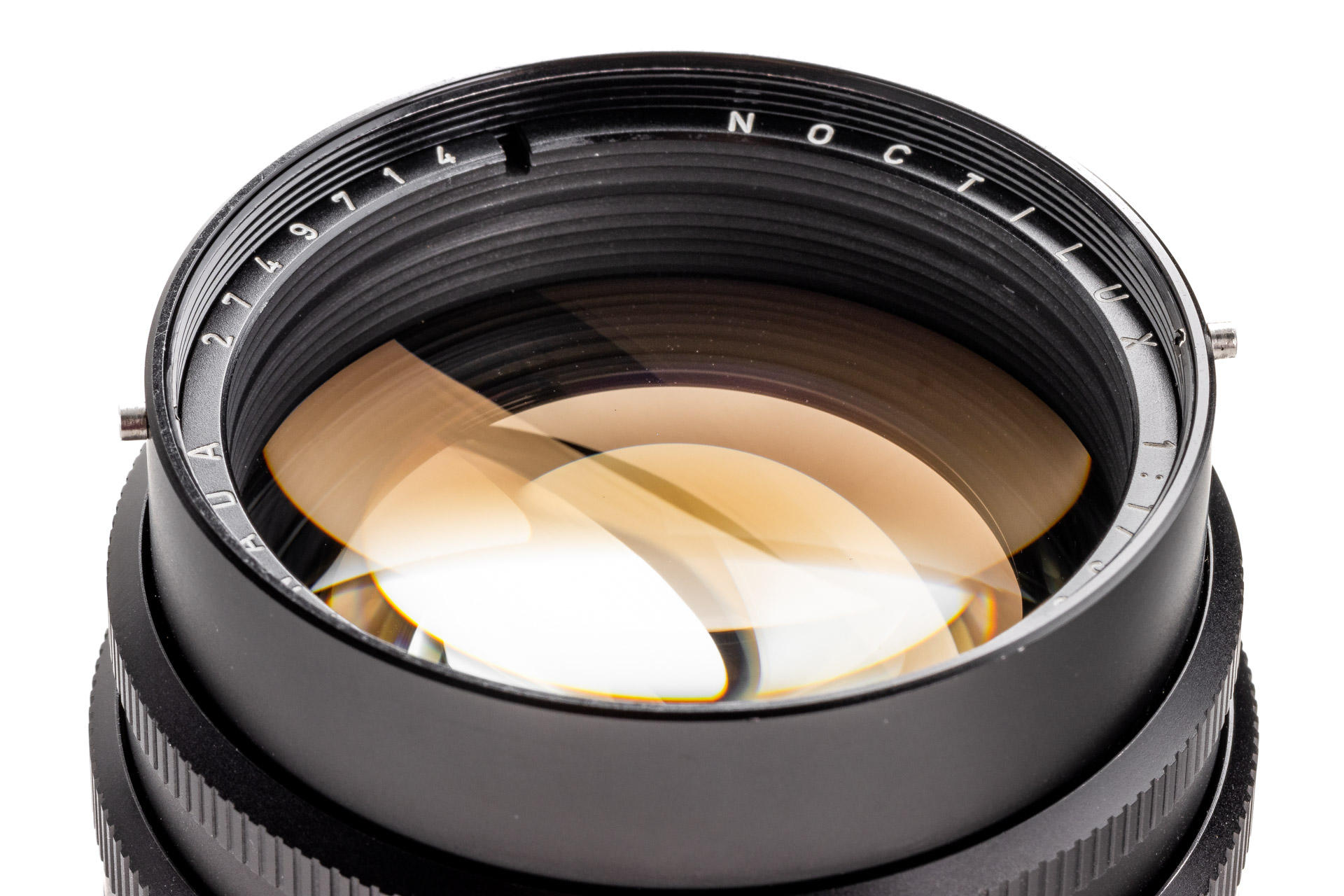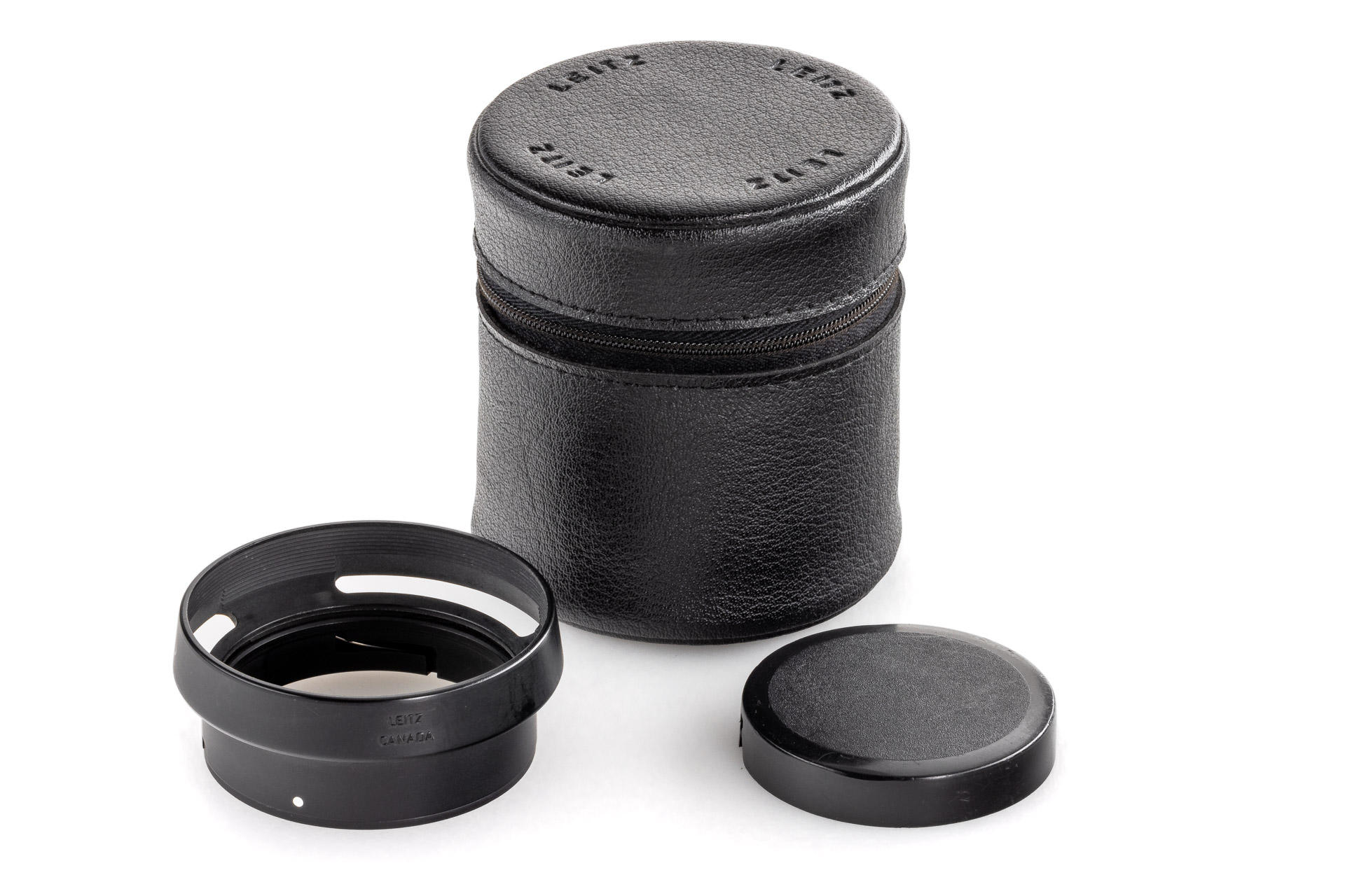 extremely early and sought after first version with E58 filter size from the very first batch (production started with serial number 2749631), in mint condition, clean optics, with 12519 hood, both front and rear caps and leather pouch