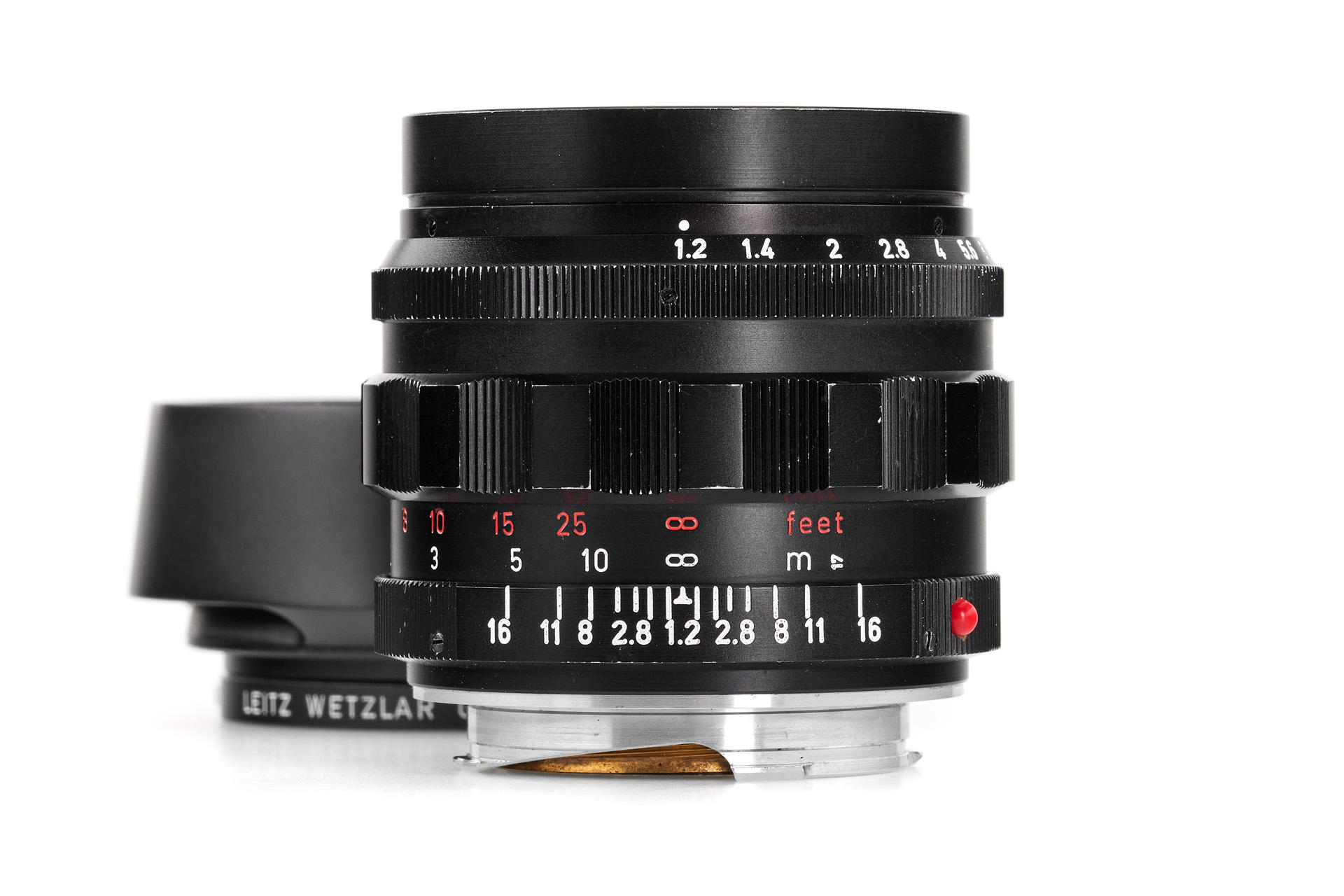 A special, very early example of the sought-after first version Noctilux. The lens shows several minor differences to the later models, like red-filled engraving of the feet scale, different style of the front engravings, different (thicker) front rim, it is in excellent condition, with very good optics (only slight cleaning marks on the rear element), a unique opportunity to acquire a special example from the legendary Noctilux f1.2 series!