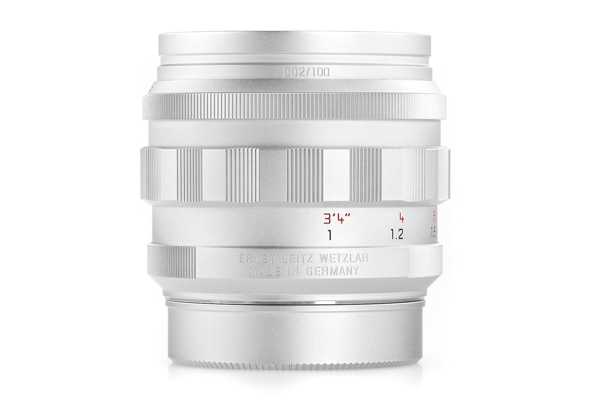 The Noctilux 50 f/1.2 was one of the first serially produced Leica lenses to feature a black finish. In the course of the transition phase of moving from silver to black-paint lenses, Leica made a very small number of Noctilux 50 f/1.2 prototypes with a silver finish. Today, they count among the most coveted and highly-priced M lenses that there are. As a homage to the ultra-rare Noctilux in silver, Leica released a special edition of the Noctilux-M 50 f/1.2 ASPH. with a silver chrome finish. Its packaging has been designed to emulate the original box of 1966. The lens barrel is made of brass, rather than aluminium. Instead of the customary LEICA engraving, the front ring is marked with the letters LEITZ WETZLAR – just like the original Noctilux 50 f/1.2. Only 100 units of this special-edition model were available worldwide. The offered example bears the serial number 4785194, special edition number 002/100 and is in perfect, unused condition.