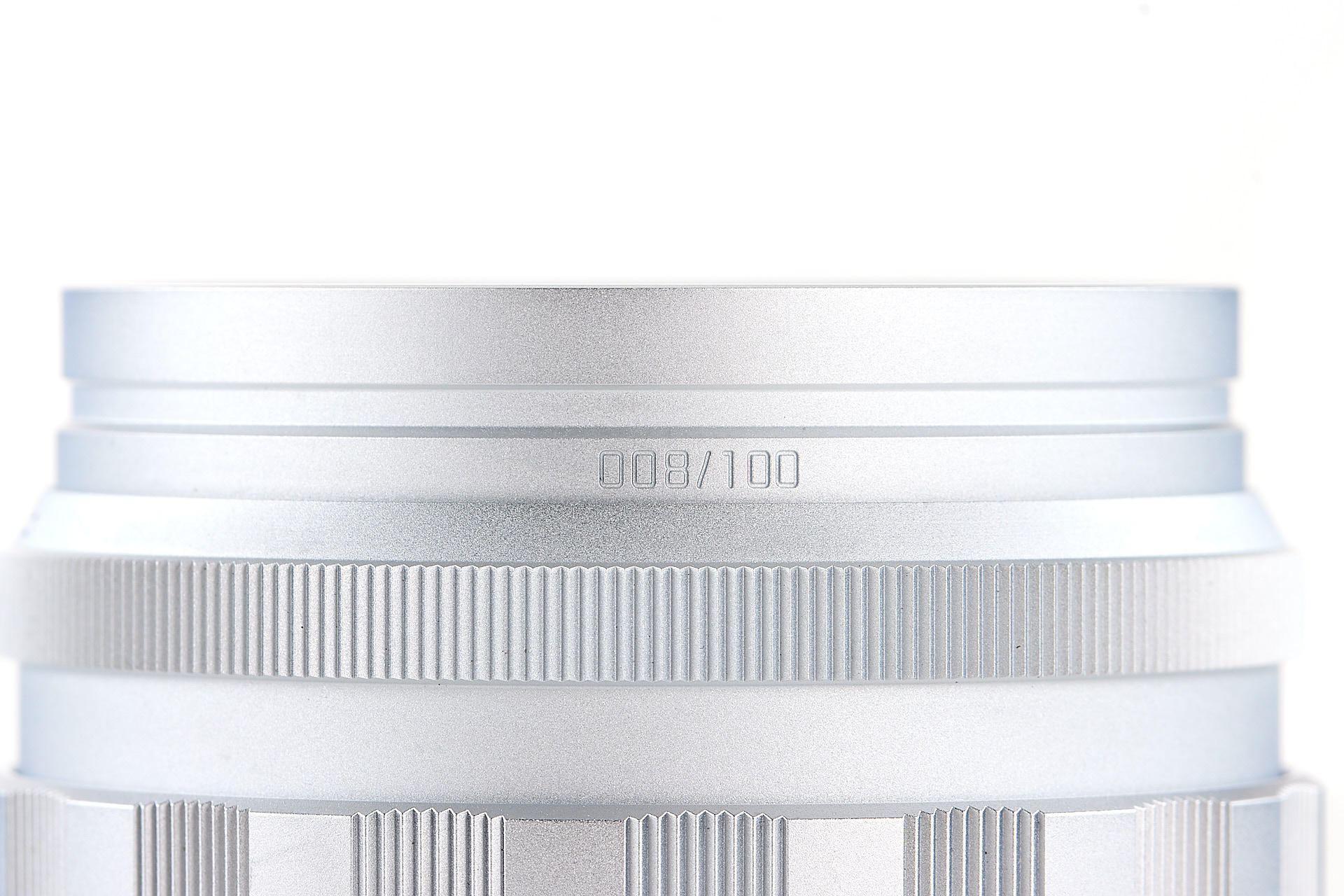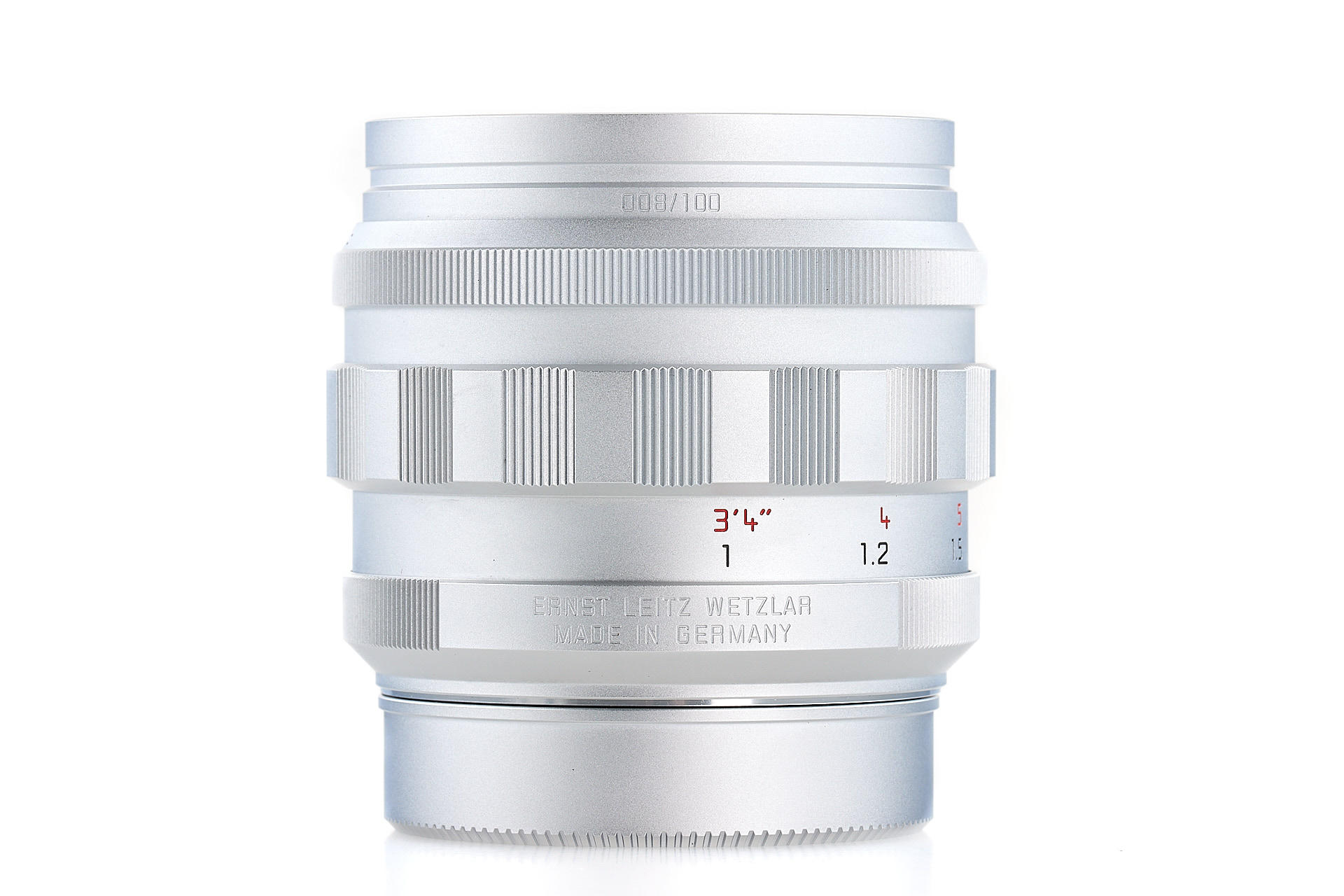 The Noctilux 50 f/1.2 was one of the first serially produced Leica lenses to feature a black finish. In the course of the transition phase of moving from silver to black-paint lenses, Leica made a very small number of Noctilux 50 f/1.2 prototypes with a silver finish. Today, they count among the most coveted and highly-priced M lenses that there are. As a homage to the ultra-rare Noctilux in silver, Leica released a special edition of the Noctilux-M 50 f/1.2 ASPH. with a silver chrome finish. Its packaging has been designed to emulate the original box of 1966. The lens barrel is made of brass, rather than aluminium. Instead of the customary LEICA engraving, the front ring is marked with the letters LEITZ WETZLAR – just like the original Noctilux 50 f/1.2. Only 100 units of this special-edition model were available worldwide. The offered example bears the serial number 4785204, special edition number 008/100 and is in perfect, unused condition.