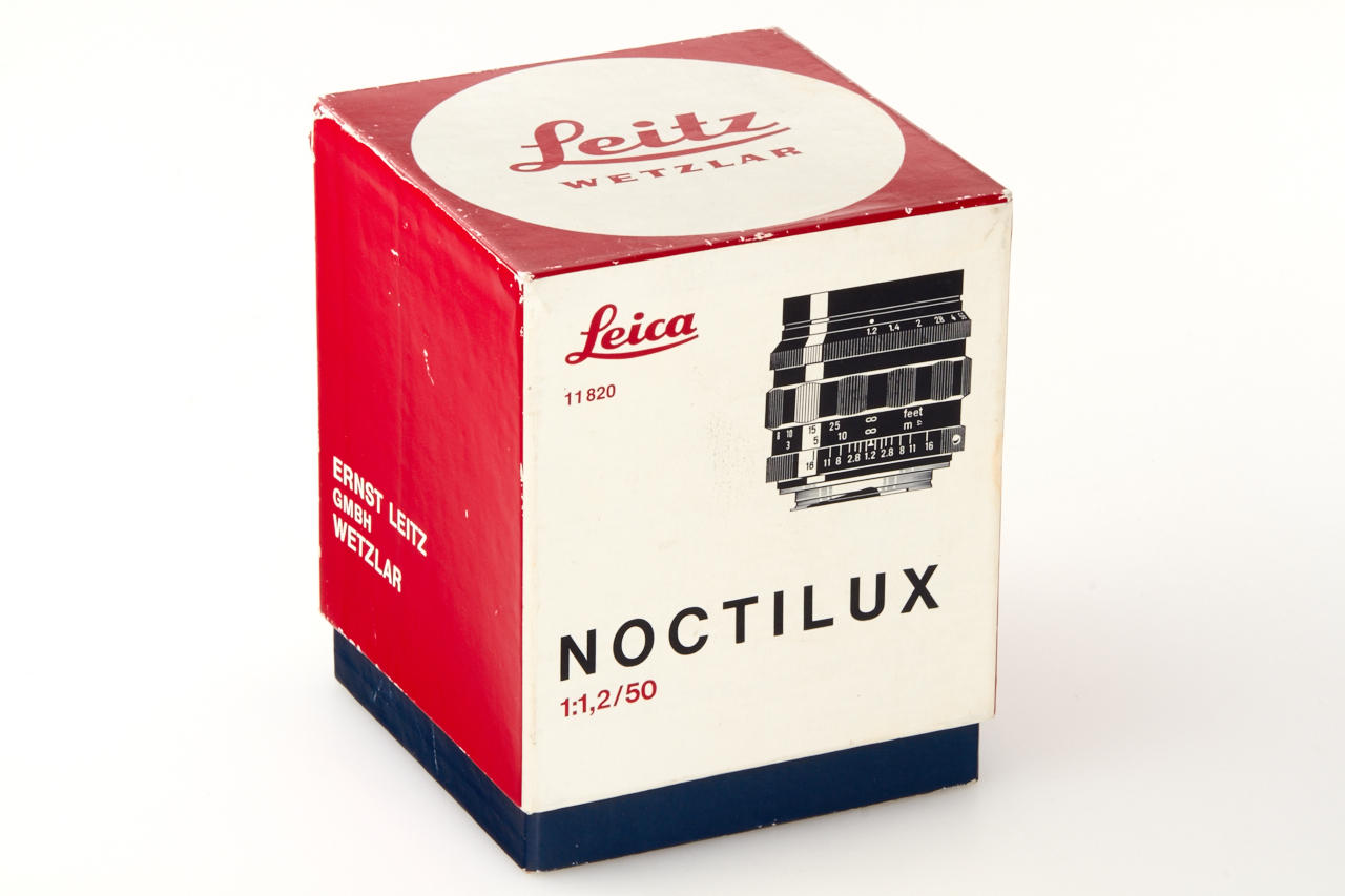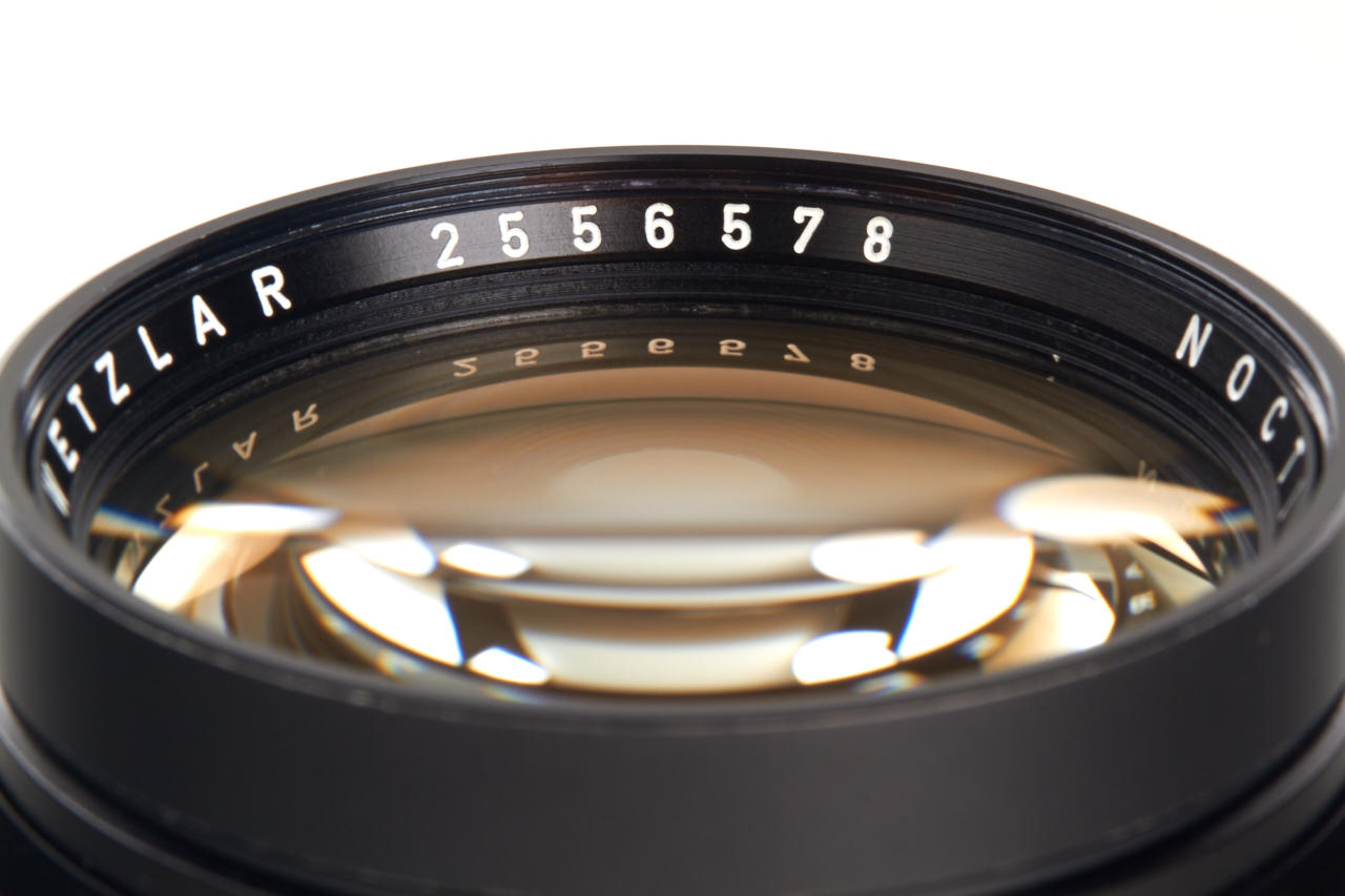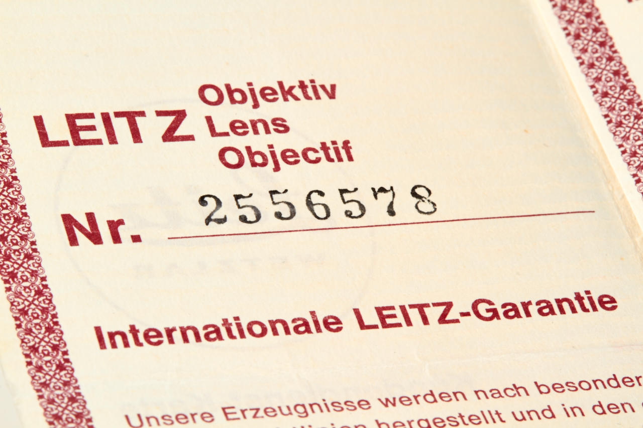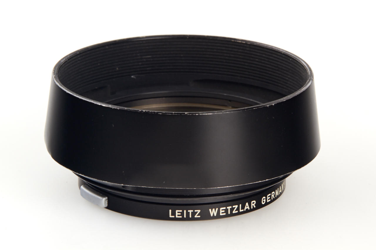 sought-after lens with two aspherical surfaces, in very good condition, clean optics, original metal hood 12503 (Cond. B-), with UVa filter, front cap, plastic case, warranty card and maker's box with matching serial number