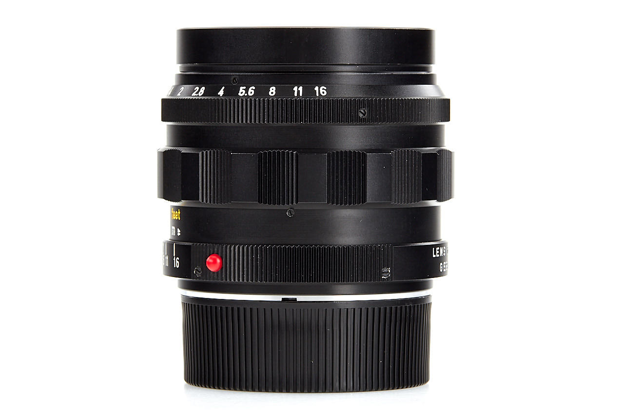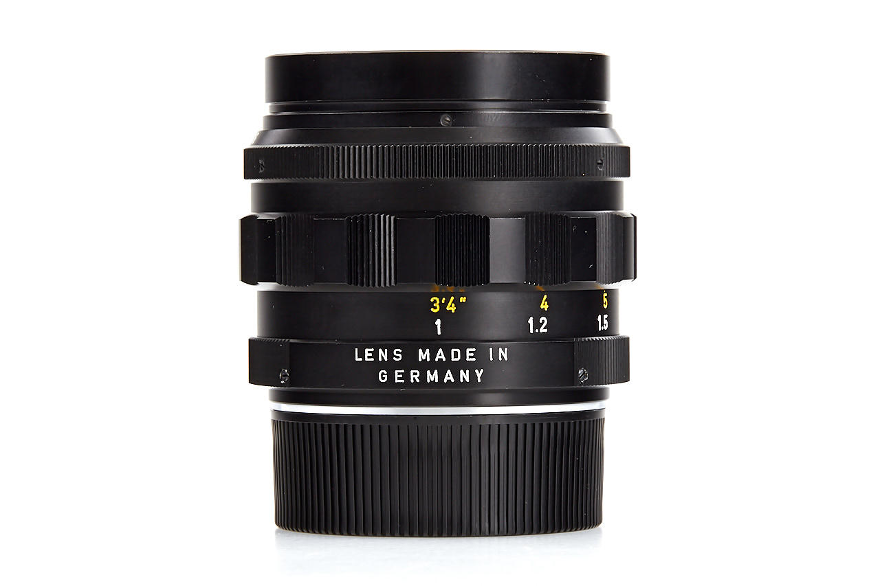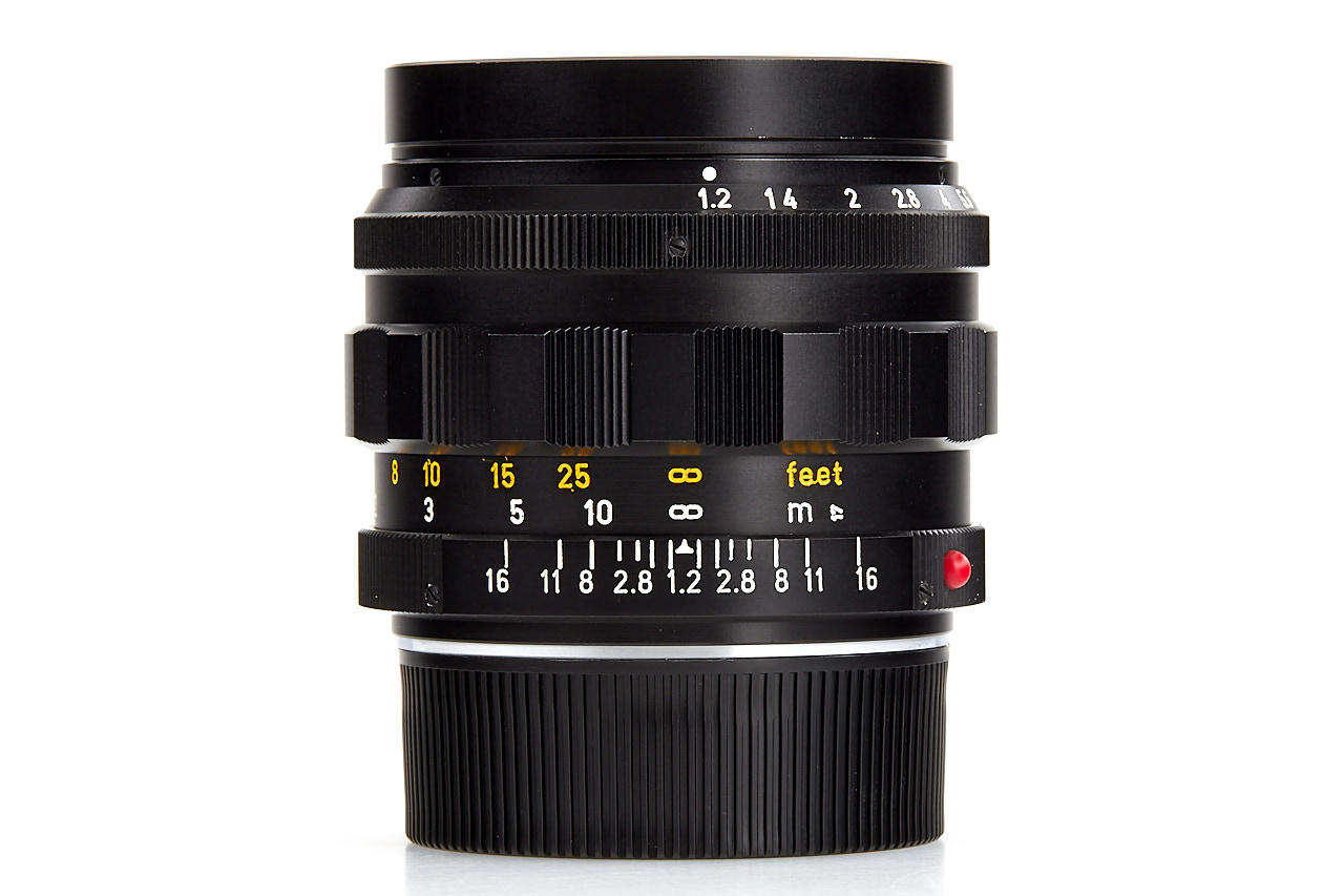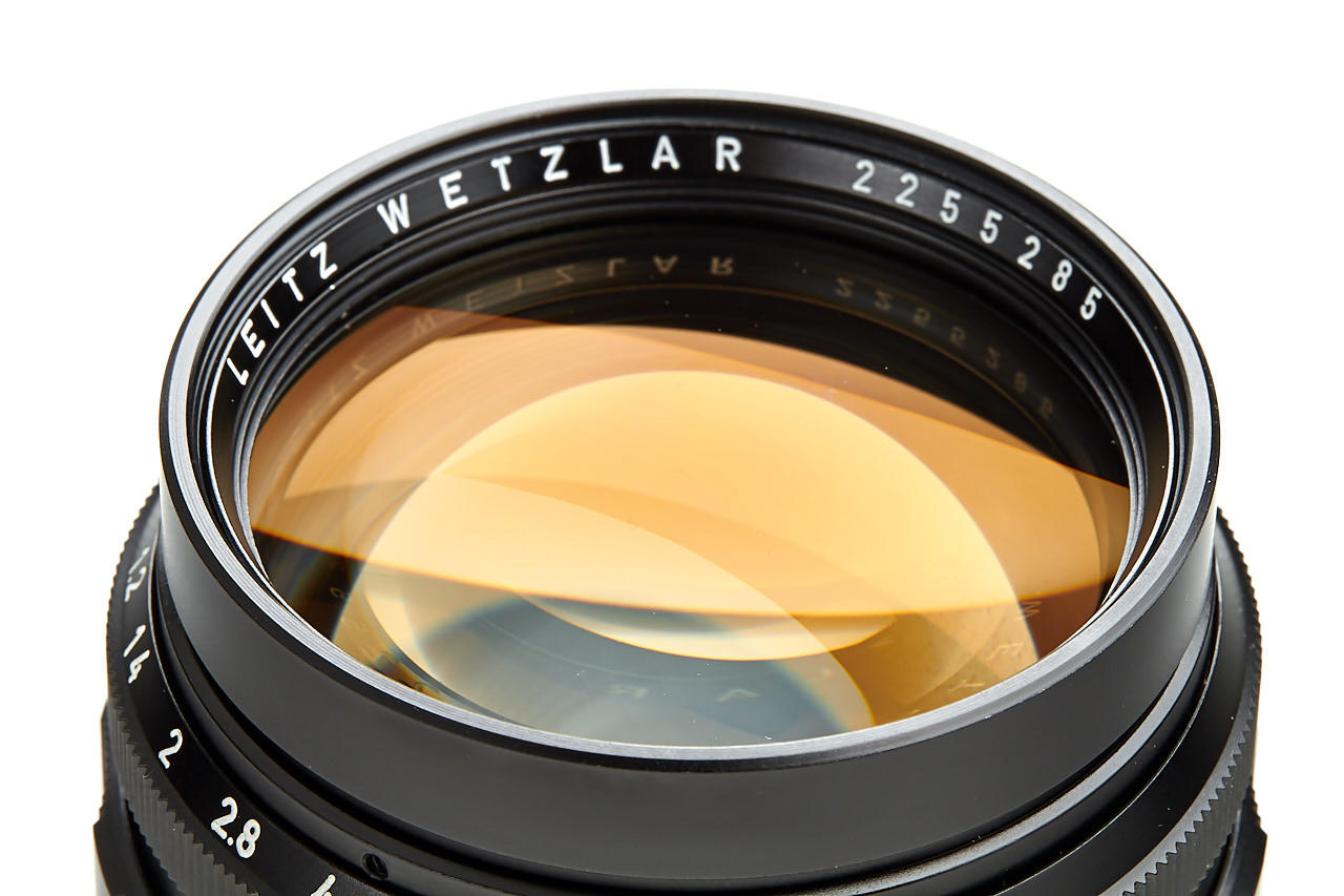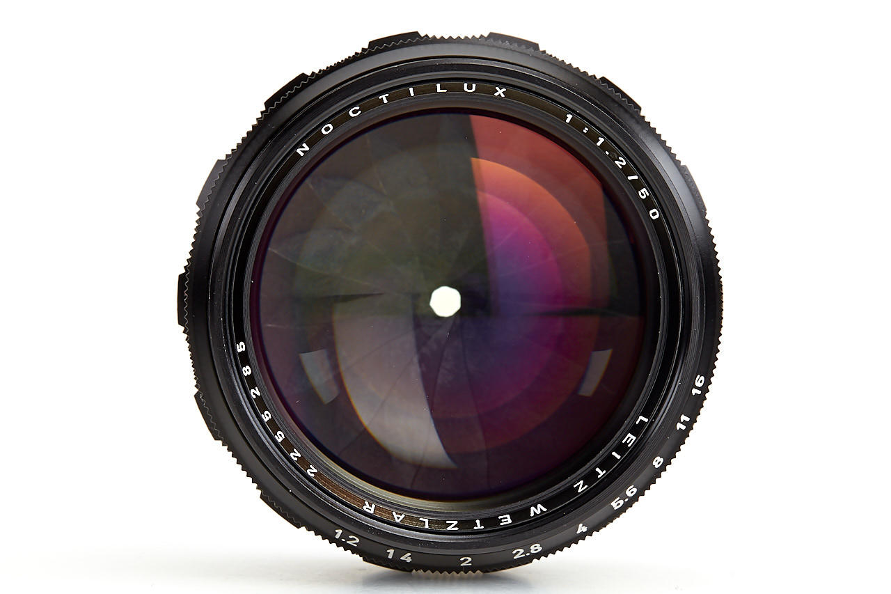The Noctilux 1.2/50mm was the first 35mm lens in the world containing an aspheric element. Leitz Wetzlar optical designers Helmut Frenk and Dr. Paul Sindel were responsible for the optical computation. The lens was introduced in 1966 and was received by the market as a sensation. It is almost entirely free of spherical aberration and coma while producing an exceptionally high degree of contrast. 45 years ago, however, even for Leitz it was quite a challenge to produce such a lens, a fact reflected in its price as well: the lens was almost twice as expensive as the body of the Leica M4. It was replaced by the 50 mm Noctilux f/1 in 1976, which – using optical glasses new at the time – could be calculated without aspherical elements and was even cheaper than its predecessor. In ten years of its production, only about 2,500 units of the 50 mm Noctilux f/1.2 were produced in total, which represents a proportion of one unit per business day. The Noctilux f/1.2 lens can truly be called a legend within the technical development of the Leica lenses. It is not only sought-after by collectors, but still also a favourite of some photographers. This particular example is in near mint cosmetic condition, with good optics (only minimal cleaning marks inside), with front cap and keeper.