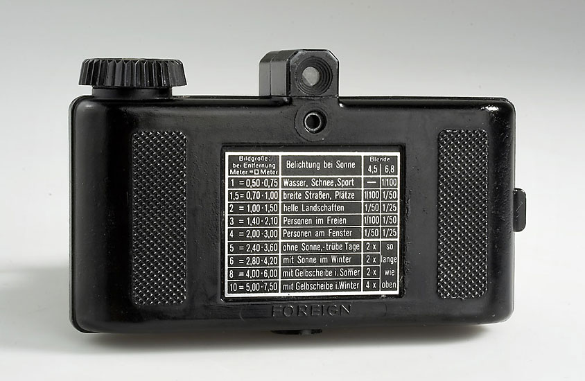 rare cast-metal camera for 3x4cm exposures on 35mm roll-film with the original Special-Anastigmat 4.5 lens (usually the lens is missing on this camera), very nice condition