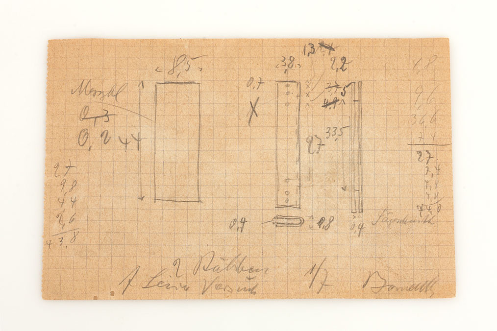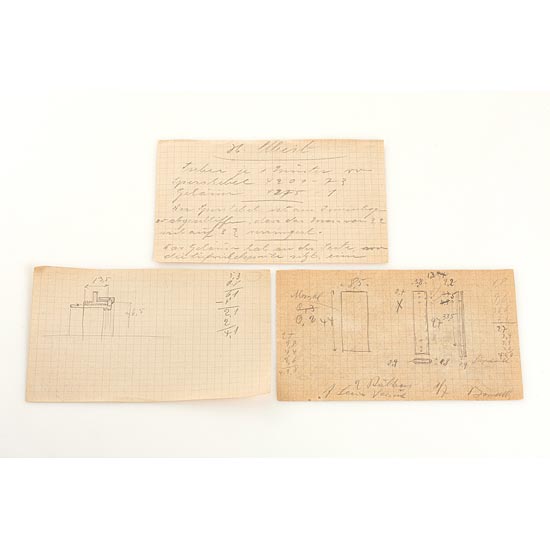 original pencil design drawings, two by Oskar Barnack (one with his signature), one signed by Wilhelm Albert, all sized 10x15cm (3)