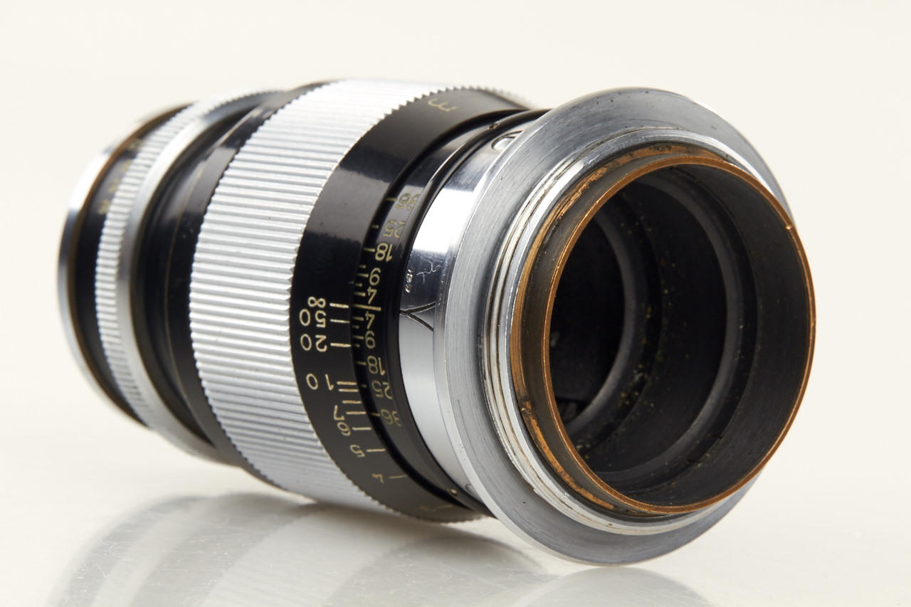 very rare black/chrome tele in rangefinder coupled M39 screw mount, in fine condition (scratched front element), both caps and maker's box
