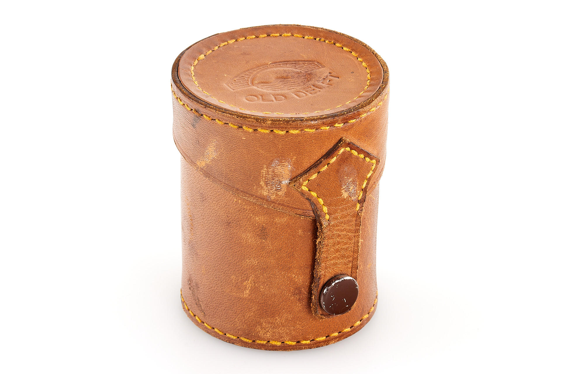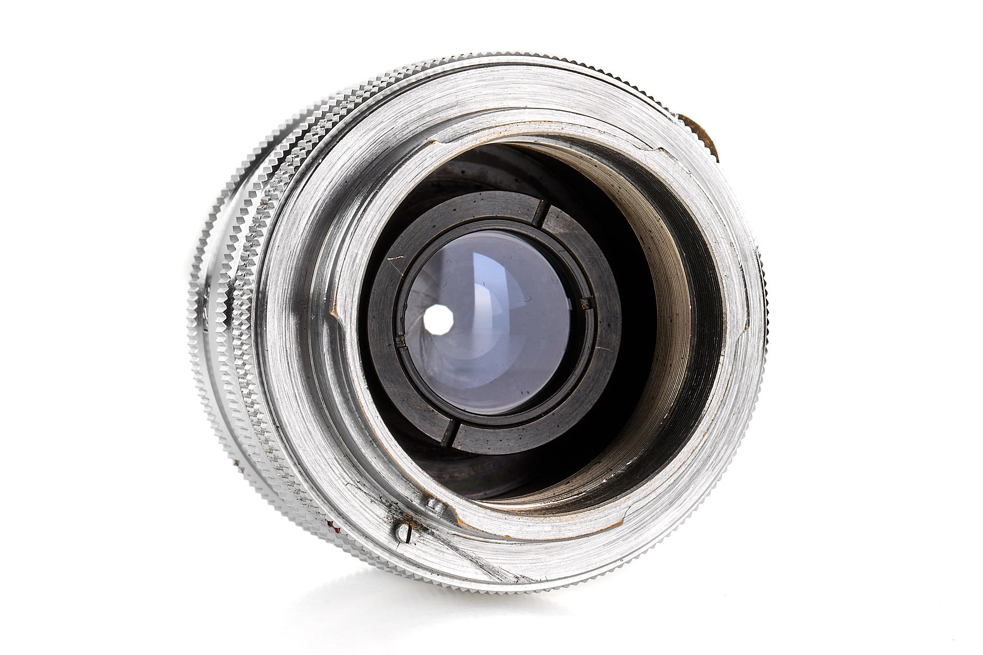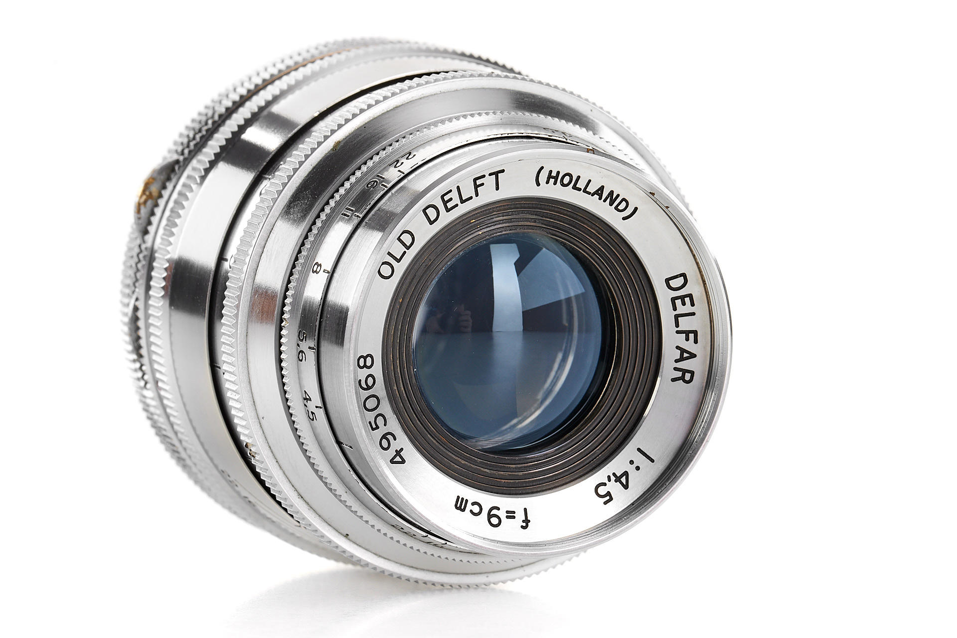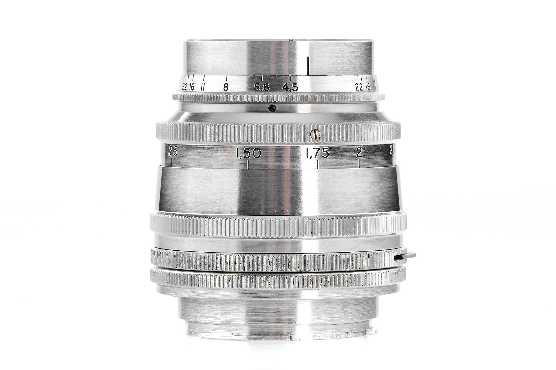 very rare high-quality lens made in the Netherlands, in Exakta mount, in mint condition, good coated optics showing a light haze, with 2x close-up extension tubes and original leather case