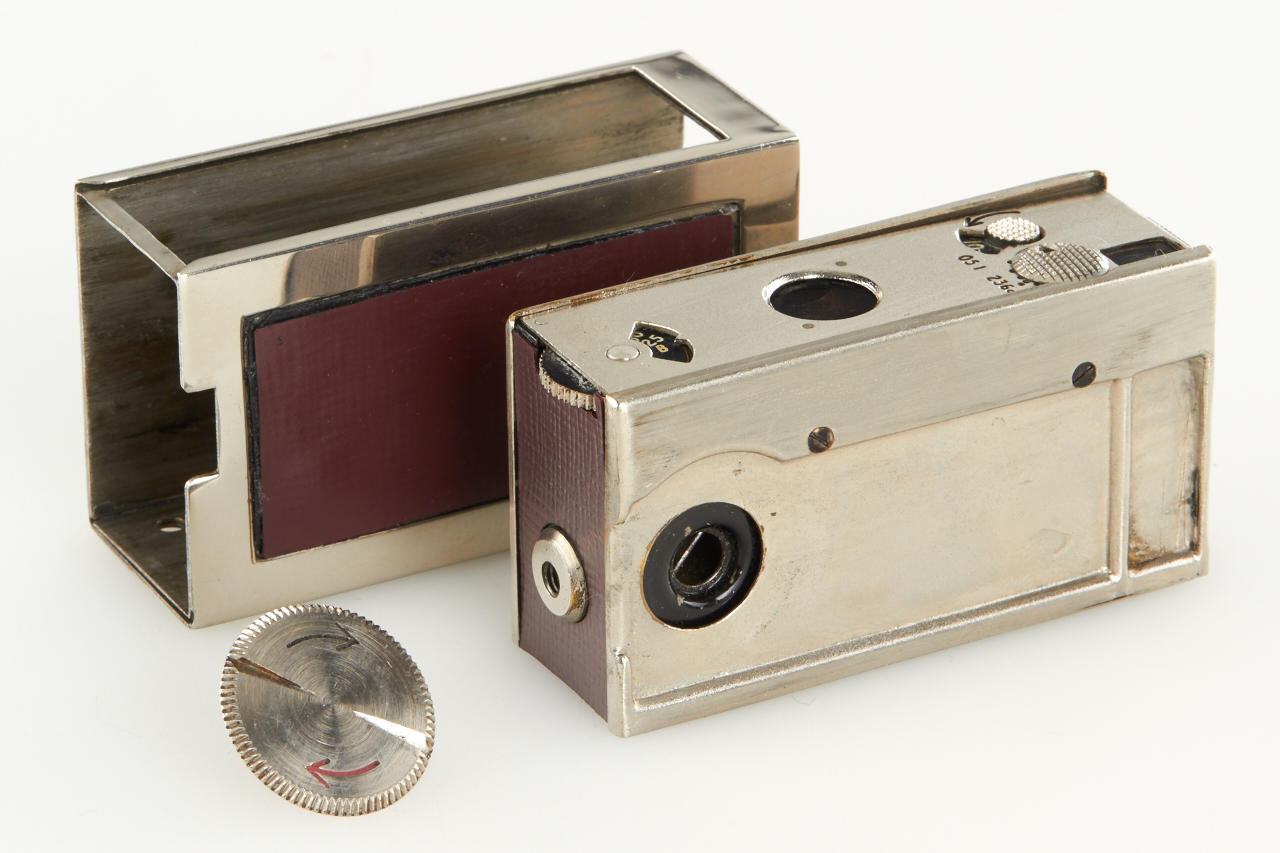 very rare Austrian subminiature camera for 10x14mm exposures on perforated 16mm film in good original condition, only very few of these cameras are known to exist, the production probably never exceeded 50 units