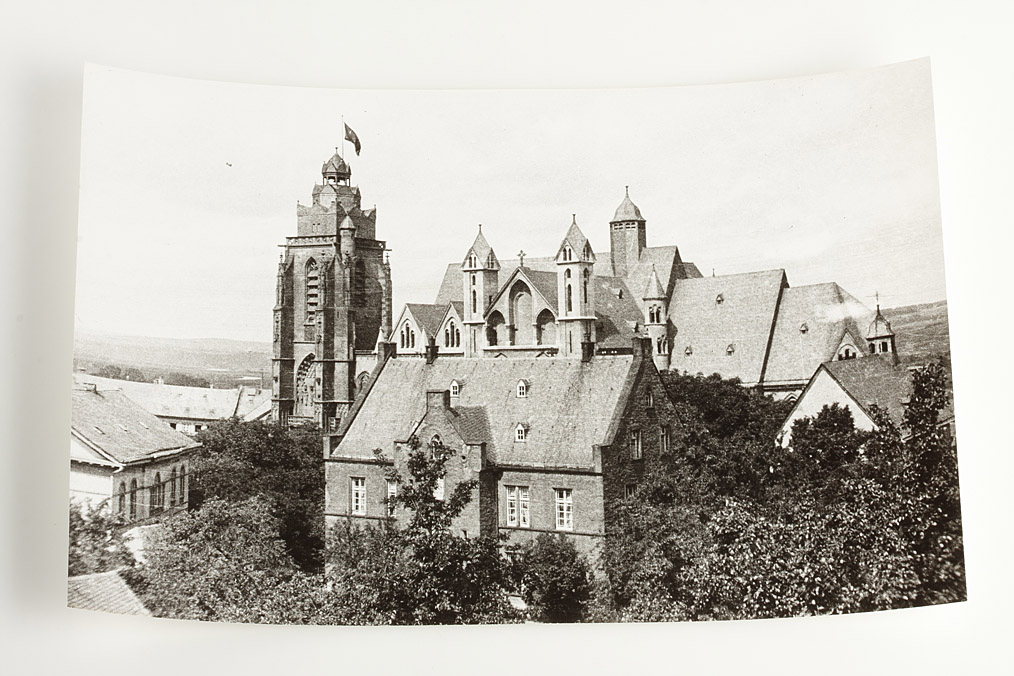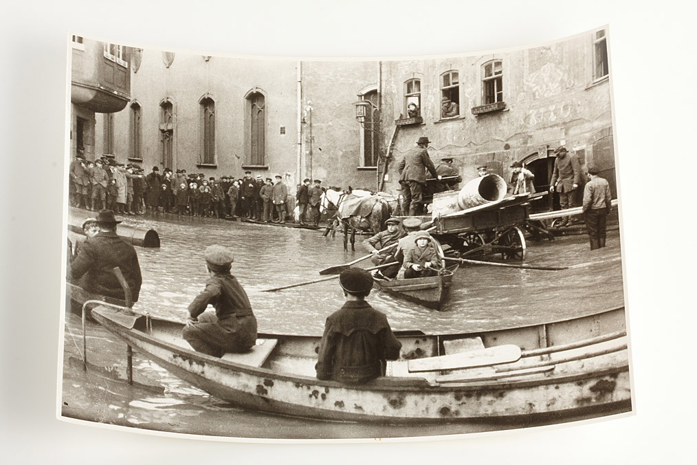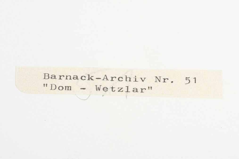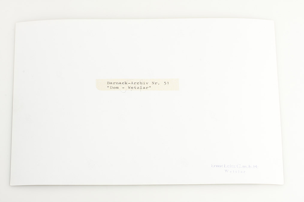 three prints from pictures made by Oskar Barnack with the Ur-Leica, (1) famous portrait of Dr.Ernst Leitz, on the back marked: Barnack-Archiv Nr.34 Dr.Ernst Leitz, Gründer der Leitz-Werke, im Schwarzwald 1914, stamped: Ernst Leitz G.m.b.H. Wetzlar, 16.6x23.4cm, (2) famous picture of the flood in Wetzlar, on the back written: Hochwasser in Wetzlar Aufnahme mit der Ur-Leica, stamped: Ernst Leitz G.m.b.H. Werbeabteilung, 17.8x23.3cm, (3) picture of the dome in Wetzlar, the back marked: Barnack-Archiv Nr.51 "Dom-Wetzlar", stamped: Ernst Leitz G.m.b.H. Wetzlar, 15.9x23.3cm, (3) - rare and quite early prints from the original negatives, printed c.1955