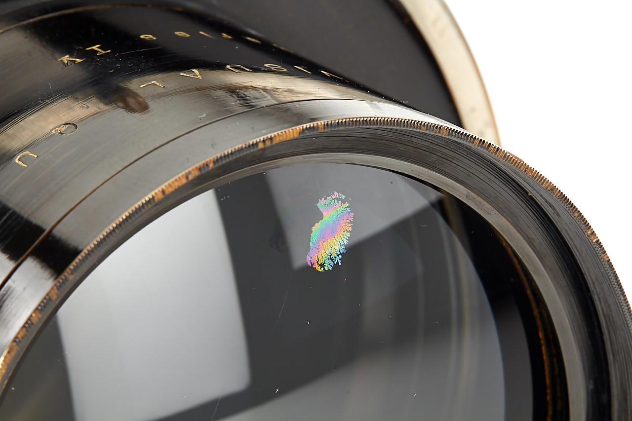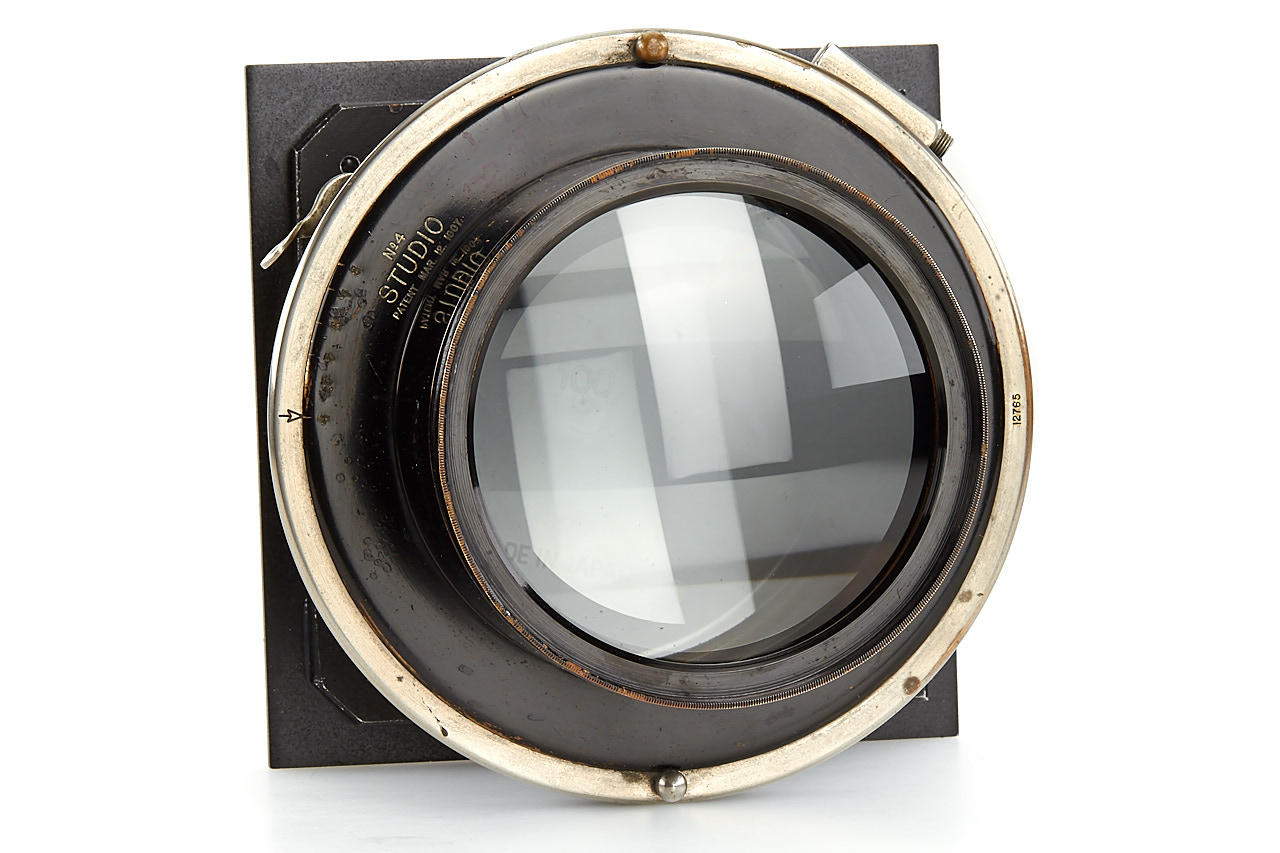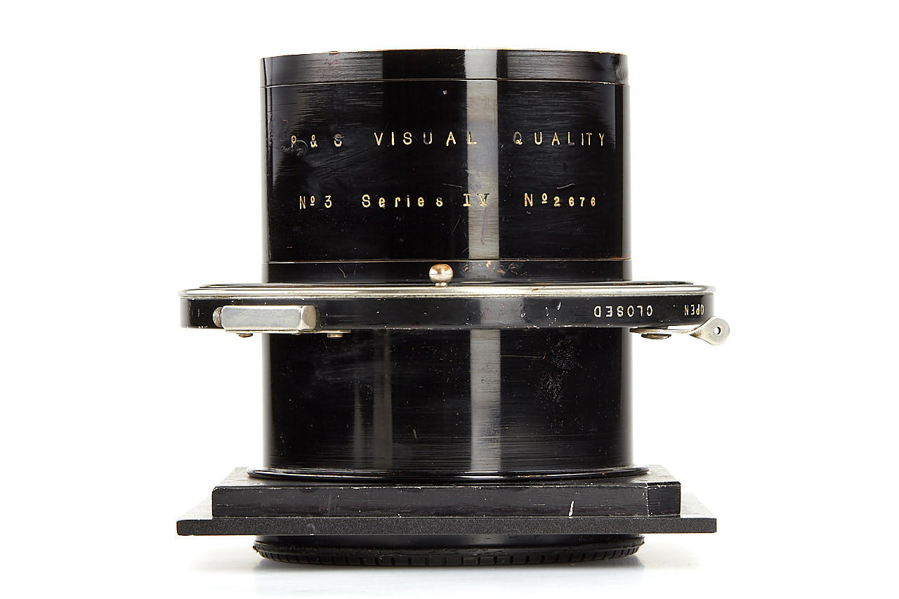 sought-after Pinkham & Smith soft focus lens for 8x10", 14" focal length (c.350mm), 130mm height, front and rear lens diameter 85mm, in excellent condition, very good optics (small separation in front element not affecting the photos), in working Wollensak Studio No.4 shutter/iris combination