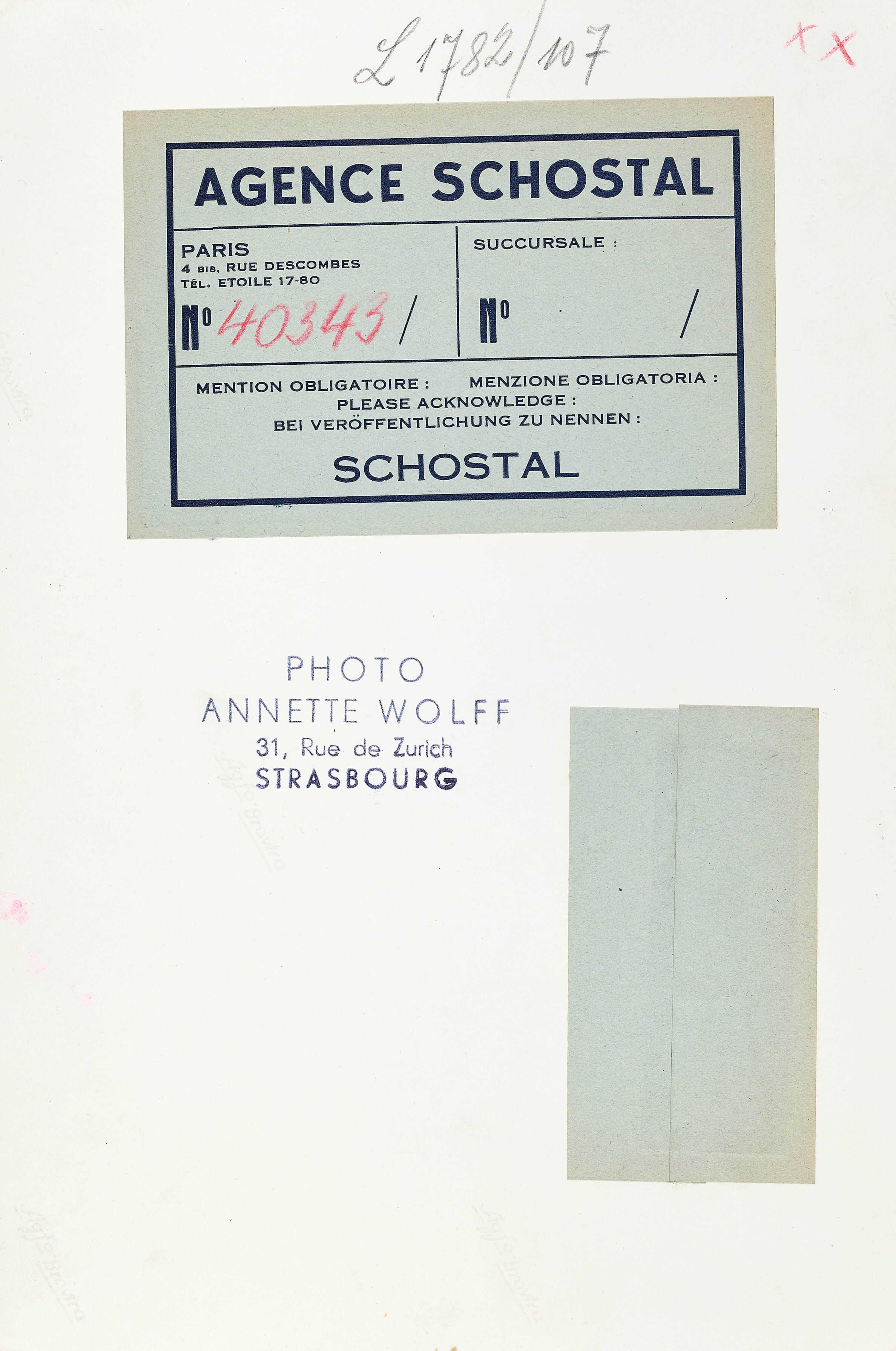 Photographer’s agency label and stamp on the reverse