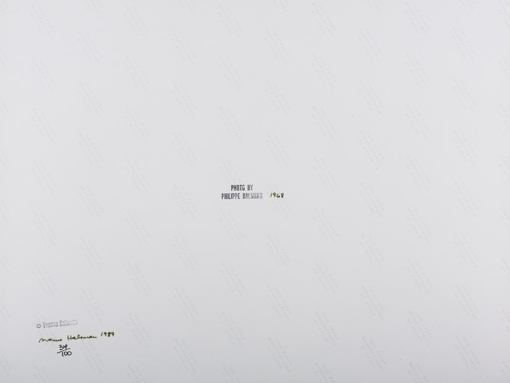 8 Chromogenic prints, portfolio printed in 1989 in orange clamshell box with gilt-lettered title each c. 38 x 30 cm (15 x 11.8 in) Each with the photographer's “PHOTO BY PHILIPPE HALSMAN” stamp and his wife's copyright stamp on the reverse, each signed and numbered by Halsman's wife Yvonne in ink on the reverse, edition no. 34/100