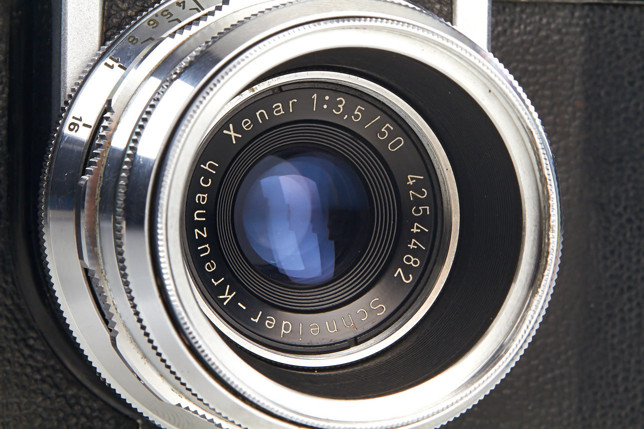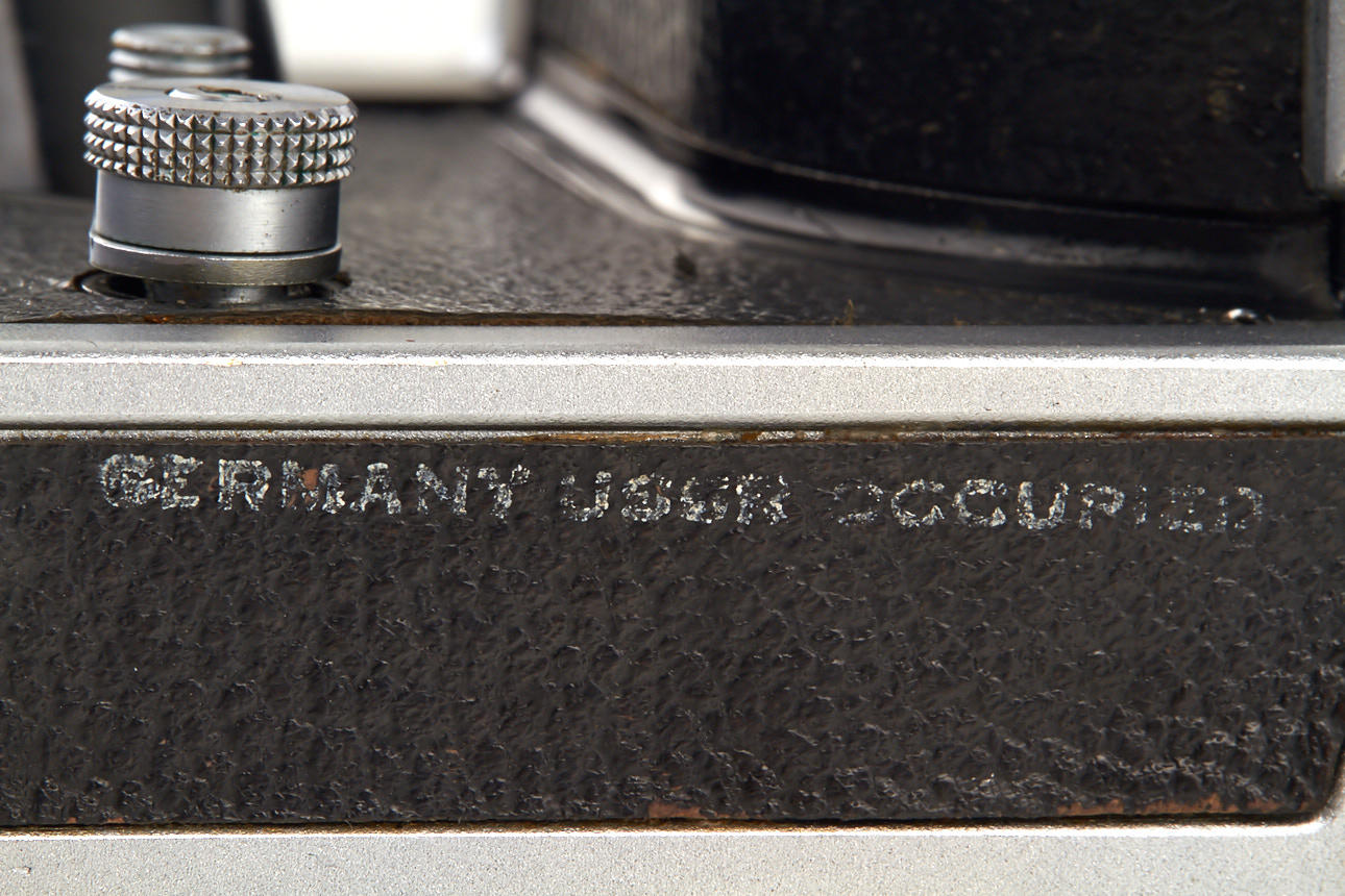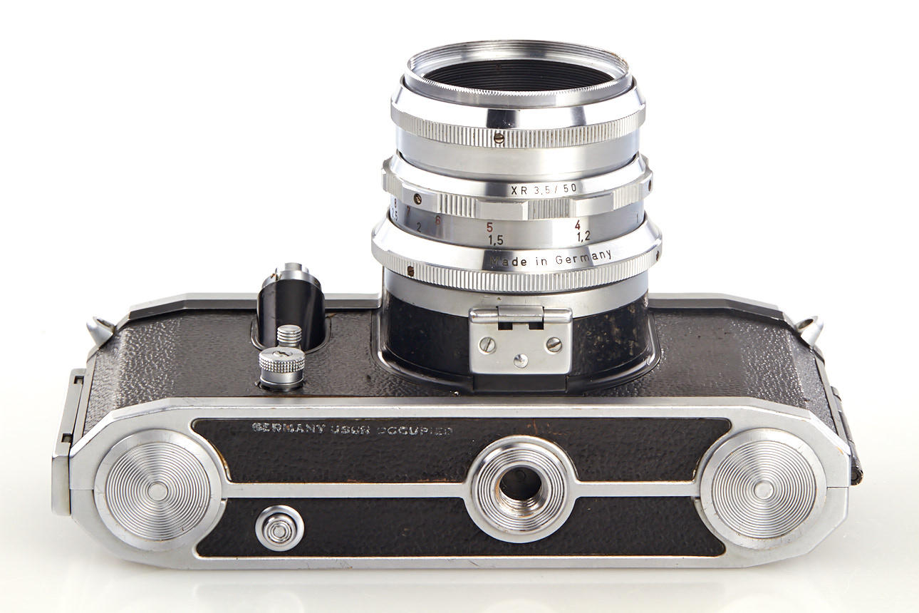 rare Contax D with Hexacon name plate, export camera for USA stamped on base 'Germany USSR occupied', with uncommon heavy mount Schneider Xenar 3.5/50mm no.4254482, in very good working condition