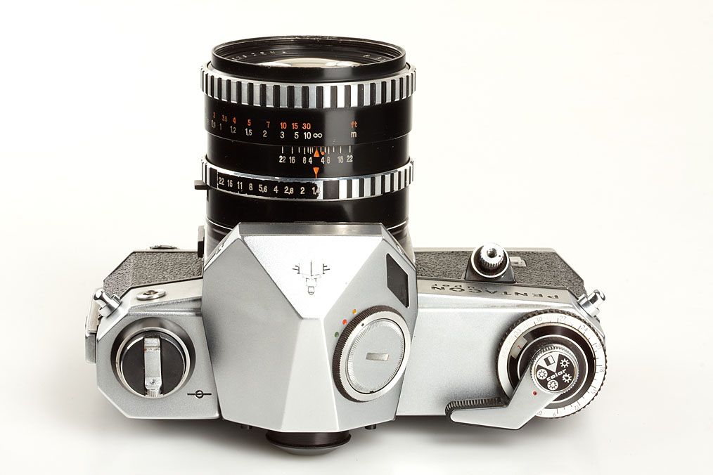 35mm SLR in fine and working condition (exposure meter not working), Pancolar 1.4/55mm no.8282982 (clean optics), cap, case