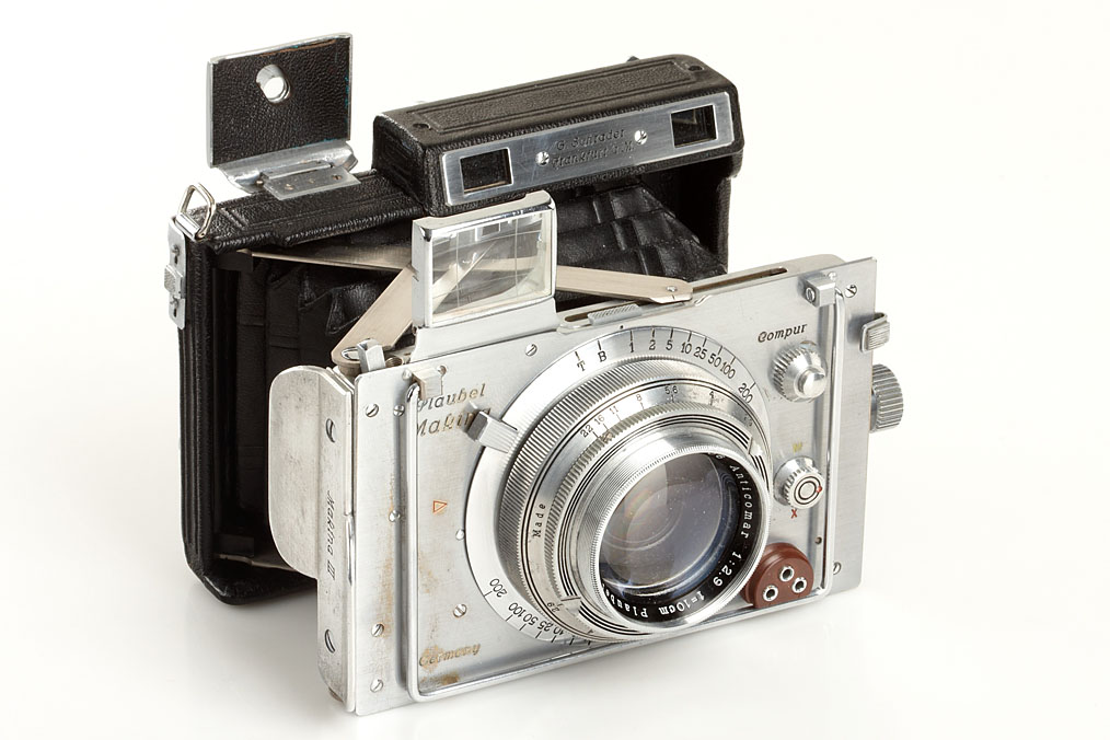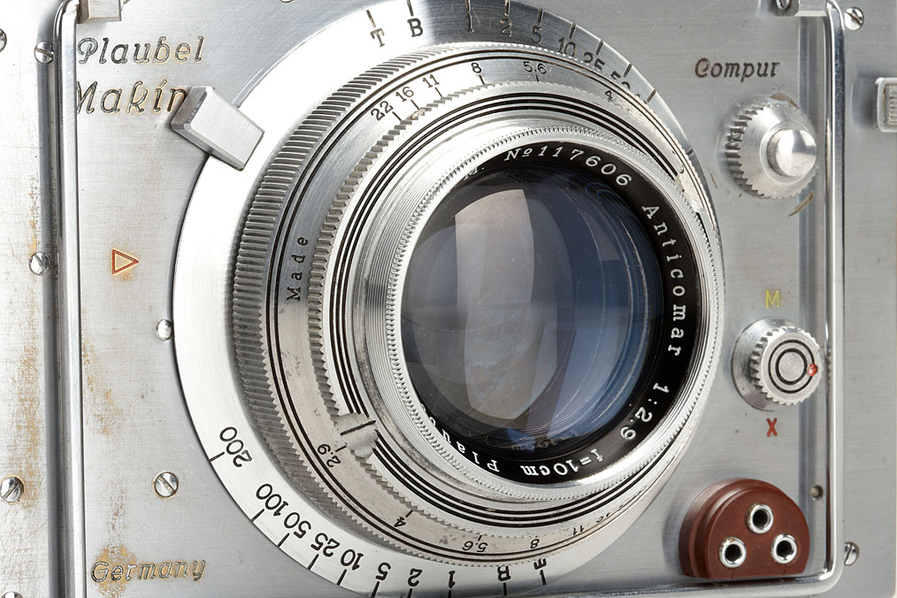 outfit in fine condition, good working Compur shutter, with Anticomar 2.9/10cm no.117606 (cap), near mint Rap.Weitw.Orthar 6.8/73mm no.1123929 (both caps, case), Tele-Makinar 4.8/19cm no.119257 (both caps), hood, filters, wide-angle and tele viewfinder attachments, 4.5x6cm viewfinder attachment, 4.5x6cm mask, 6x9cm roll-film holder, focusing screen adapter, 4 original film-holders with inserts, tripod adapter, two original flash cables, all in fitted case