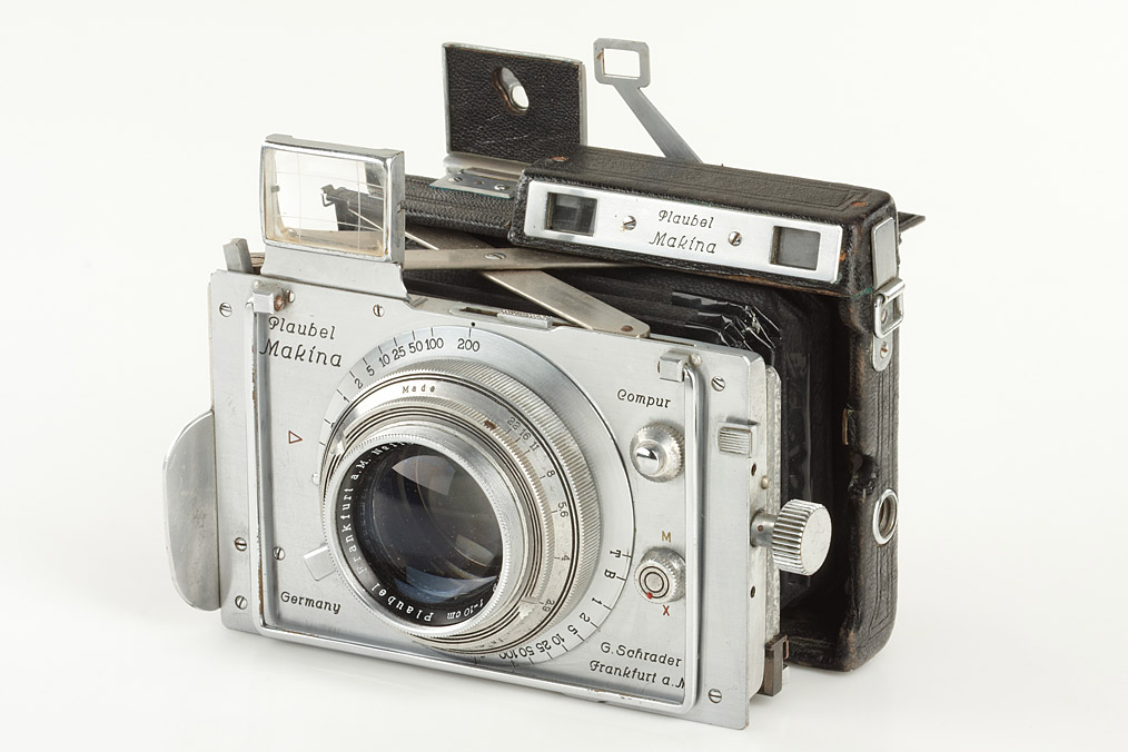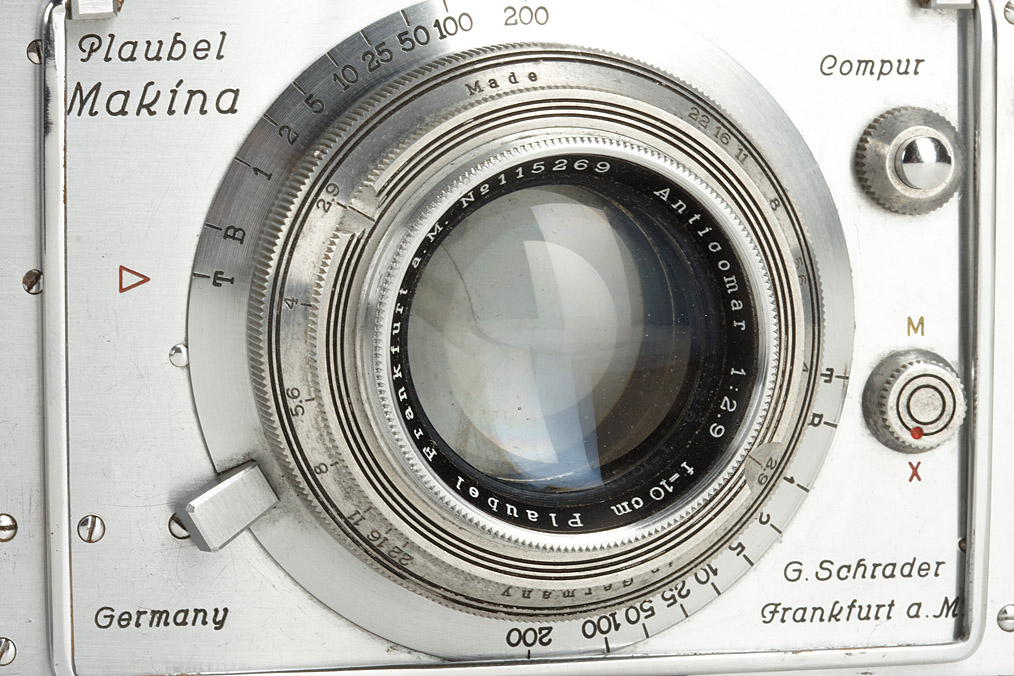 body in with good working shutter, cap, strap, cable release, focusing screen adapter, two planfilm holders, maker's box, Anticomar 2.9/10cm no.115269 (hood), Rap. Weitw. Orthar 6.8/7.3cm no.118526 (caps, keeper, mask)