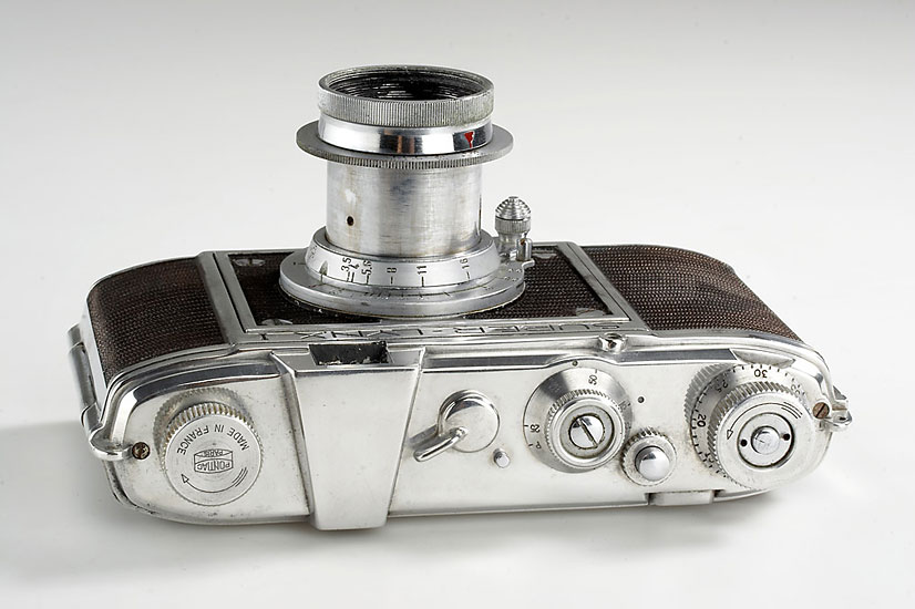 rare French 35mm viewfinder camera, alloy body, collapsible Flor 3.5/50mm no.818667