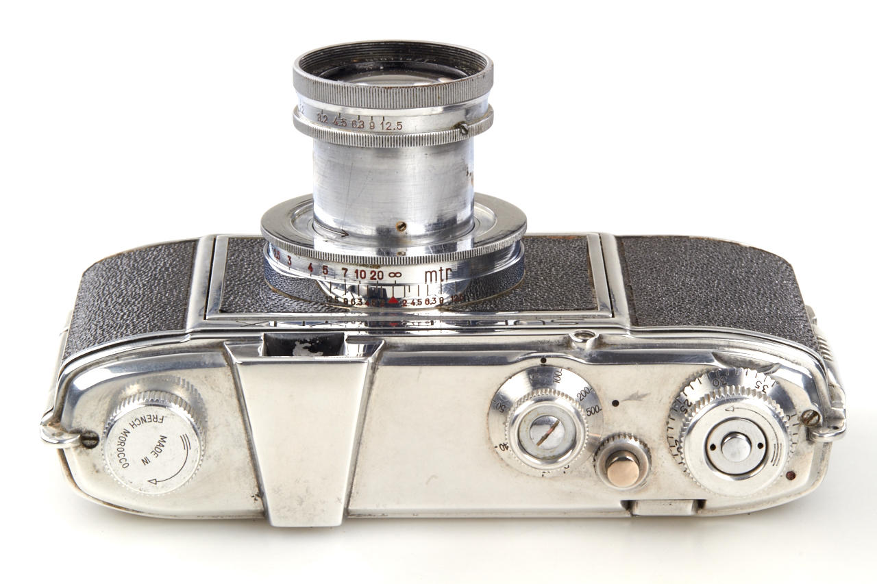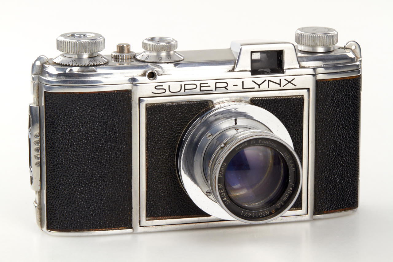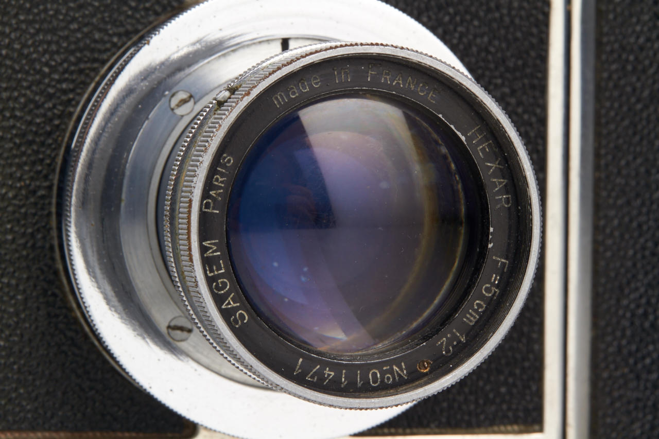35mm viewfinder camera, aluminium body with black vulcanite, very rare with interchangeable (Summar type) Sagem Paris Hexar 2/5cm no.011471, original case - in fine condition