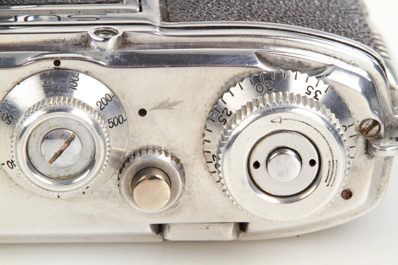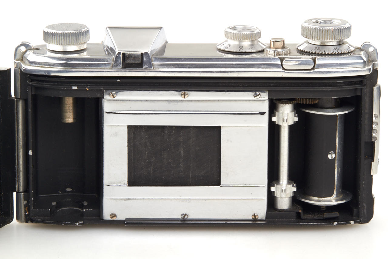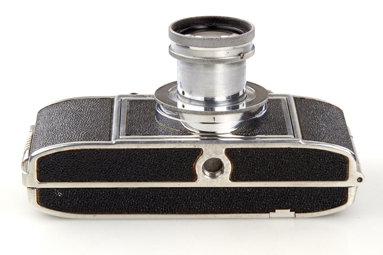 35mm viewfinder camera, aluminium body with black vulcanite, very rare with interchangeable (Summar type) Sagem Paris Hexar 2/5cm no.011471, original case - in fine condition