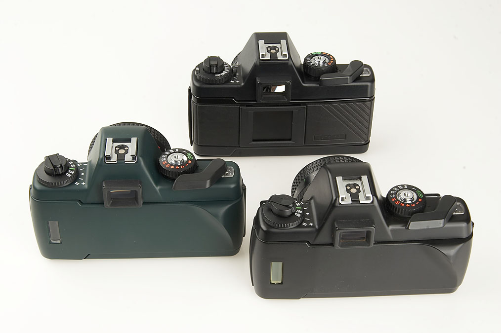 (1) BX20 no.2375472 with Prakticar 2.4/50mm no.3076753 (condition A-), (2) BX20S no.2195511 with Prakticar 1.8/50mm no.4533548 (condition A-), (3) BX20S green no.4352767 with Prakticar 1.8/50mm no.6102826 - the last of all Praktica cameras ever produced, only some 20 units were made in 1990, dark-green finish - a must for every collector of Praktica! (condition A/B) (3)