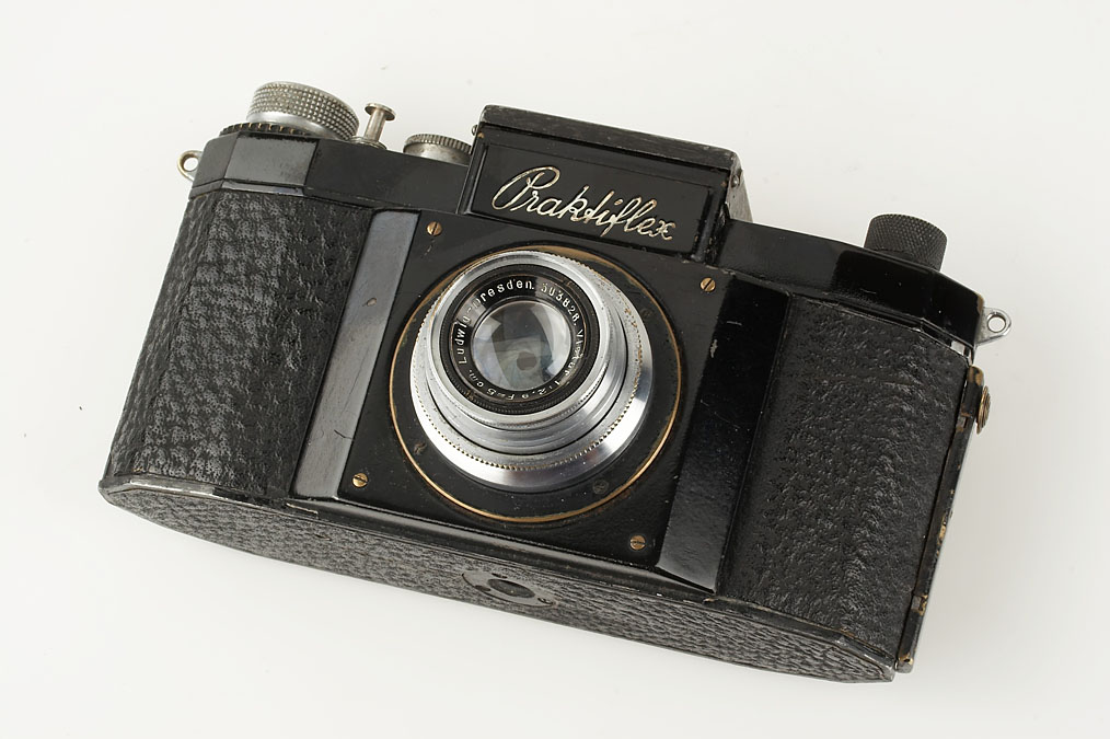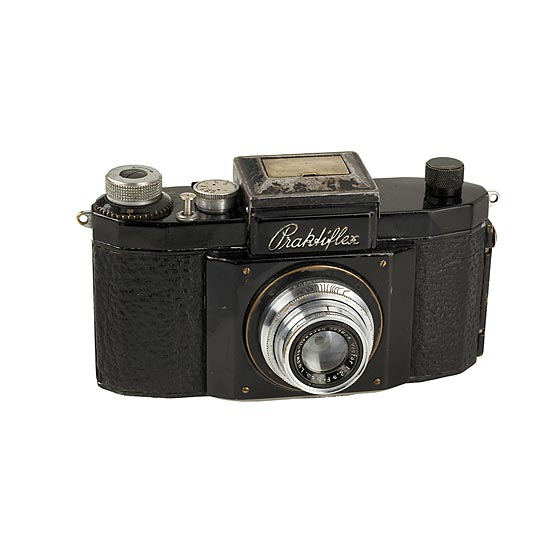 rare Praktiflex first model, 4th version 076, black painted version with Victar 2.9/5cm no.503626, shutter works