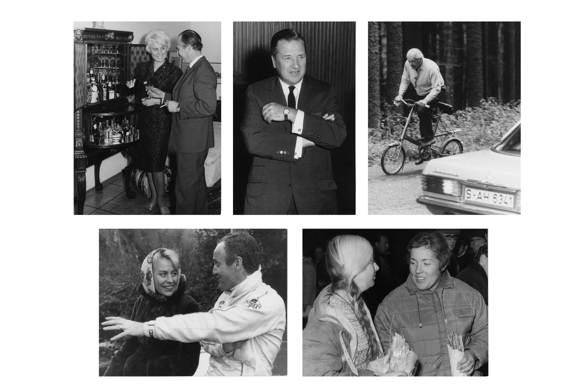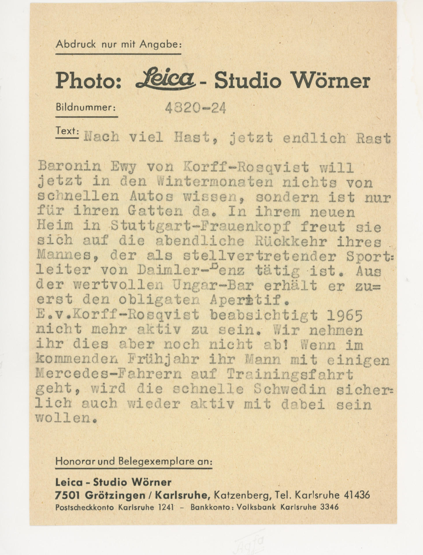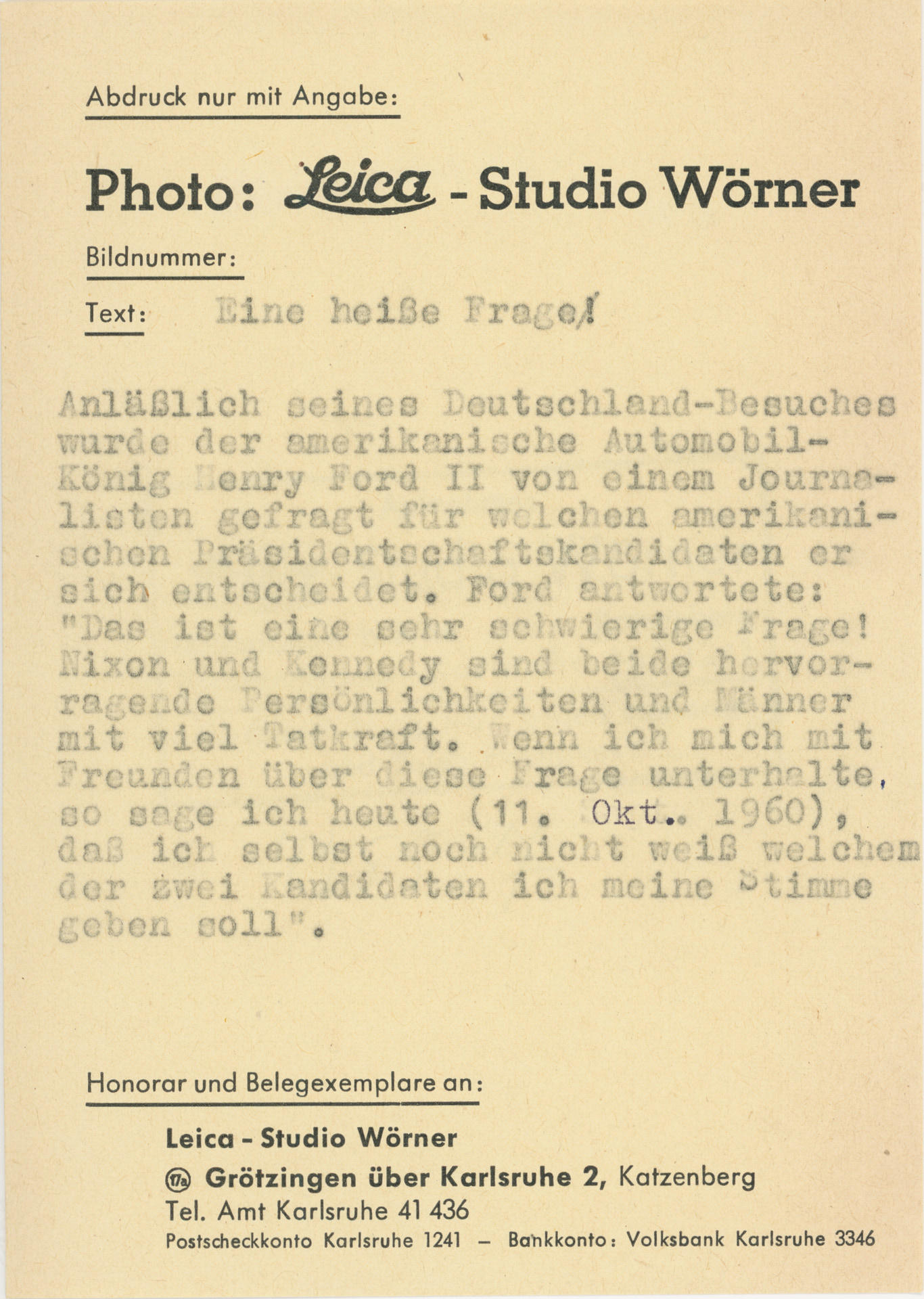 Set of 5 press released silver gelatin c.13 x 17 cm prints of pilots and car company magnates, all with German caption and stamp from the Leica-Studio Wörner in Karlsruhe (Germany) on the back