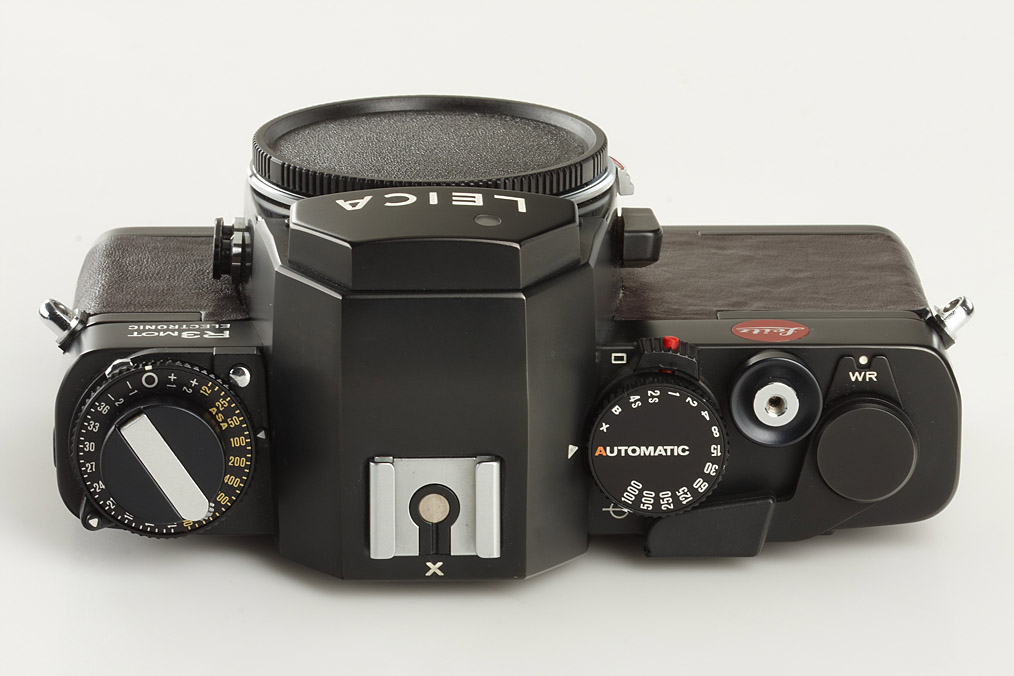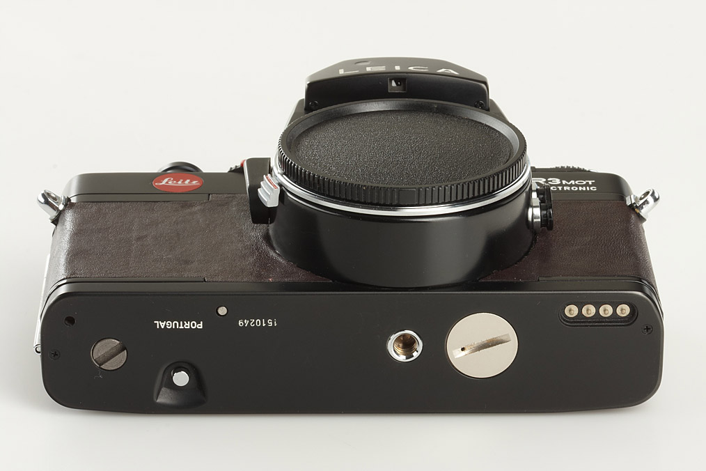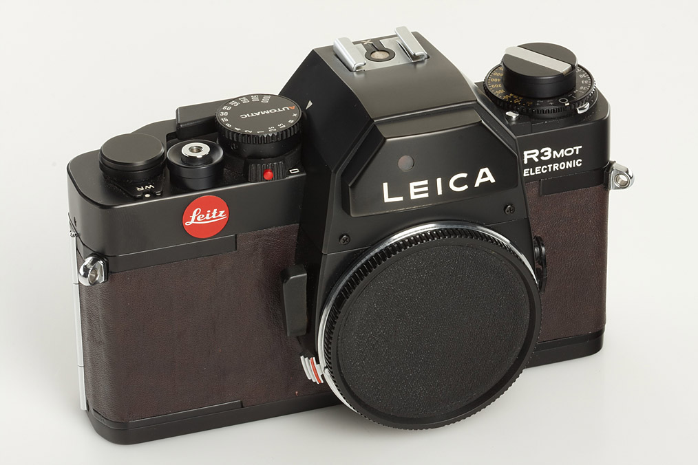 rare limited edition outfit including camera with brown leather, motor-winder no.19588 with brown leather covering, grip, special case, General Catalogue for photographic dealers in brown leather case, Summicron-R 2/50mm no.2835288 (caps), Elmarit-R 2.8/135mm no.2773151 (caps), Mink Oil (for other leather treatment)