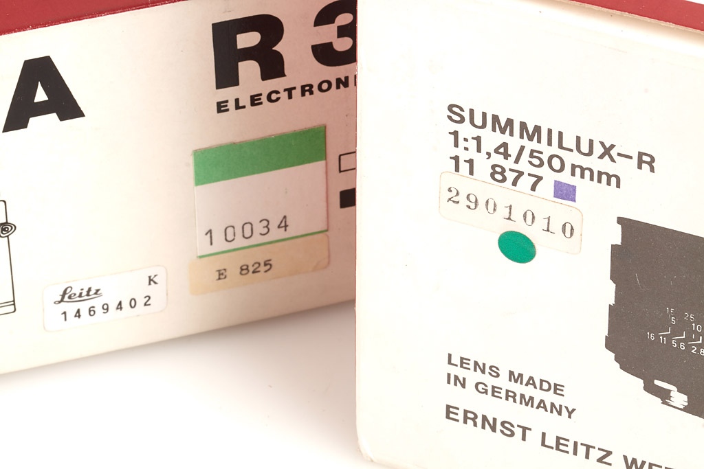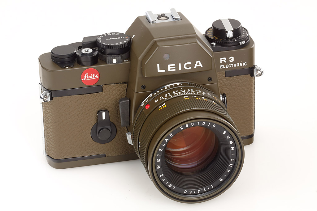 olive R3 edition (special number E825) complete in maker's box with Summilux-R 1.4/50mm no.2901010 (second version) in maker's box with warranty card