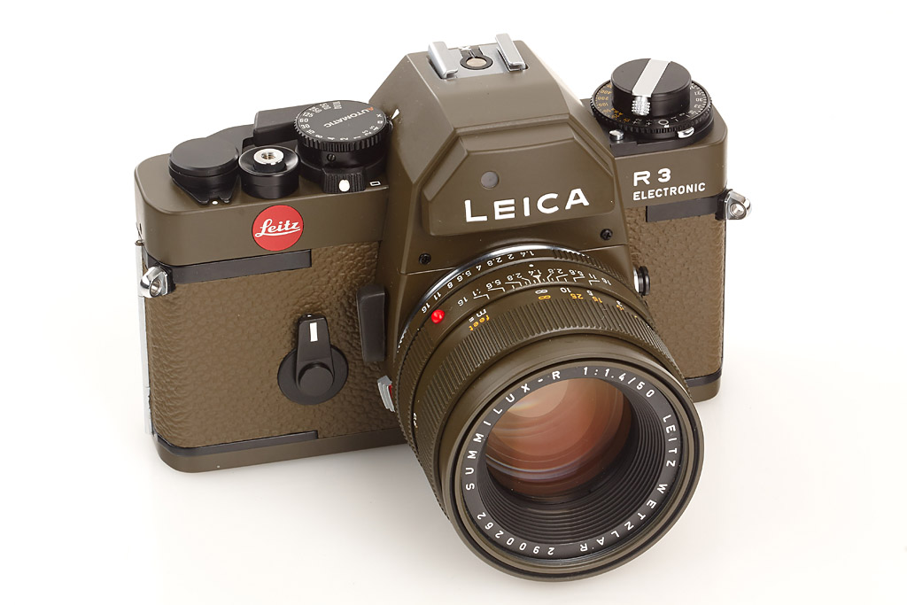 olive R3 edition (special number E600) with Summilux-R 1.4/50mm no.2900262 (second version, caps), body with maker's box, including 'Safari' Trinovid 10x22 with papers in maker's box