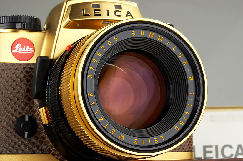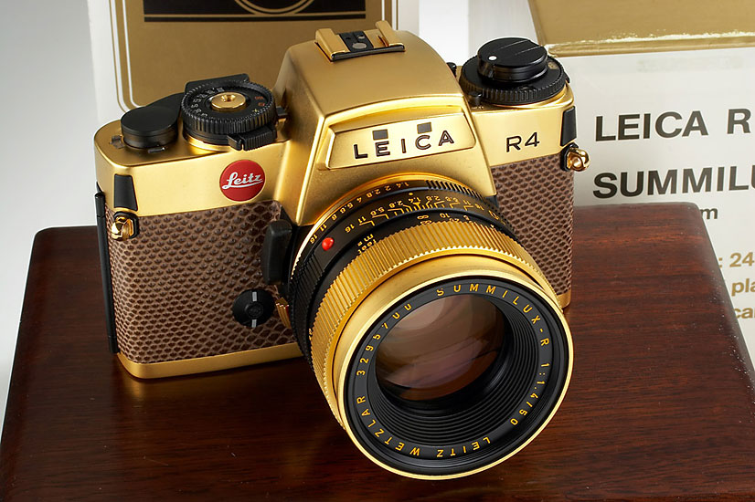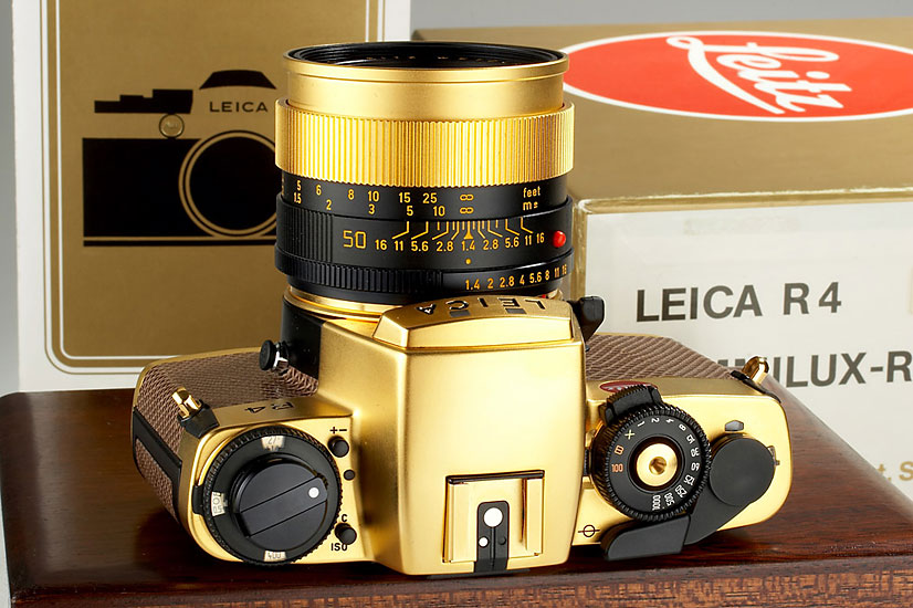 R4 gold (special camera no.E007) with Summilux 1.4/50mm gold no.3295708 complete with all paper's and wooden box in maker's box