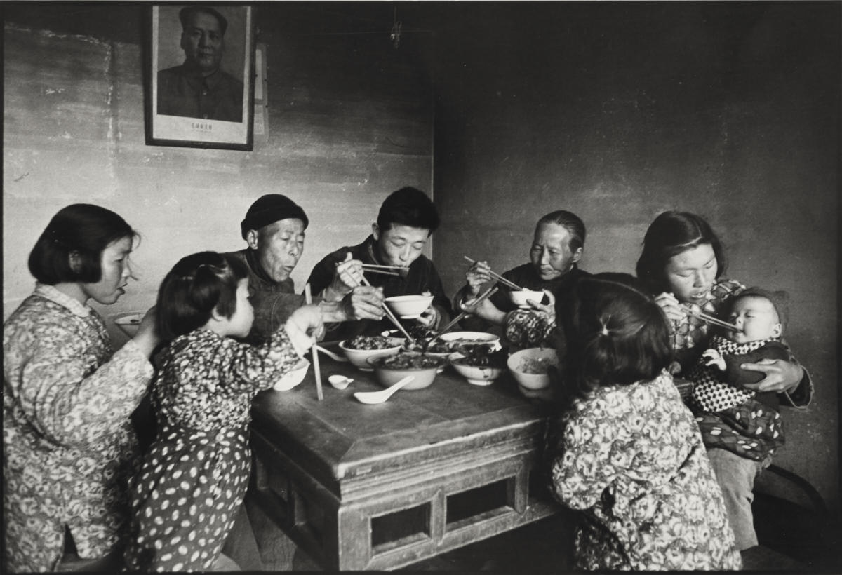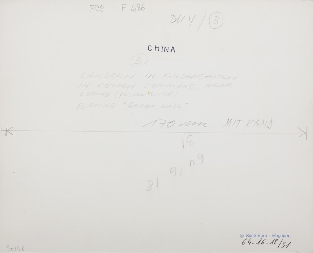2 Vintage silver prints each c. 16 x 24 cm (6.3 x 9.4 in) Each with the photographer's agency stamp, handwritten neg. number and diverse annotations in pencil and ink on the reverse Beide Fotografien entstanden im Zuge von Burris Life Reportage über die Volksrepublik China im Jahr 1964. - Familie Ching Chung Hwa isst unter Mao Tse Dungs Porträt zu Mittag. Die Familie lebt in der landwirtschaftlichen Kommune ‘Ma Cheo’, 40 km von Shanghai entfernt, bestehend aus 6700 Haushalten. - Provinz von Henan, eine Baumwoll-Kommune in der Nähe von Luoyang. Kinder spielen “Chinesische Mauer” Both photographs were made in the course of Burris Life reportage on the People’s Republic of China in 1964. - The Ching Chung Hwa family is having lunch under Mao Tse Dung's portrait. They live in the agricultural commune of ‘Ma Cheo’, located 40 km from Shanghai and consiting of about 6700 households. - Province of Henan, a Cotton Commune near Luoyang. Children are playing “The Great Wall”.
