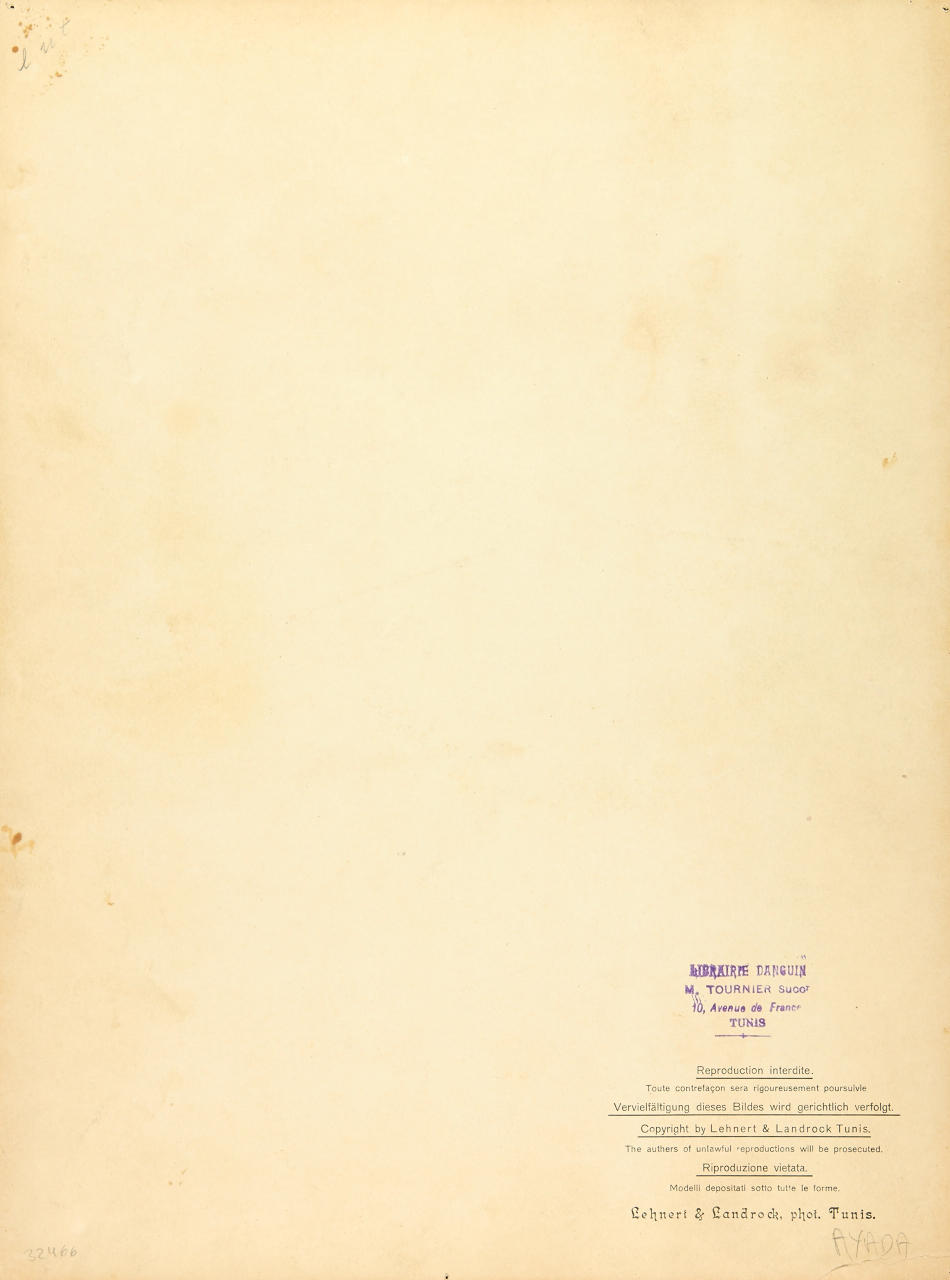 Vintage silver print 38,6 x 29 cm Photographers' Tunis copyright reproduction stamp and “LIBRAIRE DANGUIN, TUNIS” stamp on the reverse, photographers' names and the image no. “5021” label in the original negative